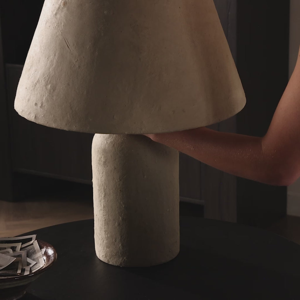 Meet the Sagredo Table Lamp. Craft warmth in any space with a table lamp made from clay and paper mache. With a fluid shape inspired by an antique jug, this lamp is perfect for bringing extra light to your workspace or bedside reading ritual.