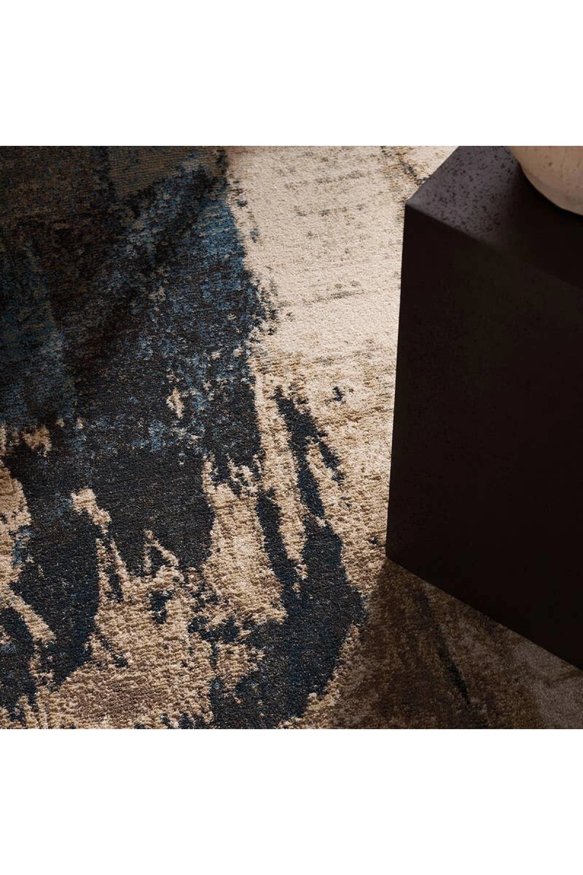 Meet the Sanaa Rug. An abstract art piece for your floors. A deep, beautiful blue accent with a neutral pattern, complete with a brilliant finish. Enjoy modern style and a bold appearance thoughtfully designed for easy maintenance in high-traffic areas. Samples are modeled at our North Scottsdale/Phoenix location.
