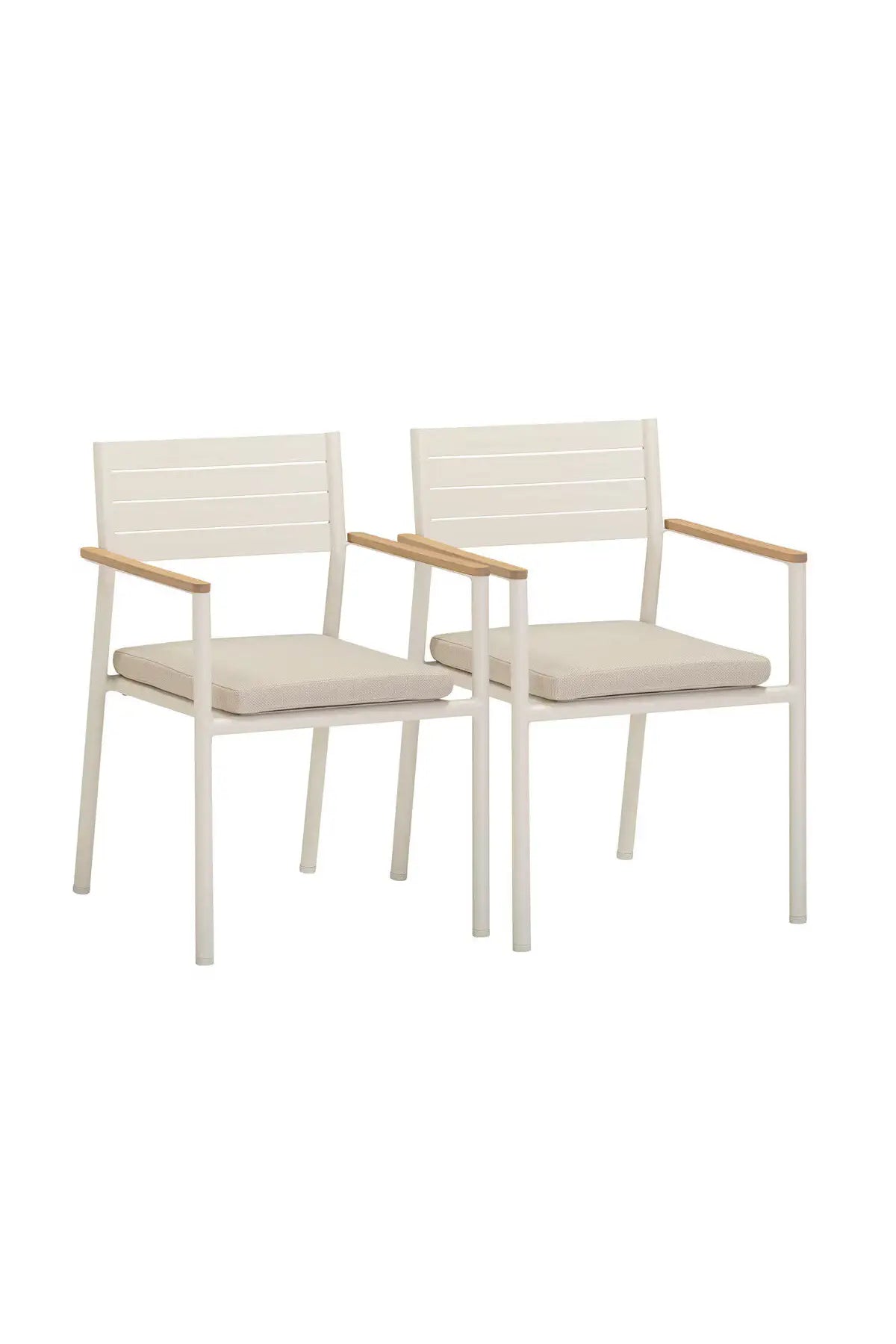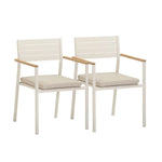 The Sardinia Outdoor Dining Chair brings laid-back style with a durable edge, weather-resistant eucalyptus, rust-resistant aluminum, and outdoor-grade fabrics made to handle the elements. Thoughtful details like secure cushion straps, reinforced table support, and adjustable leveling tips keep everything sturdy and steady. Sold as a set of 2.