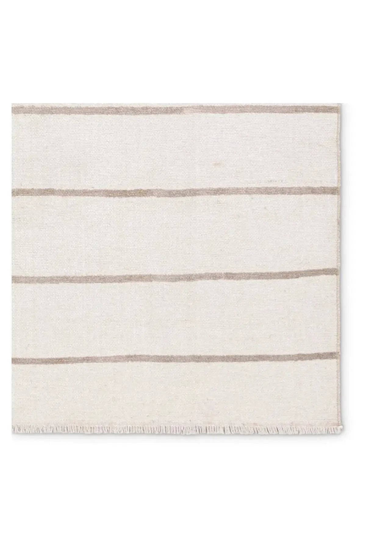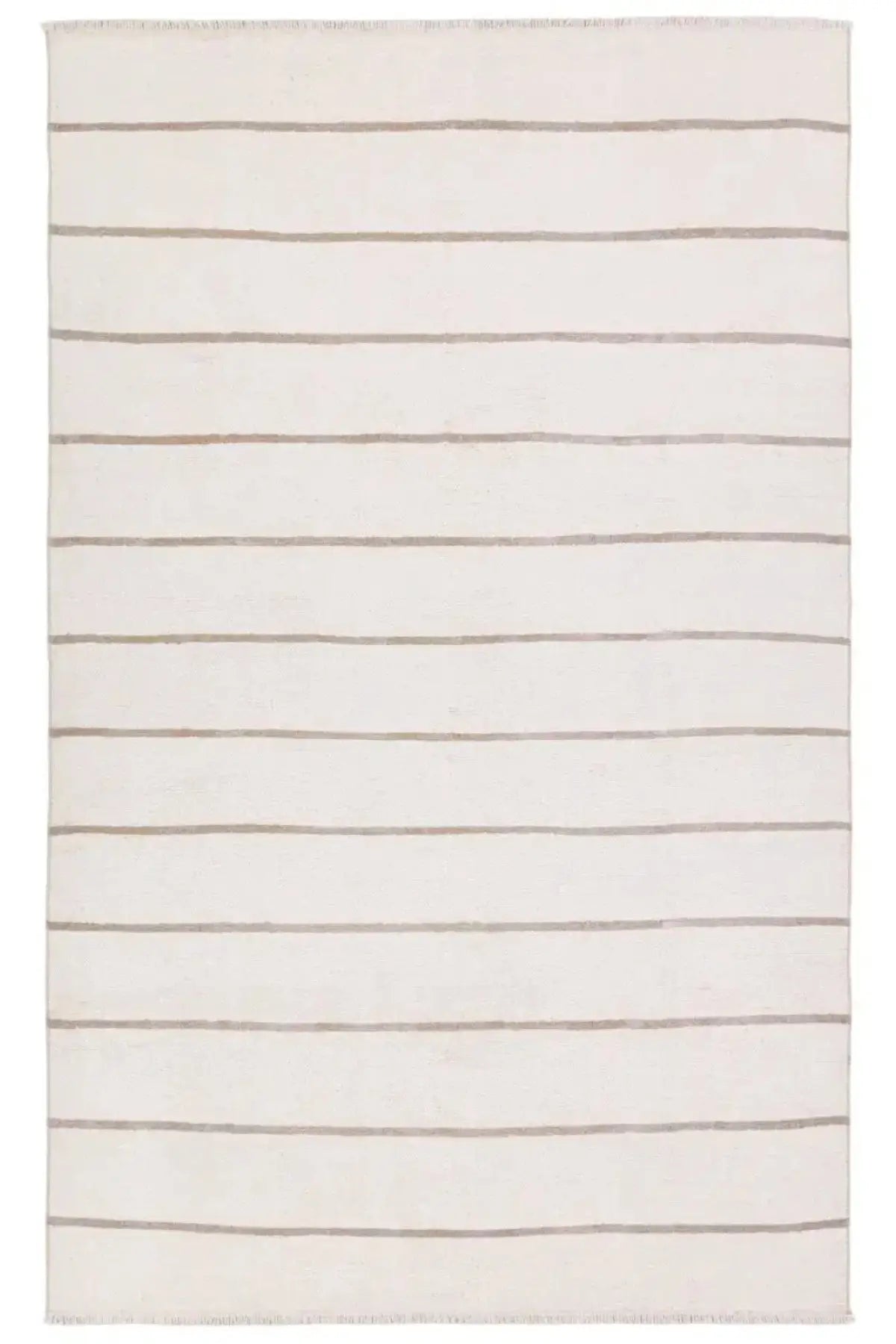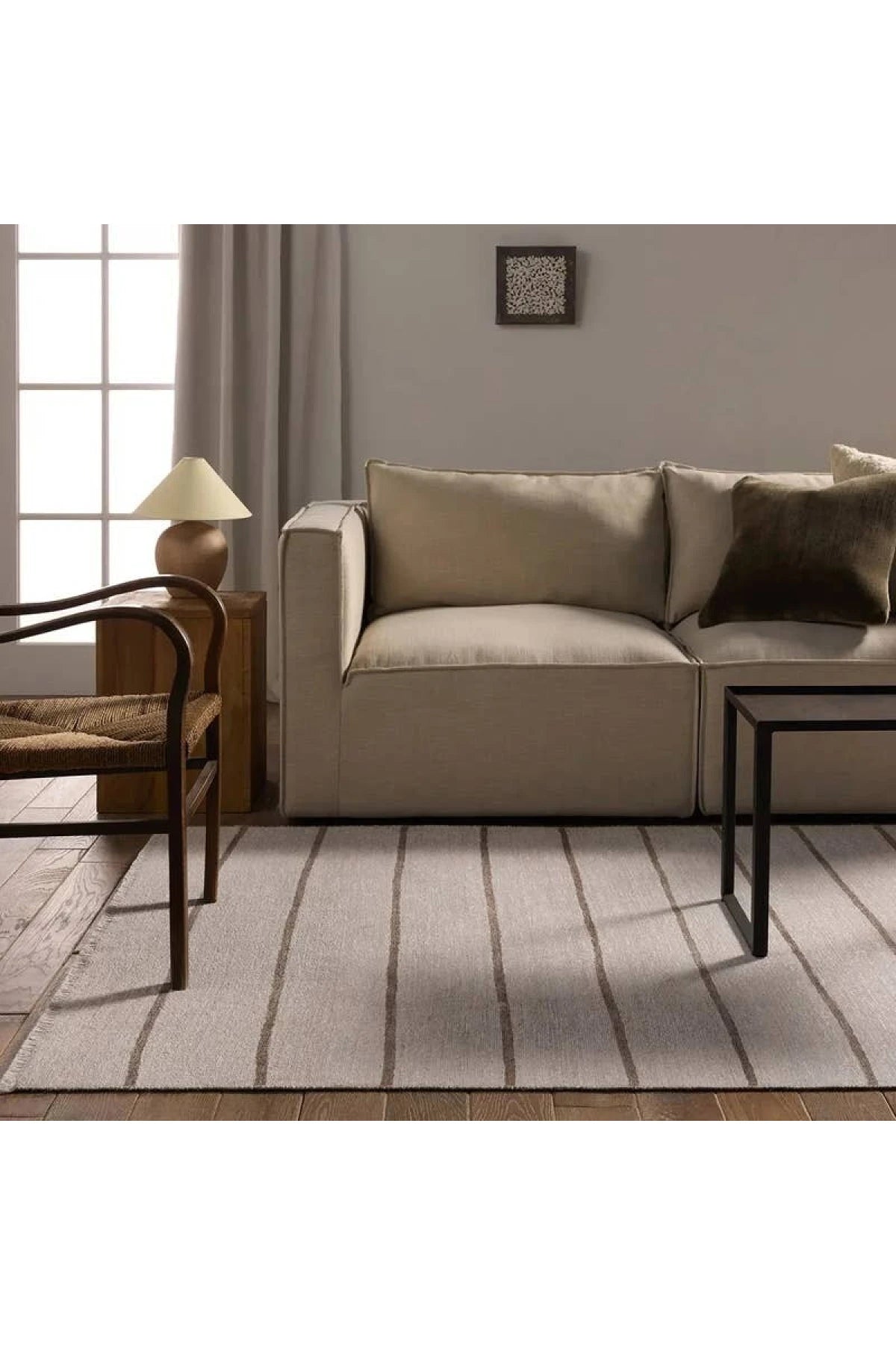 Meet the Saveen Rug. Inspired by the Saveen Tree, this vintage hemp inspired rug gives high traffic homes that earthy feel. Washable and made of durable fibers, the design of horizontal brown stripes is the subtle piece to help warm a room. Samples are modeled at our North Scottsdale/Phoenix location.