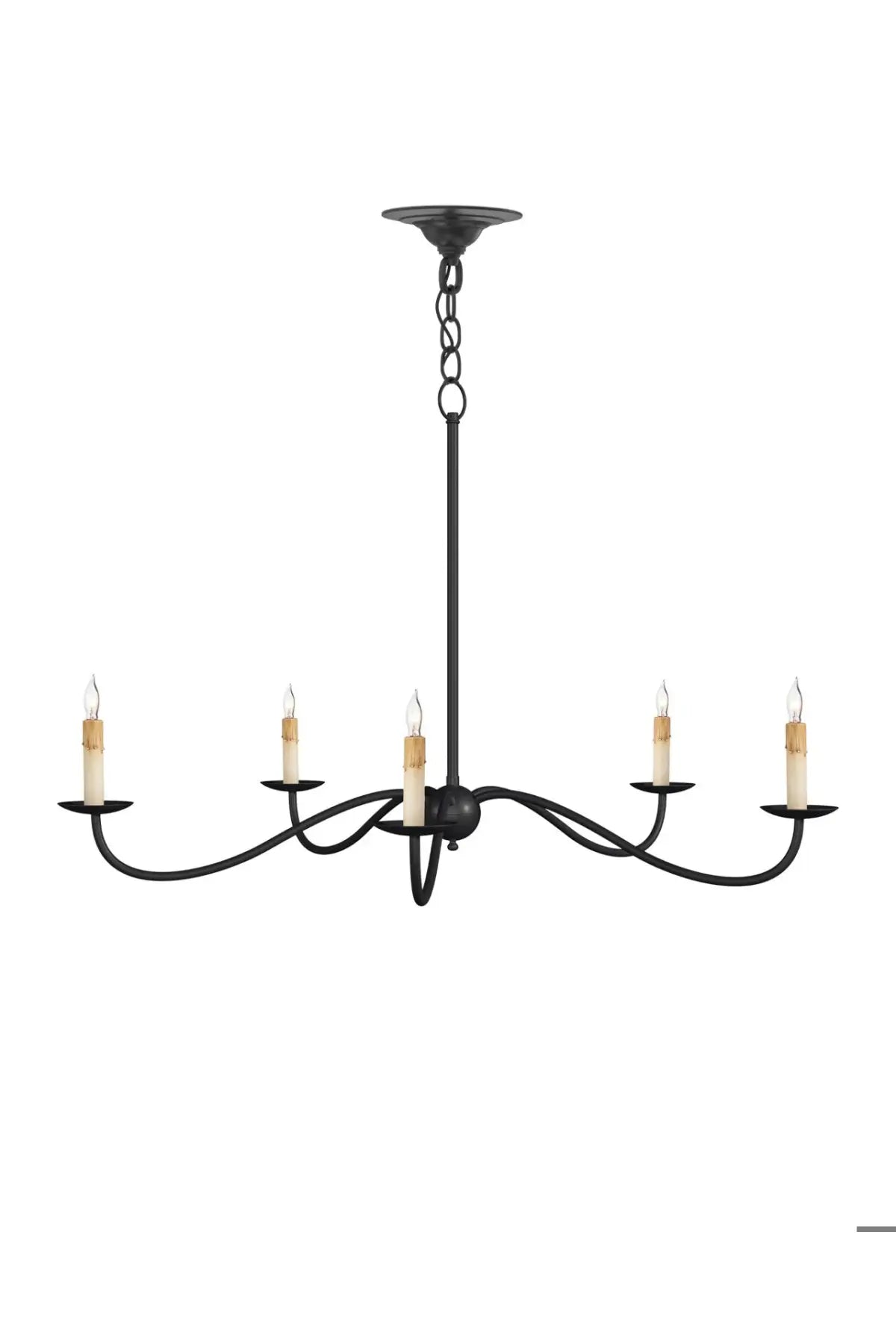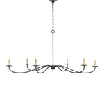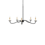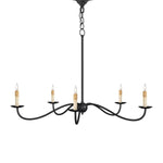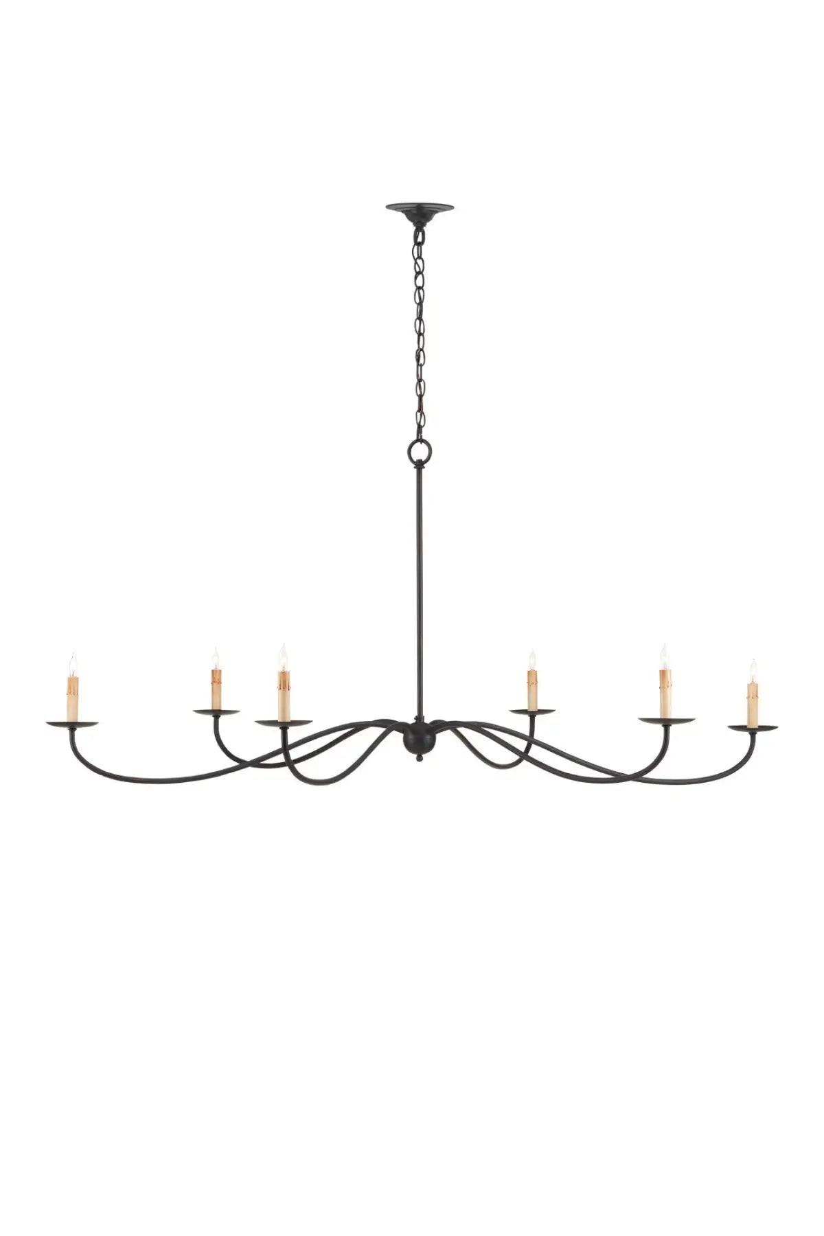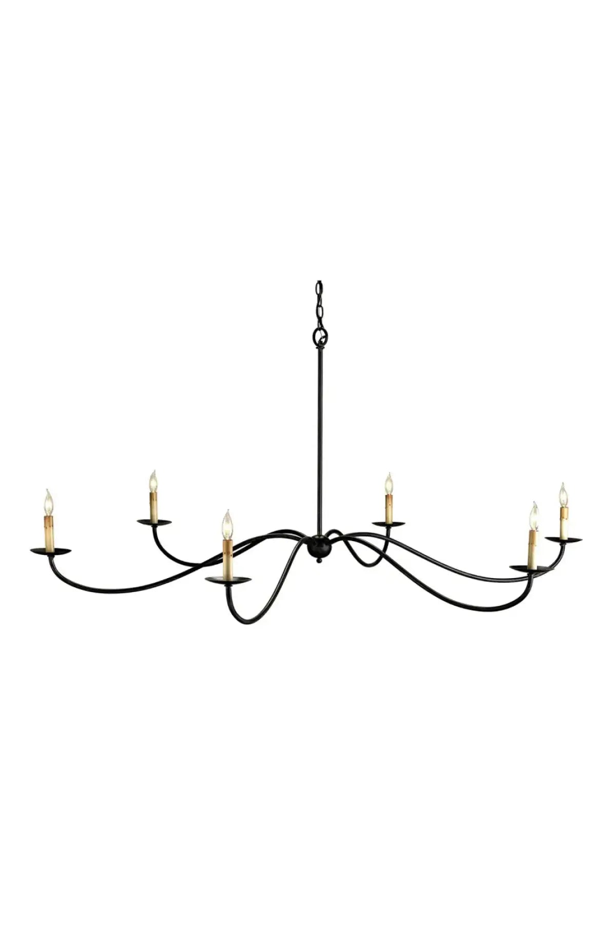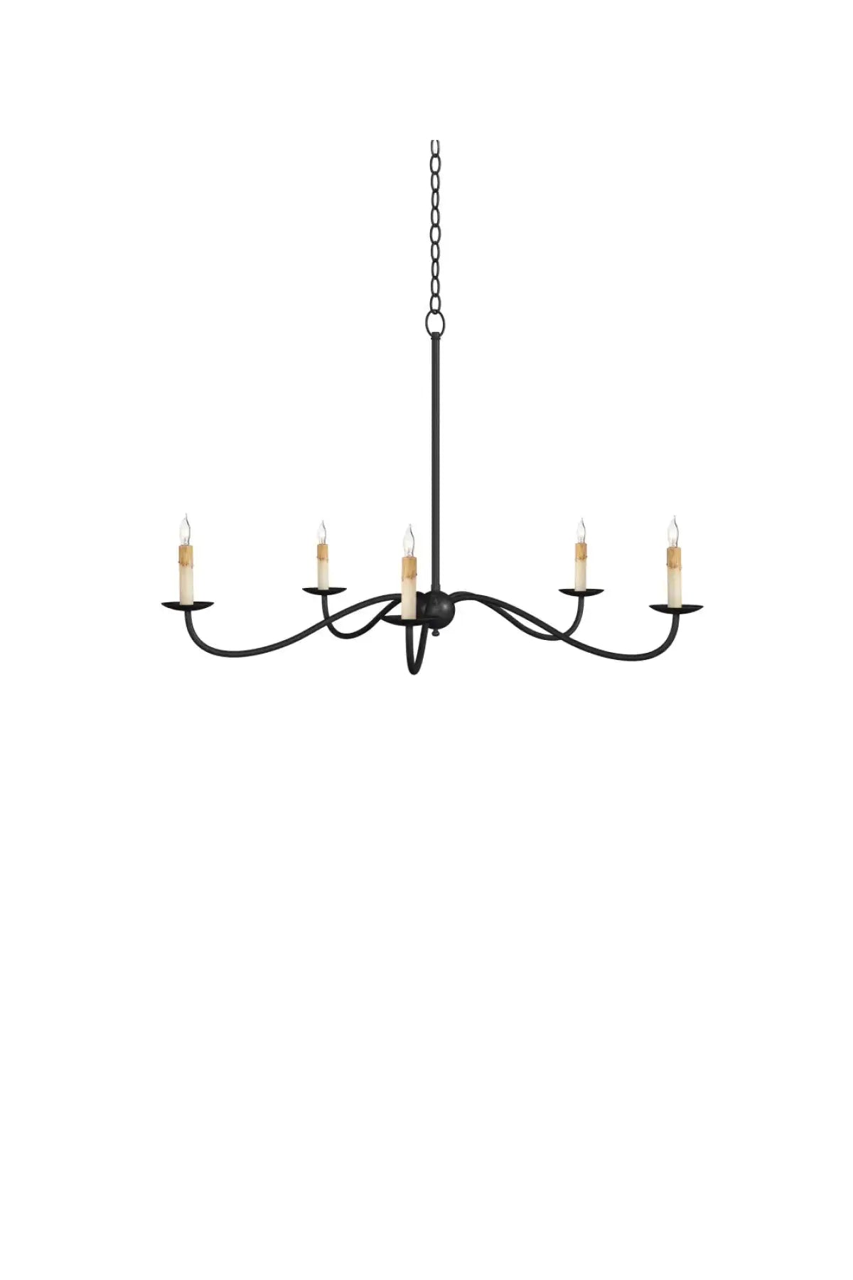 The Saxon Black Chandelier is one of our most graceful chandeliers with arms that fluidly stretch outward. Its shape and the Zanzibar black finish are nods to a bygone era, but its arcing slender lines make its profile modern. Bulb(s) not included.