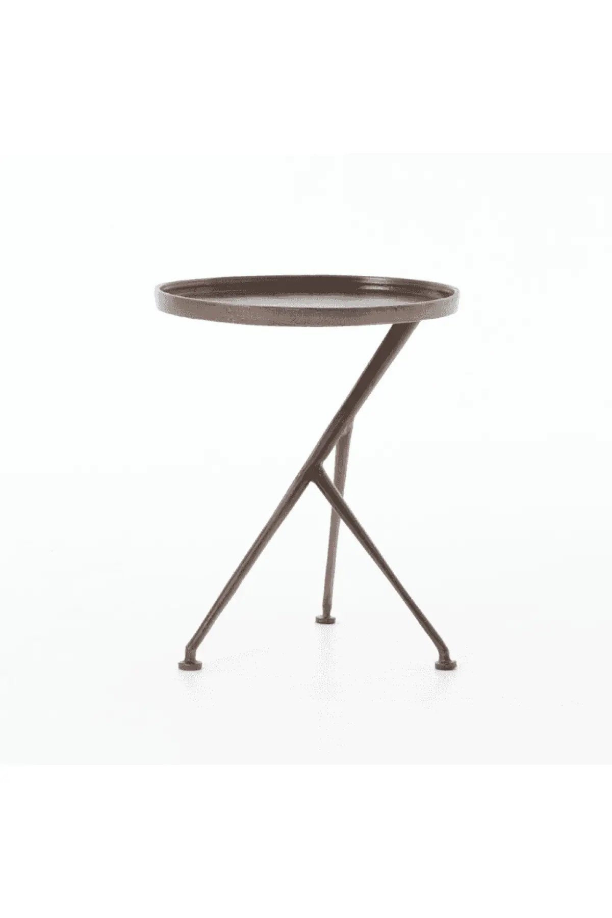 Meet the Schmidt Accent Table. The tripod table with a cleverly balanced twist. Angular cast aluminum is finished in antique rust to bring out highs and lows. Great indoors or out — cover or store indoors during inclement weather and when not in use.