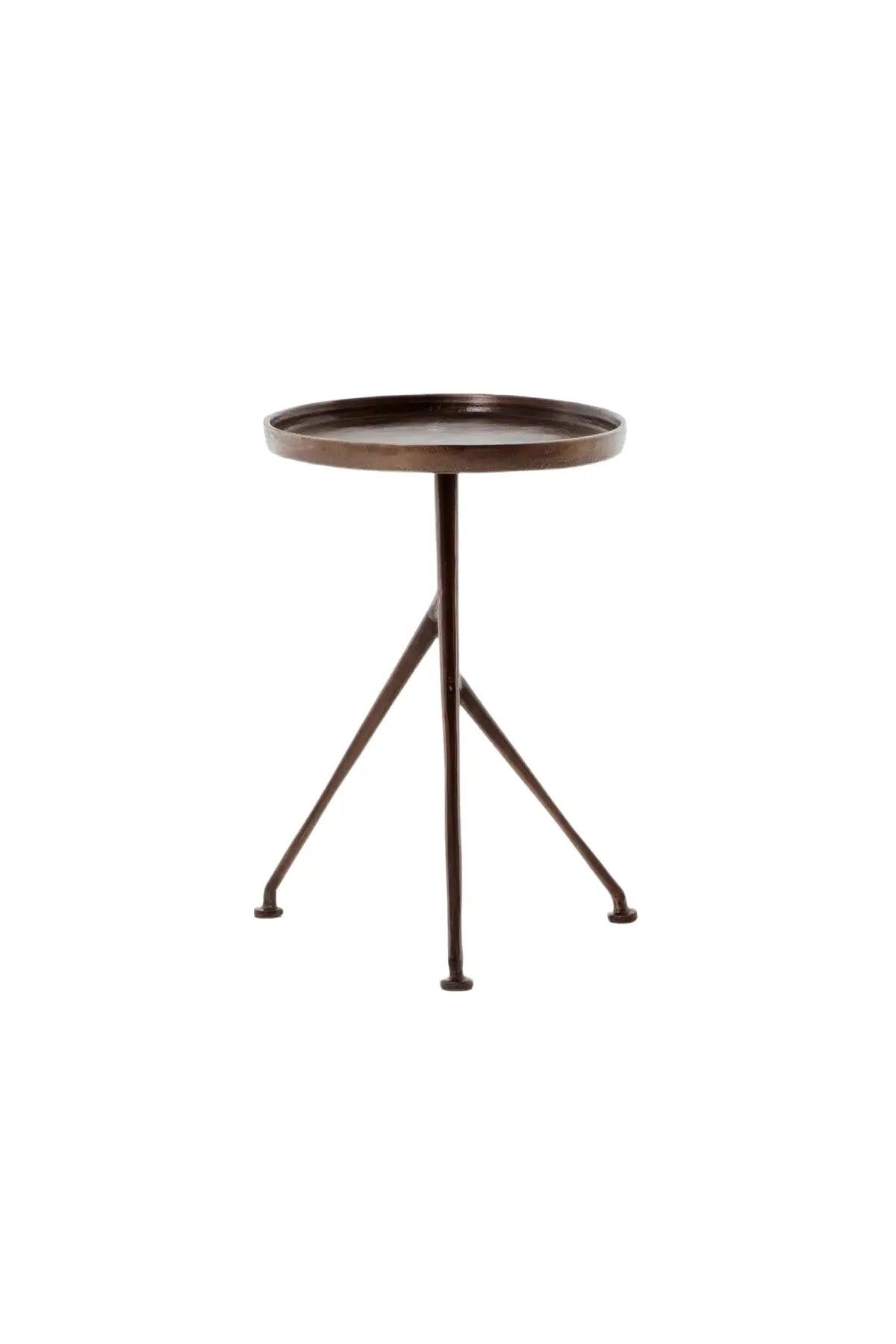 Meet the Schmidt Accent Table. The tripod table with a cleverly balanced twist. Angular cast aluminum is finished in antique rust to bring out highs and lows. Great indoors or out — cover or store indoors during inclement weather and when not in use.