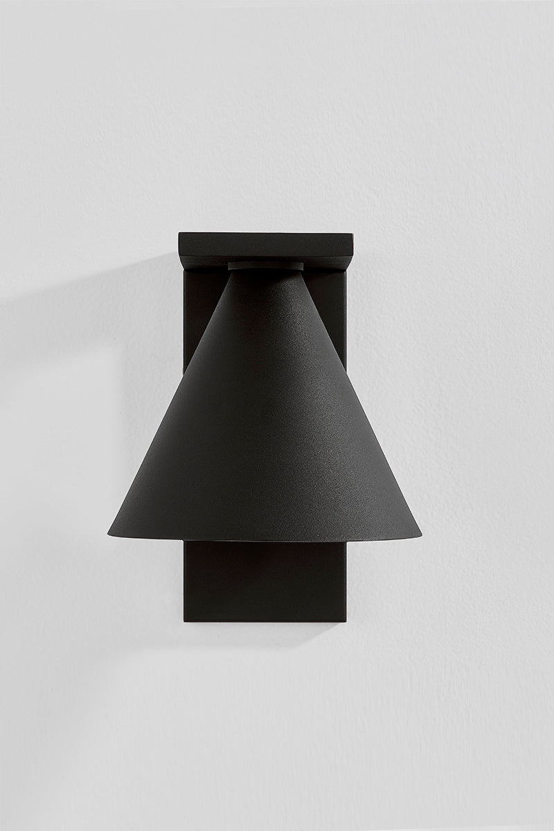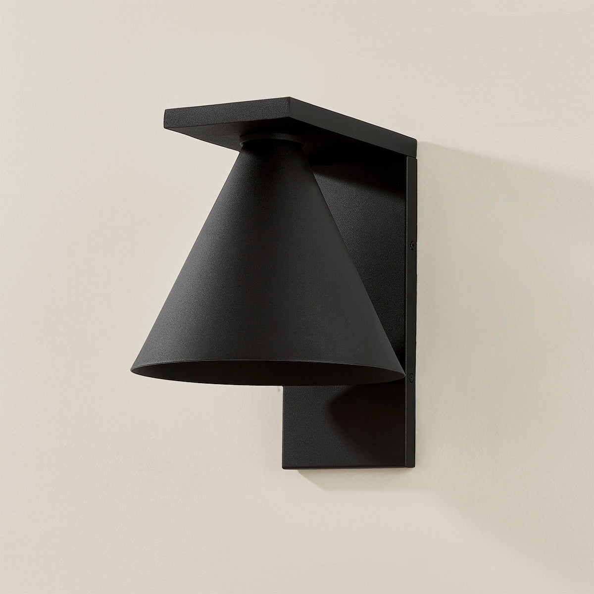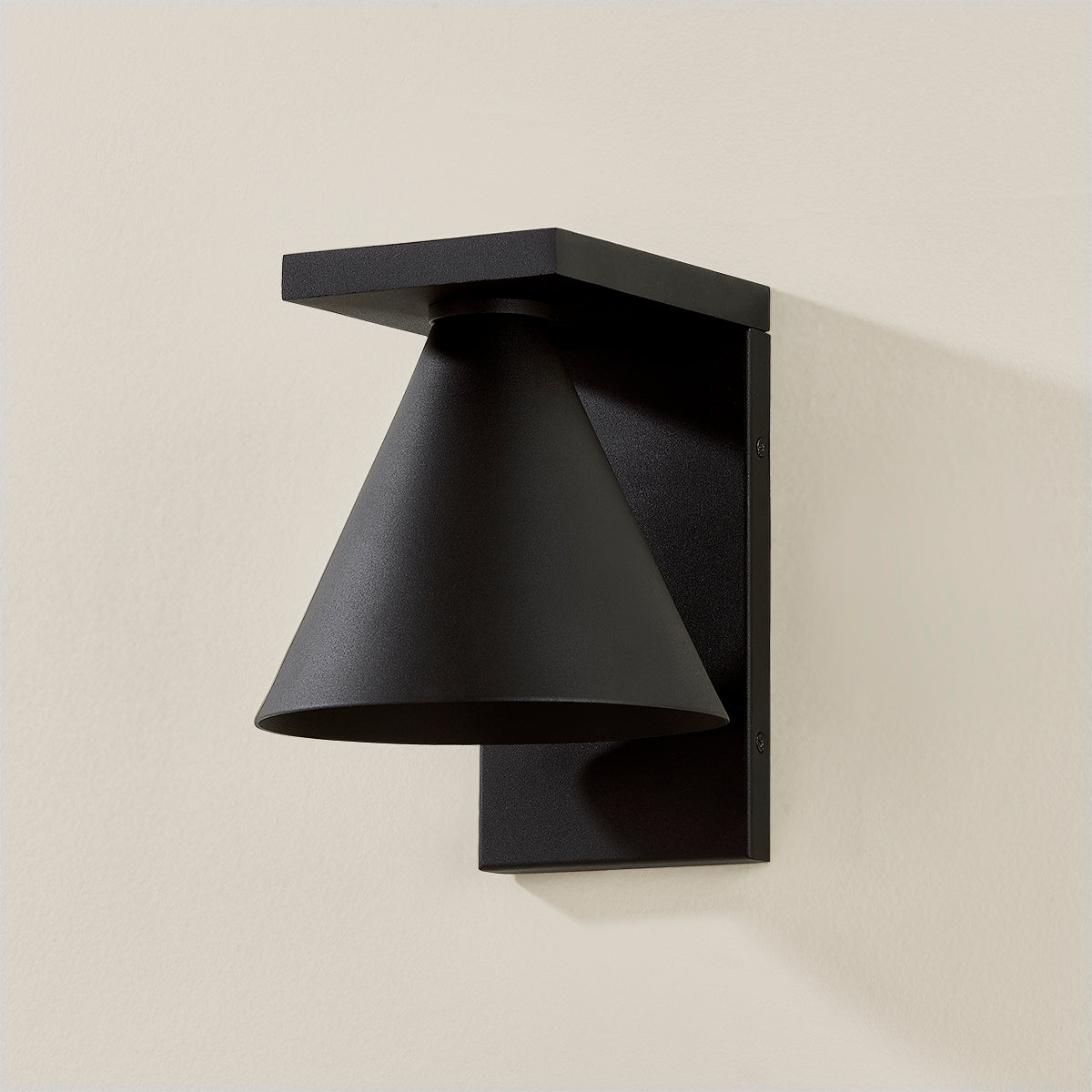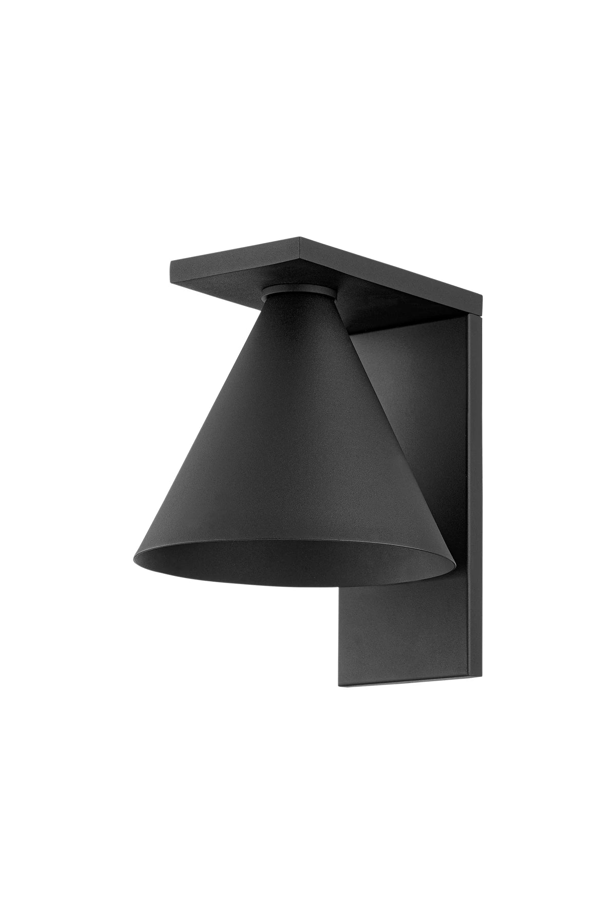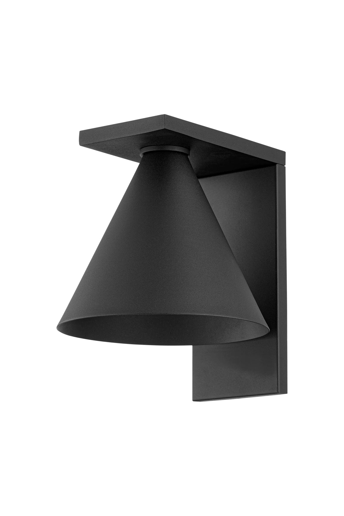Meet the Sean Outdoor Sconce. A conical shade is suspended like a bell from an L-shaped backplate in the streamlined Sean. The minimalist construction of the sconce, paired with an all-over Textured Black finish, creates a versatile and highly functional fixture for exterior use. Sean is designed to comply with Dark Sky requirements, prioritizing a reduction of light pollution. Bulb(s) not included.