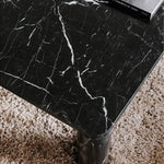 Meet the Segment Coffee Table. Soft edges materialize through solid black marine marble, the segmented base taking shape with an angular cut from a rounded form. To keep its elemental essence pristine, please use a coaster on this black marble beauty.