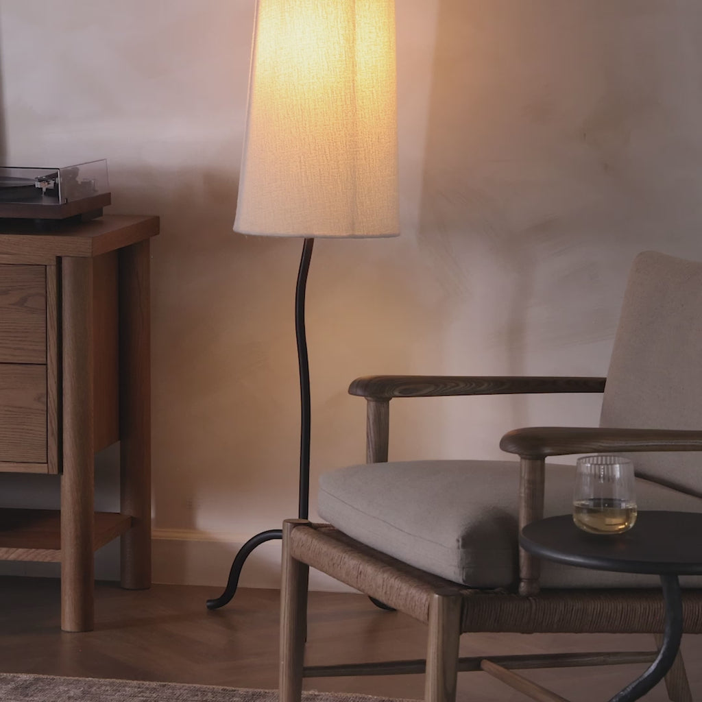 Meet the Selby Floor Lamp. A curved cast iron tripod base pairs with an elongated boucle shade for a sculpted, minimalist look that works into any room with ease. Bulb(s) included.