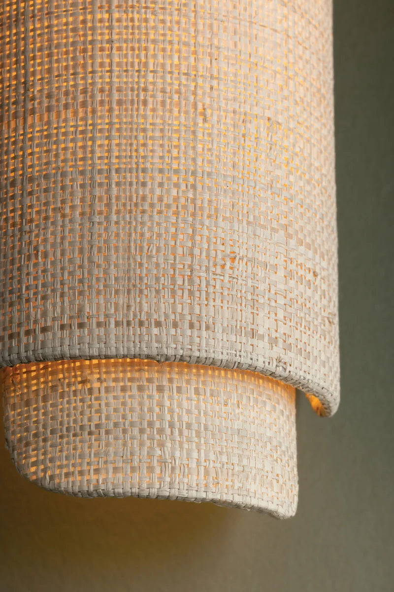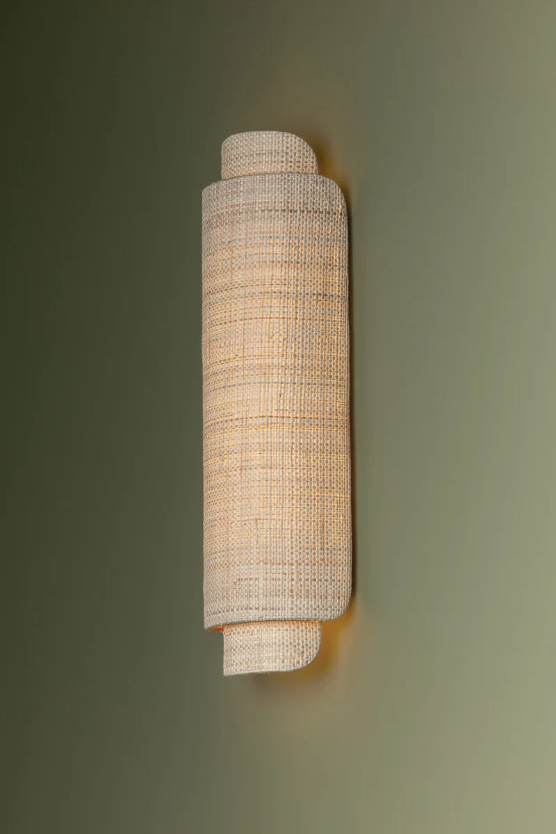 Crafted from natural Saguran Weave, the Seldon Sconce adds a dose of textural interest to any space. Its minimalist design features two overlapping folded shades with softly curled, leaf-like edges. Seldon emits a warm, diffused light through its translucent shades and out from both ends. Due to the one-of-a-kind nature of the medium, exact colors and patterns may vary slightly from the image shown.