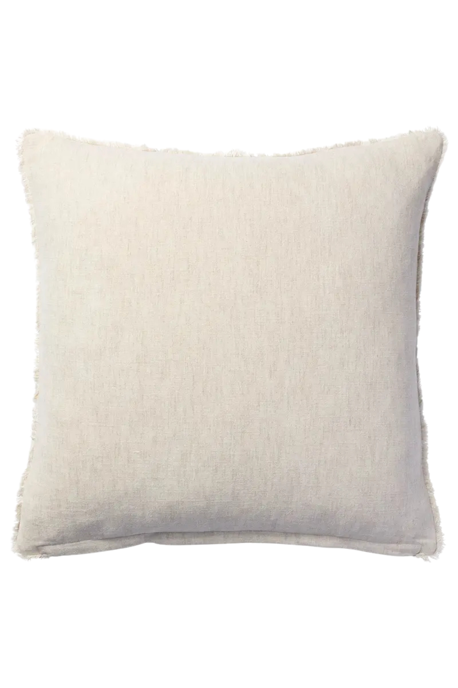 Linen is a fiber that takes on a soft beauty the more it is washed and worn and this pillow is no exception. The handmade Senilli pillow features a soft cream color and a natural fringe on all sides. The gentle texture brings subtle sophistication to any contemporary home. This item includes a removable cover and zipper closure.