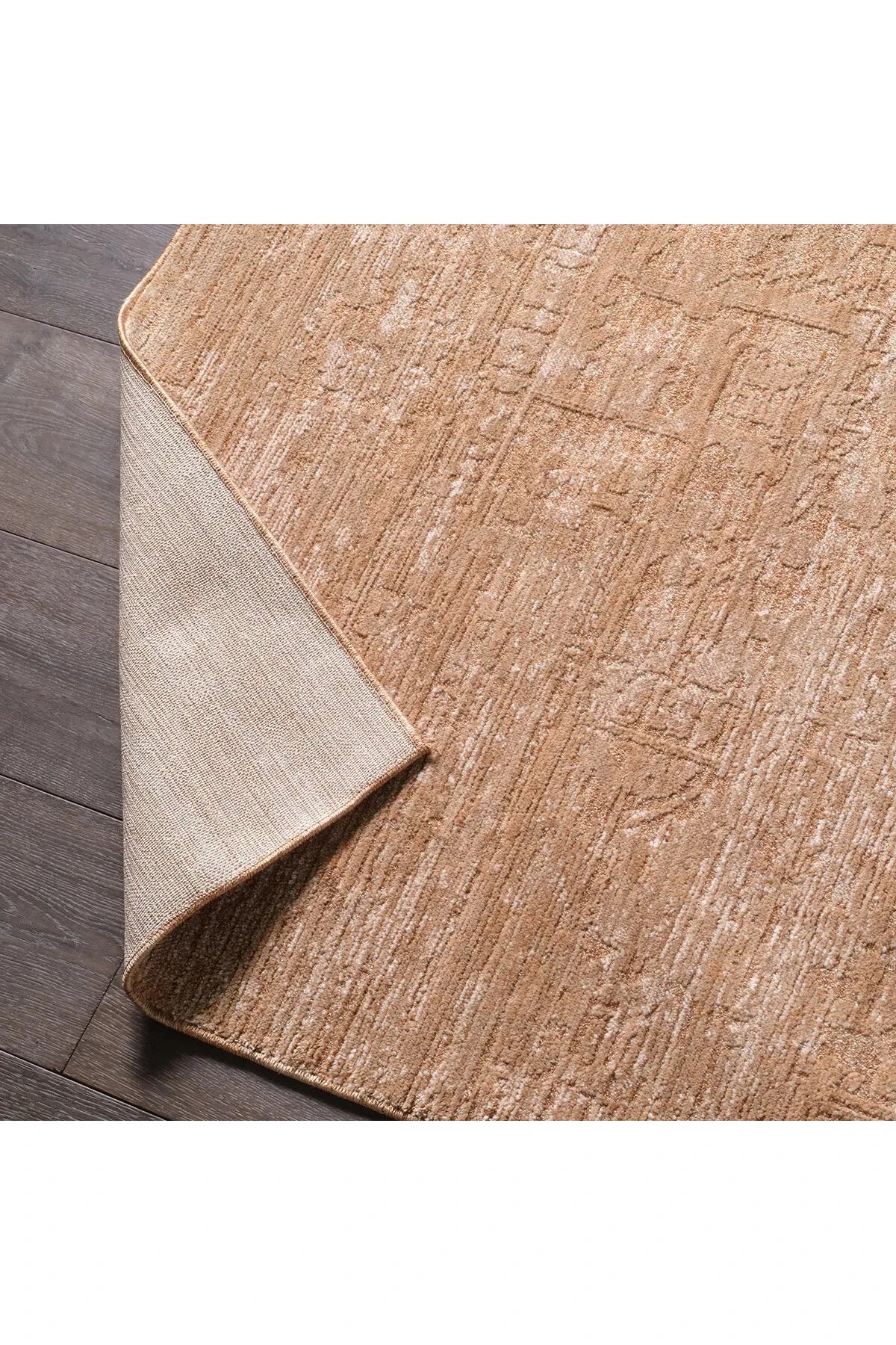 Crafted from space-dyed polyester, the Serenita Rug is tailored for indoor spaces that require both simplicity and durability. Its tonal palette of yellow, tan, and taupe hues is carefully cross-woven for a natural, abrash effect. Samples are modeled at our North Scottsdale/Phoenix location.