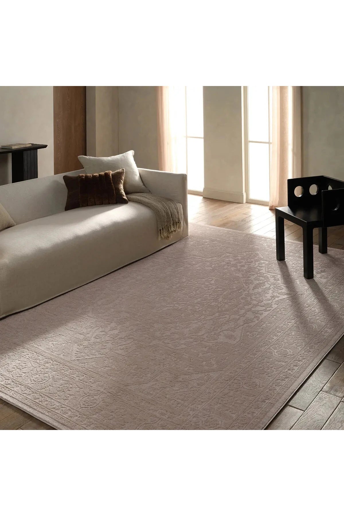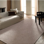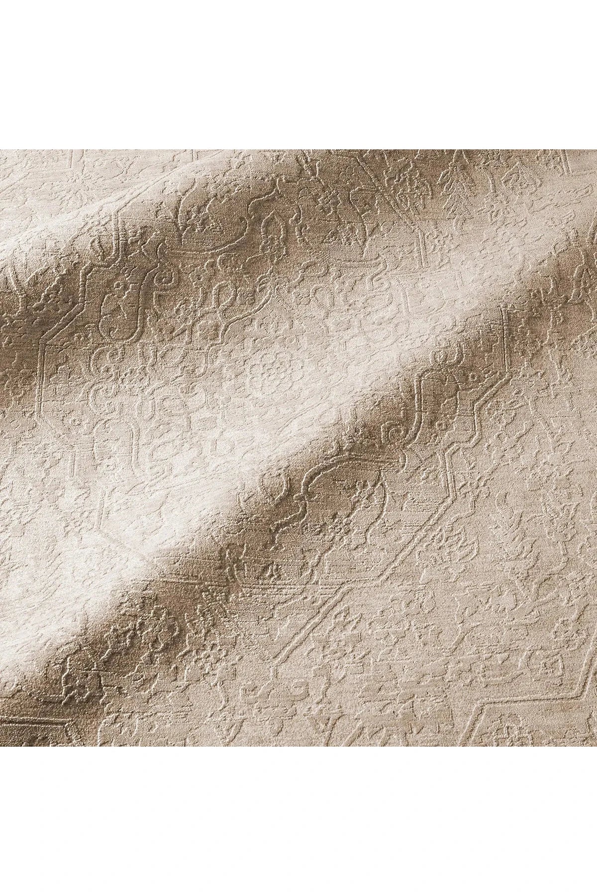 Crafted from space-dyed polyester, the Serenita Rug is tailored for indoor spaces that require both simplicity and durability. Its tonal palette of yellow, tan, and taupe hues is carefully cross-woven for a natural, abrash effect. Samples are modeled at our North Scottsdale/Phoenix location.