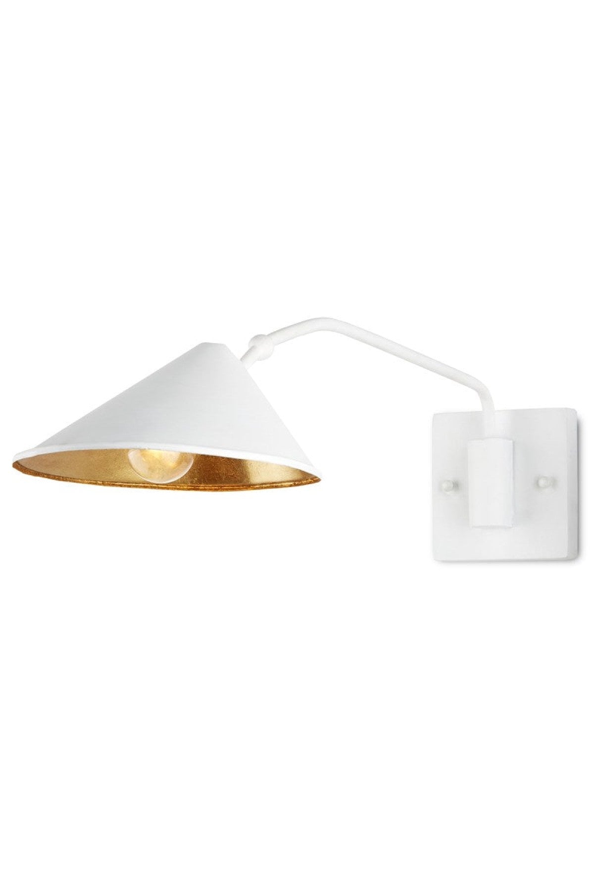 The Serpa Sconce has a crisp countenance thanks to the finish on its exterior. The gold leaf interior on its shade makes this industrial style sconce with its vintage feel a wonderful reading light, and brings an ageless twist.