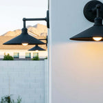 Meet the Shelton Outdoor Sconce. Augment your exterior decor with the beautiful illumination of the Shelton Outdoor Sconce. A classic, wide lamp shade finished in vintage bronze showcases beautiful, glowing light. Bulb(s) not included.