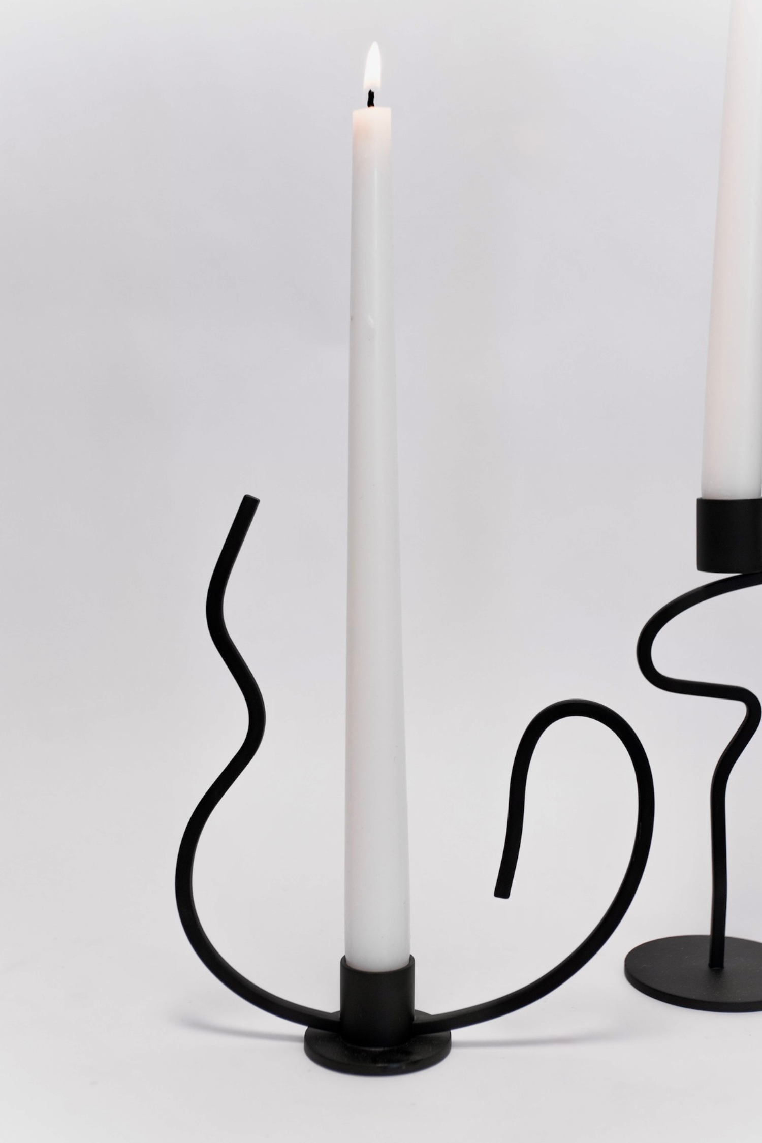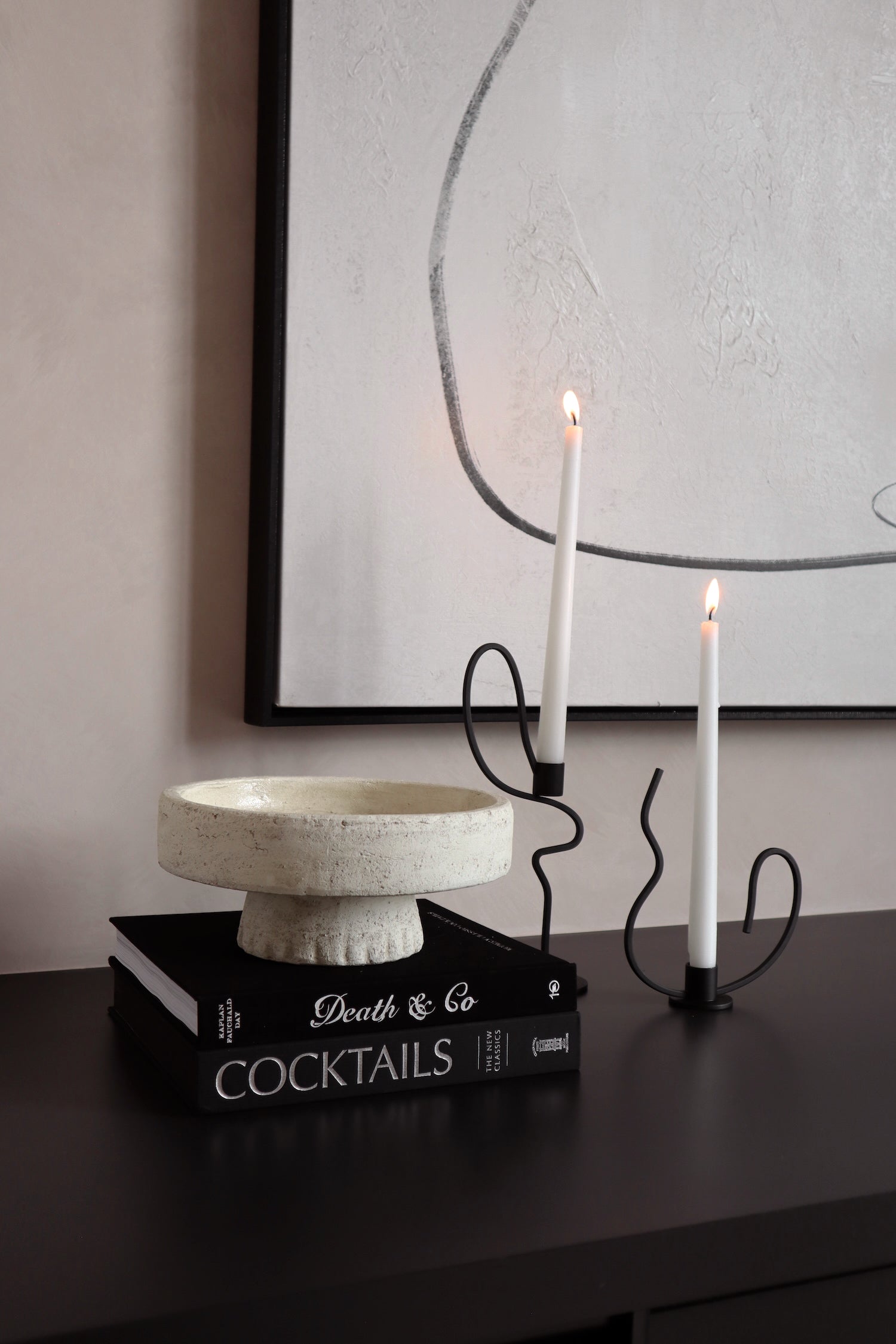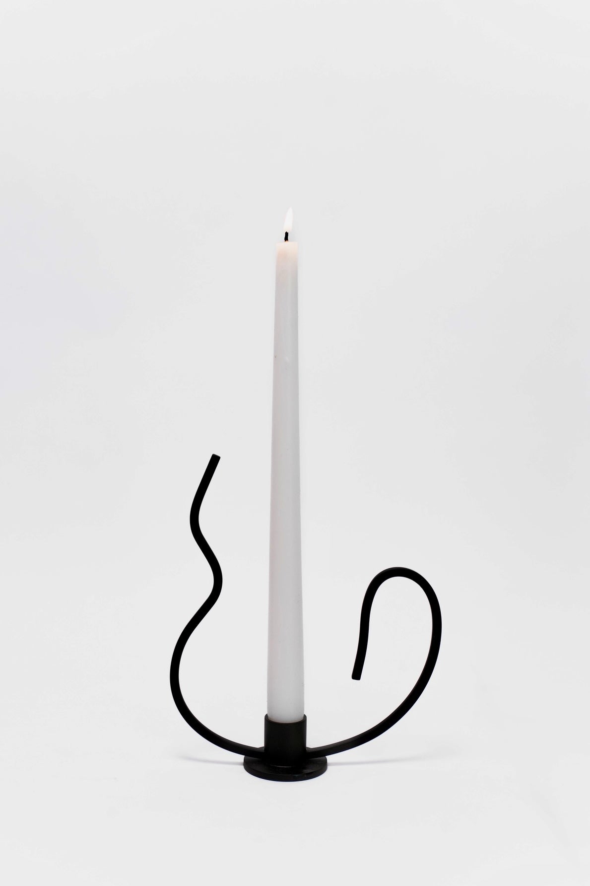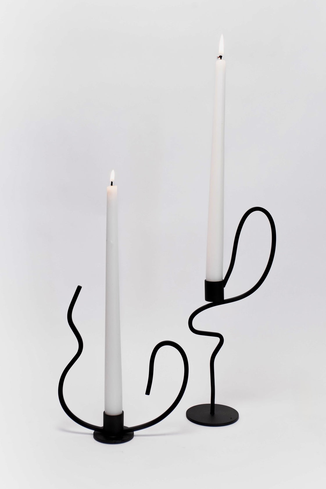 Meet the Short Wavy Taper Holder! Taking inspiration from the graceful movements, this piece is crafted from powder-coated iron and has a unique shape. Style this statement piece solo, or pair with the Tall Wavy Taper Holder for a duo that you will never tire of.