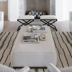 The Sinclair Cocktail Ottoman is upholstered in a chunky, textural boucle performance fabric and paired with a subtly distressed parawood base. This large, rectangular ottoman can be placed just about anywhere – bringing with it a retro vibe. Style with a tray as a design-forward coffee table. Performance fabrics are specially created to withstand spills, stains, high traffic and wear, ensuring long-term comfort and unmatched durability.