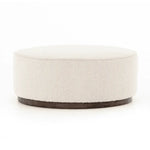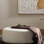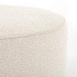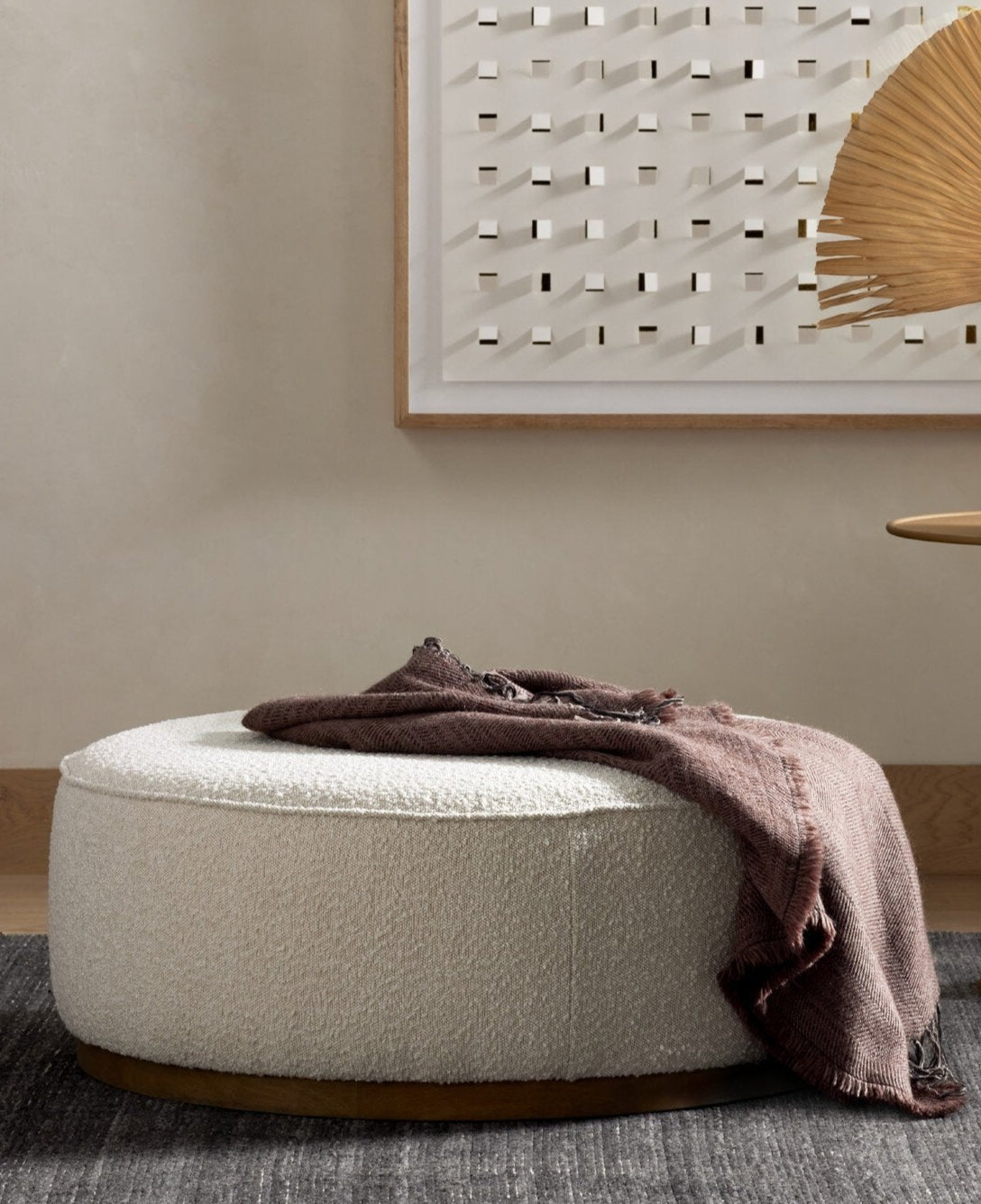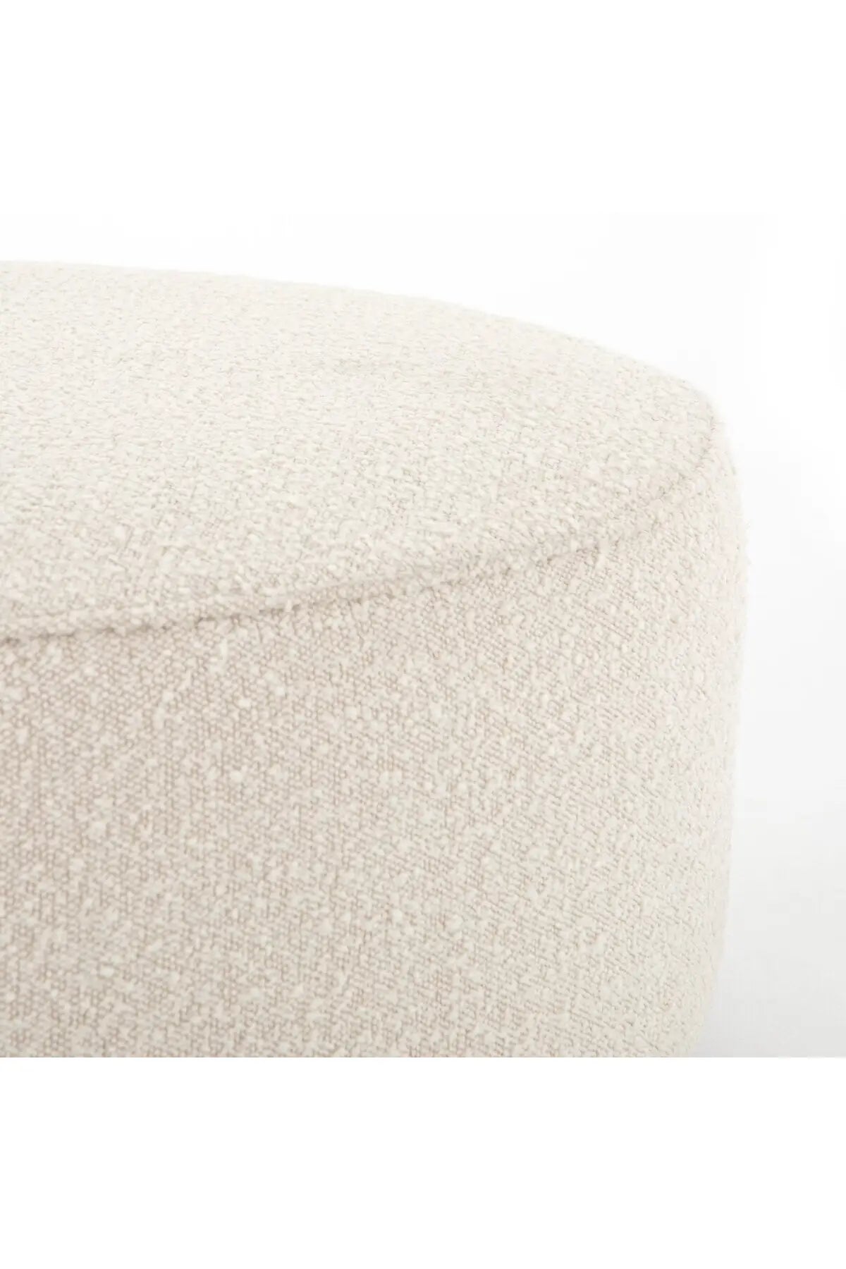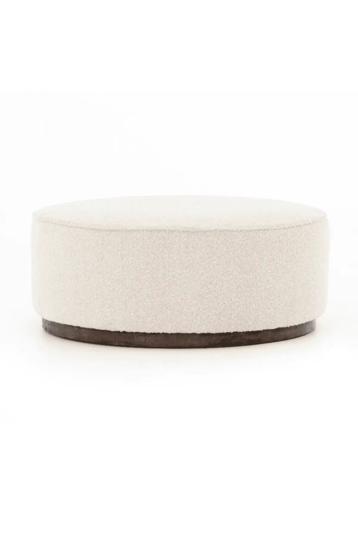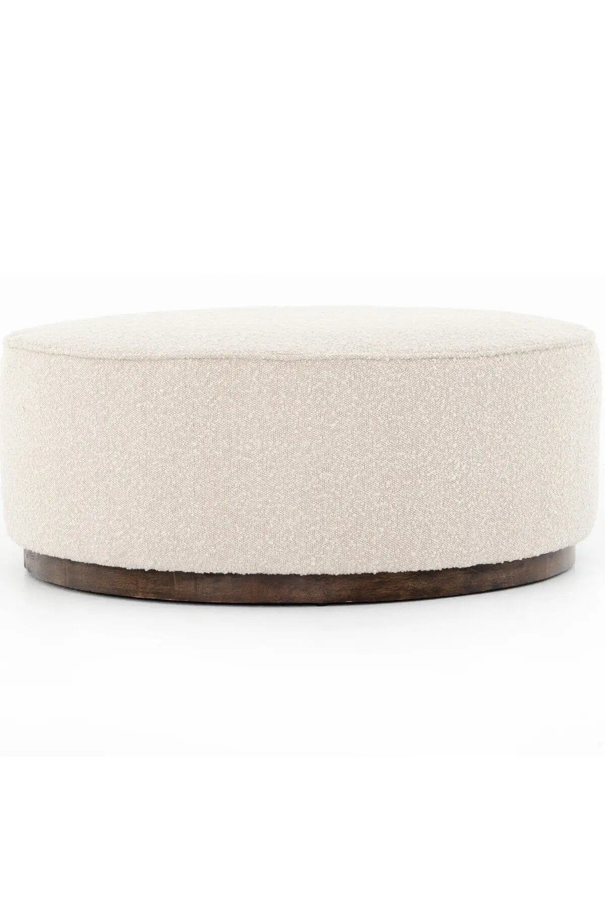 Meet the Sinclair Large Round Ottoman. This large, round ottoman of textural cream boucle can be placed just about anywhere, bringing with it a hip retro vibe as a coffee table or extra seating.