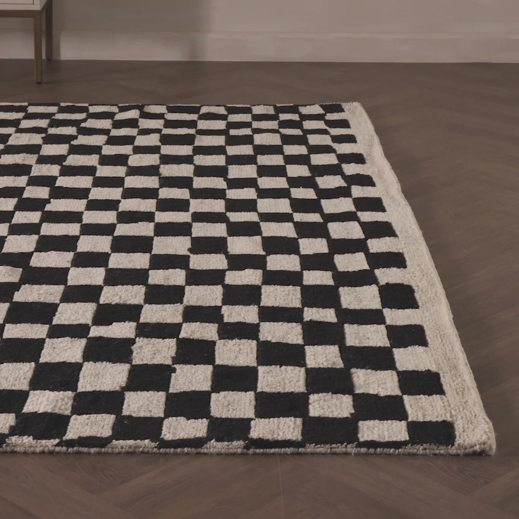 Meet the Sinead Hand-Knotted Rug. Tonal wool weaves an organic checkered pattern. Following a technique and tradition dating back thousands of years, each hand-knotted rug can take two to three master weavers five to six weeks to complete, depending on the size and intricacy of each rug. Every hand-knotted rug is designed to wear beautifully over time, making them heirlooms to be passed down for generations.