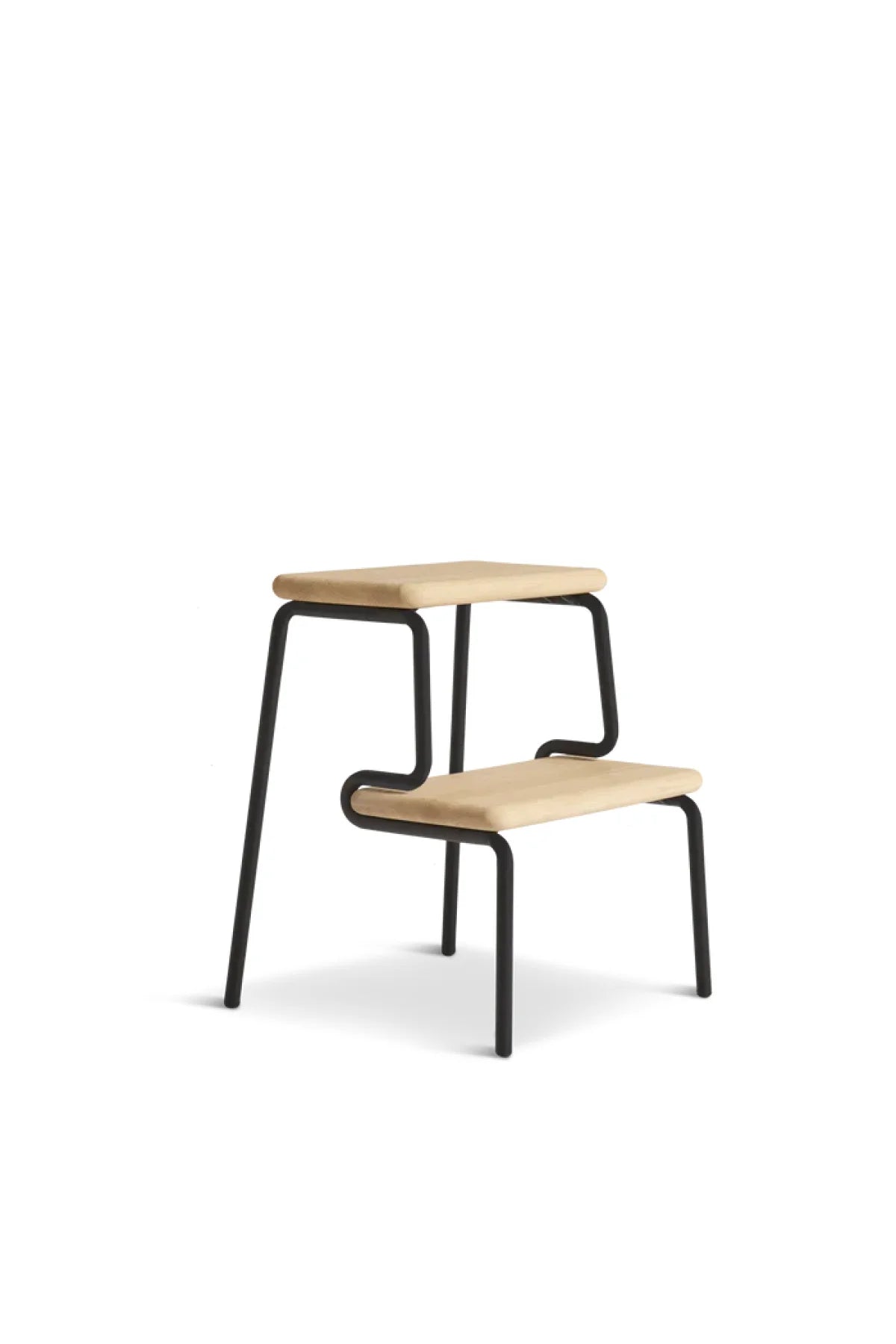 Meet the Slalom Step Stool. The silhouette of the stool is inspired by a skiing trip to northern Sweden, capturing the movement and dynamics of sinuous slalom traces carved into the snow. With its portable nature, the Slalom Step Stool effortlessly serves as an assistant for reaching top shelves in the wardrobe, a companion for children in the kitchen or a convenient side table by the bed.