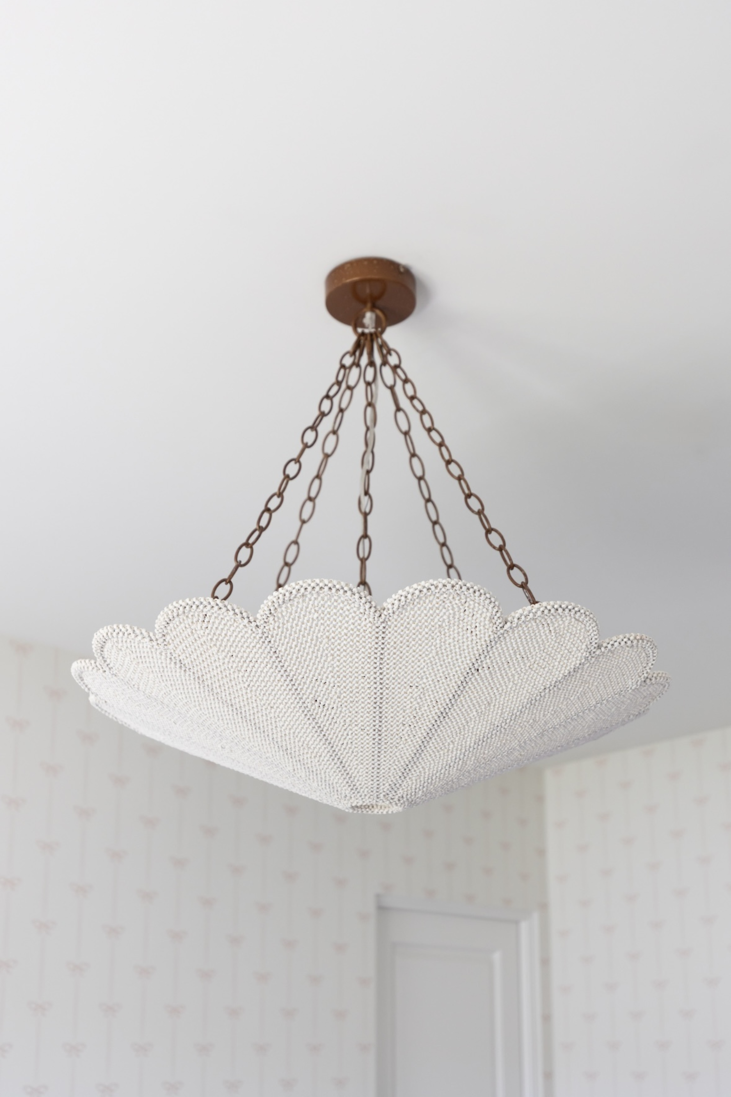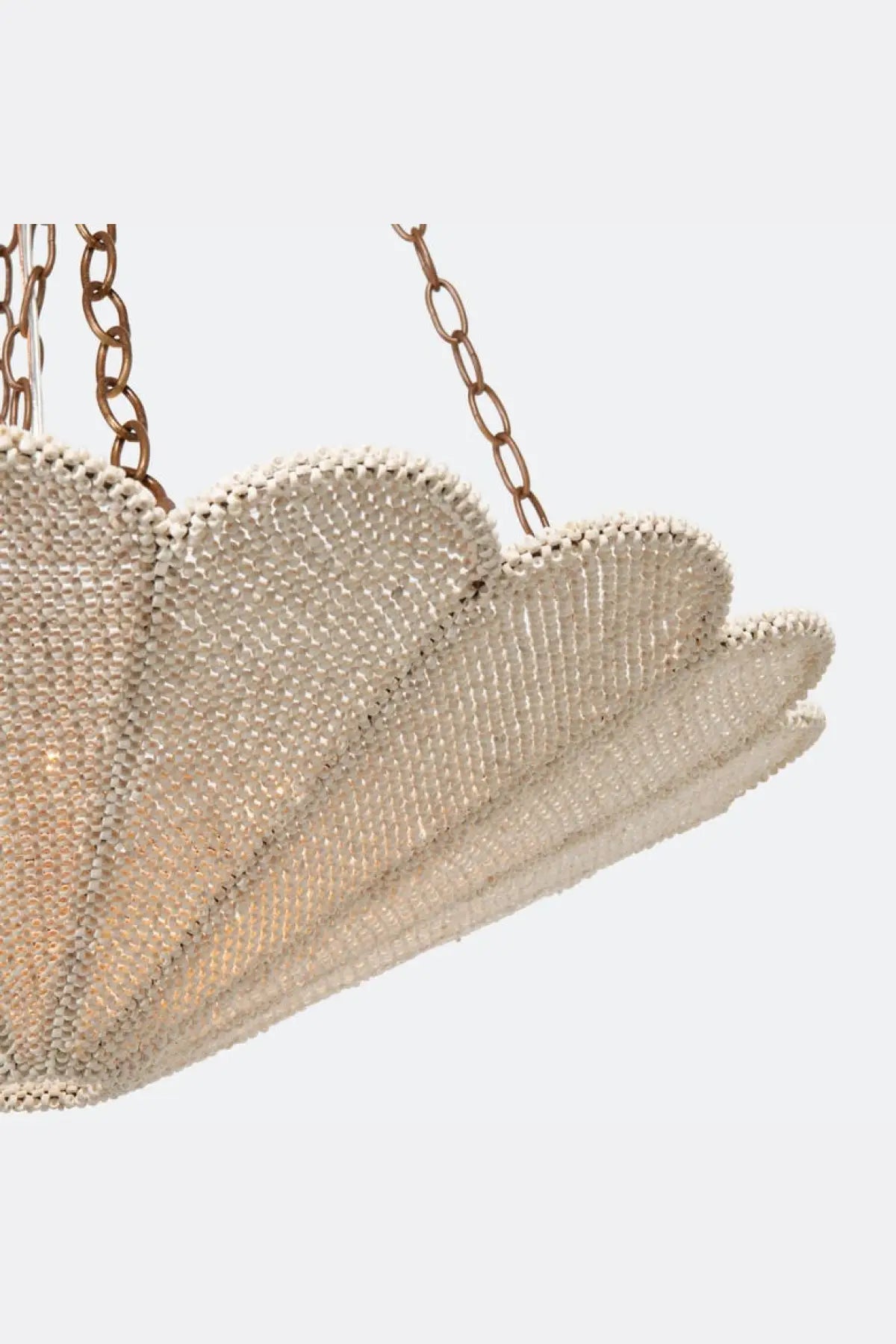 Meet Sofia, a palm-inspired chandelier with fresh vibe. Hand-strung woven coco beads create an organic, refined pattern. Color may vary.
