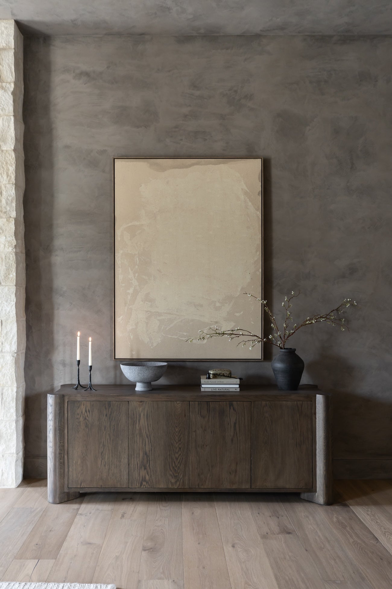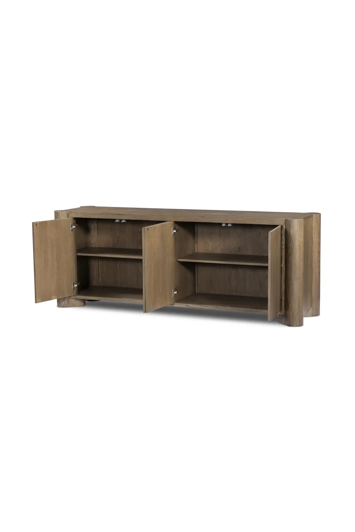 Meet the Soho Sideboard. A storage-driven sideboard defined by heavy proportions and angled, over-scaled legs. Crafted from solid oak with an aged finish to highlight rich natural graining.