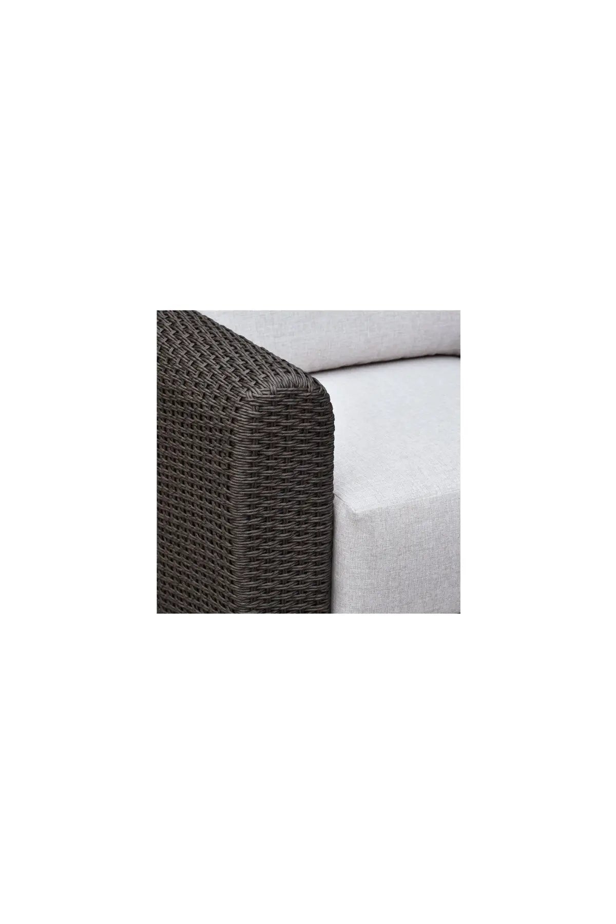The Soma Outdoor Sofa finds a graceful interplay of form and purpose. Its natural finished PE synthetic wicker frame and sunproof, heathered Olefin fabric cushions exude poise and durability. Curved, playful arms and quick-dry foam invite relaxation while ensuring timeless panache.