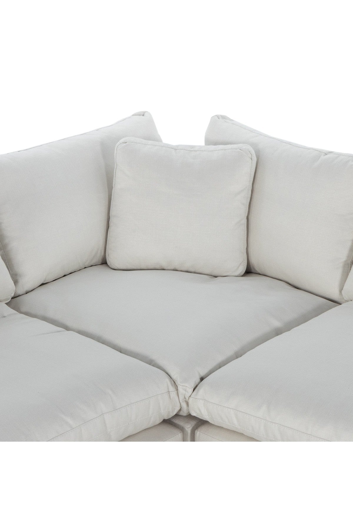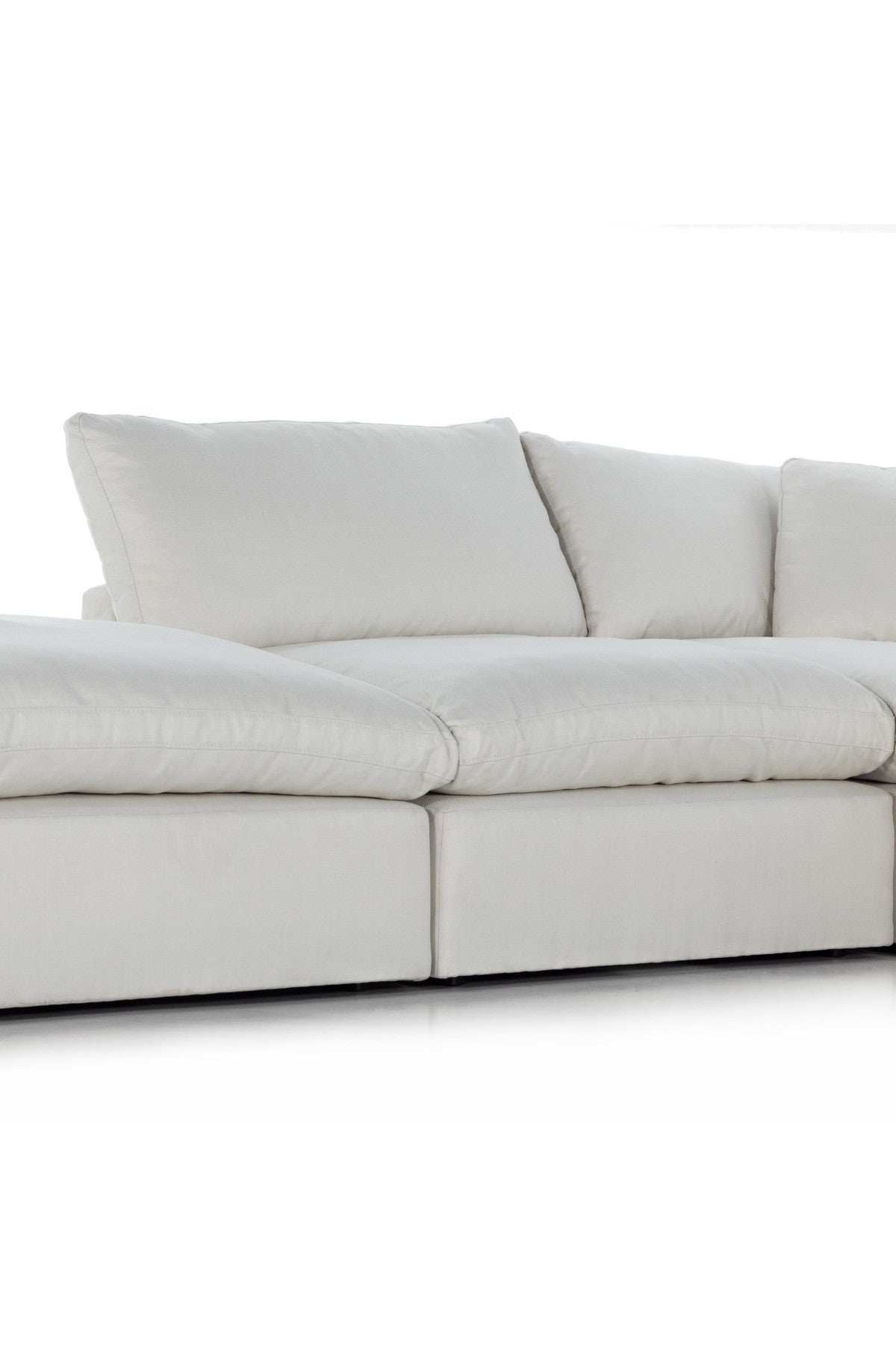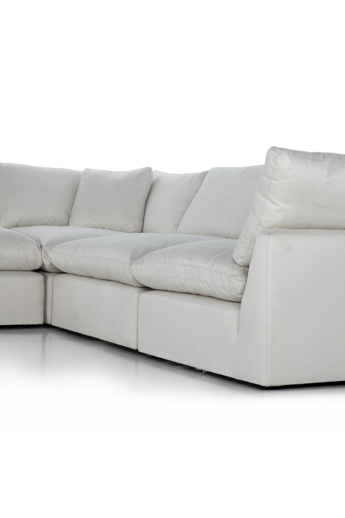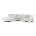 Meet the Stevie 4-Piece Sectional W/ Ottoman. This 4-Piece Sectional with Ottoman offers stylish comfort with durable, stain-resistant fabric and feather-blend cushions. Its modular design fits any space, making it a smart and elegant addition to your home.