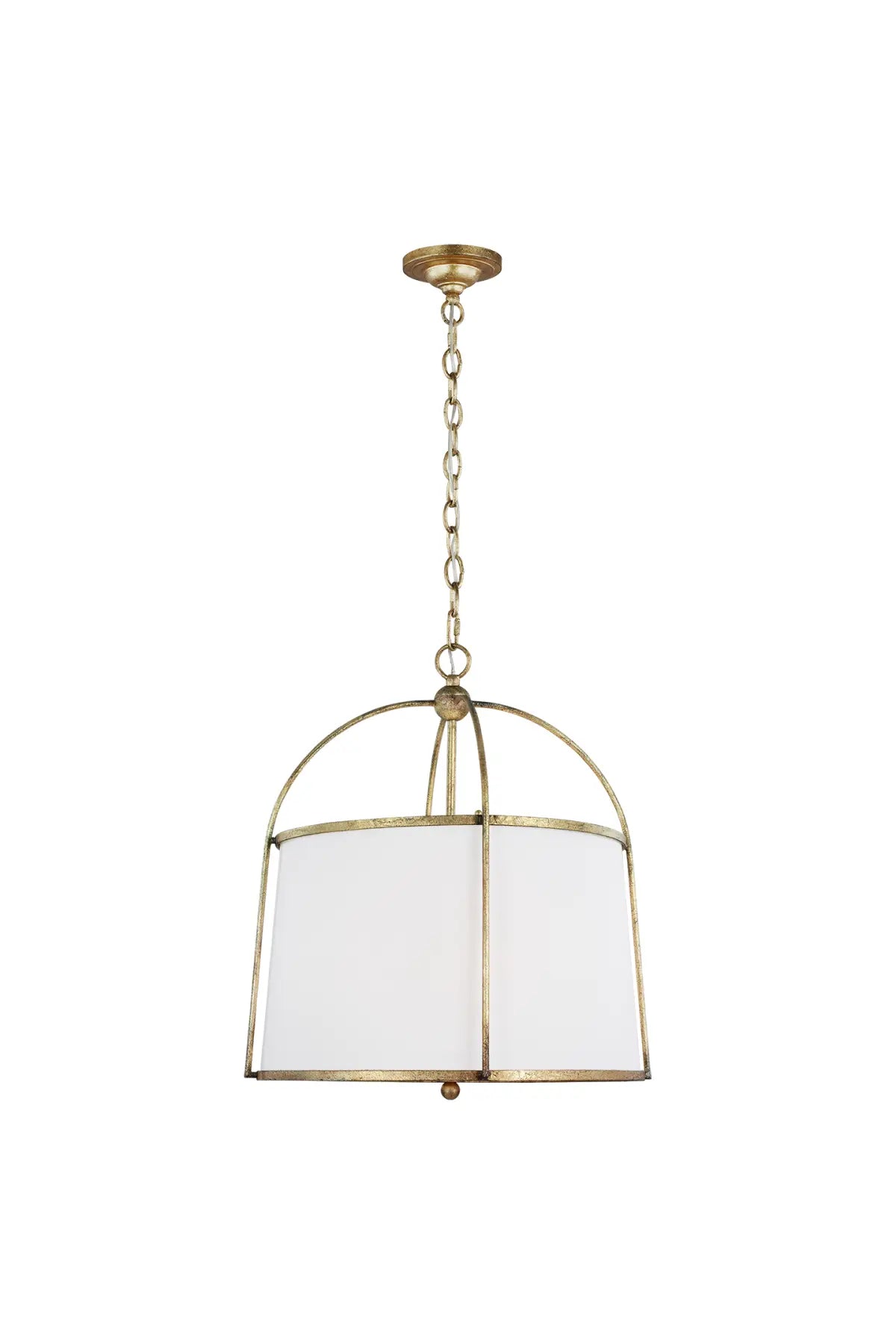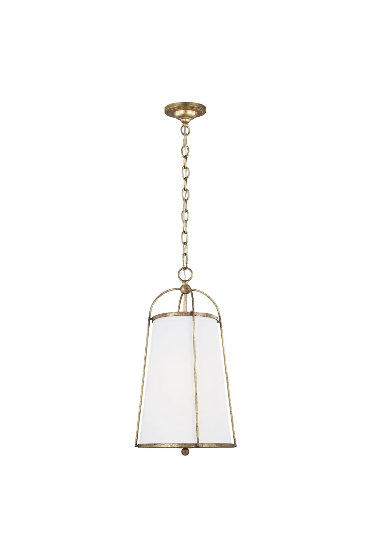 Meet the Stonington Pendant. Crafted from durable steel and soft linen fabric. It features a sophisticated antique gild finish that adds a timeless touch to any room. Available in two sizes, it’s designed to complement a variety of spaces with elegance. Bulb(s) not included.