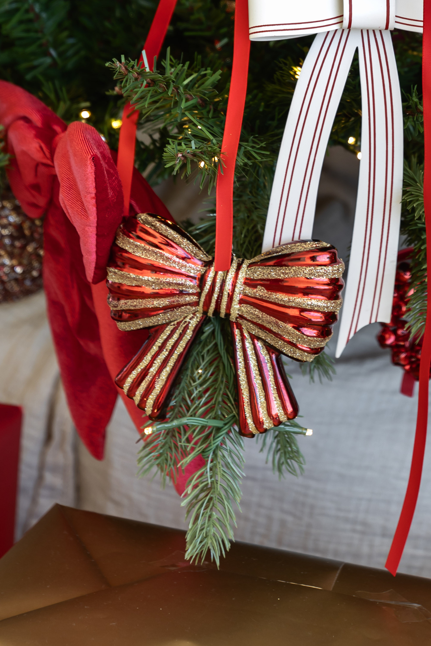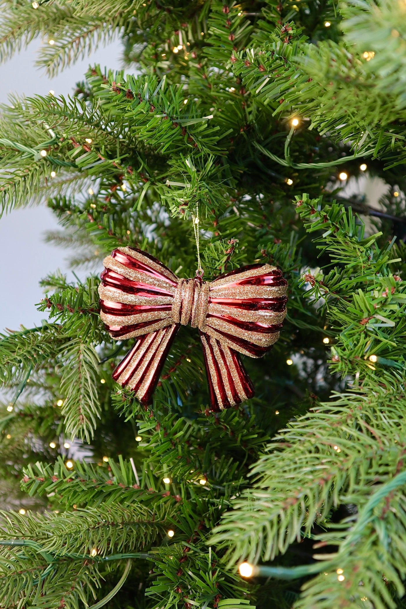 The Striped Bow Ornament is the chicest ornament with a subtle stripe and glitter detail that is perfect in every way. You won't be able to resist!