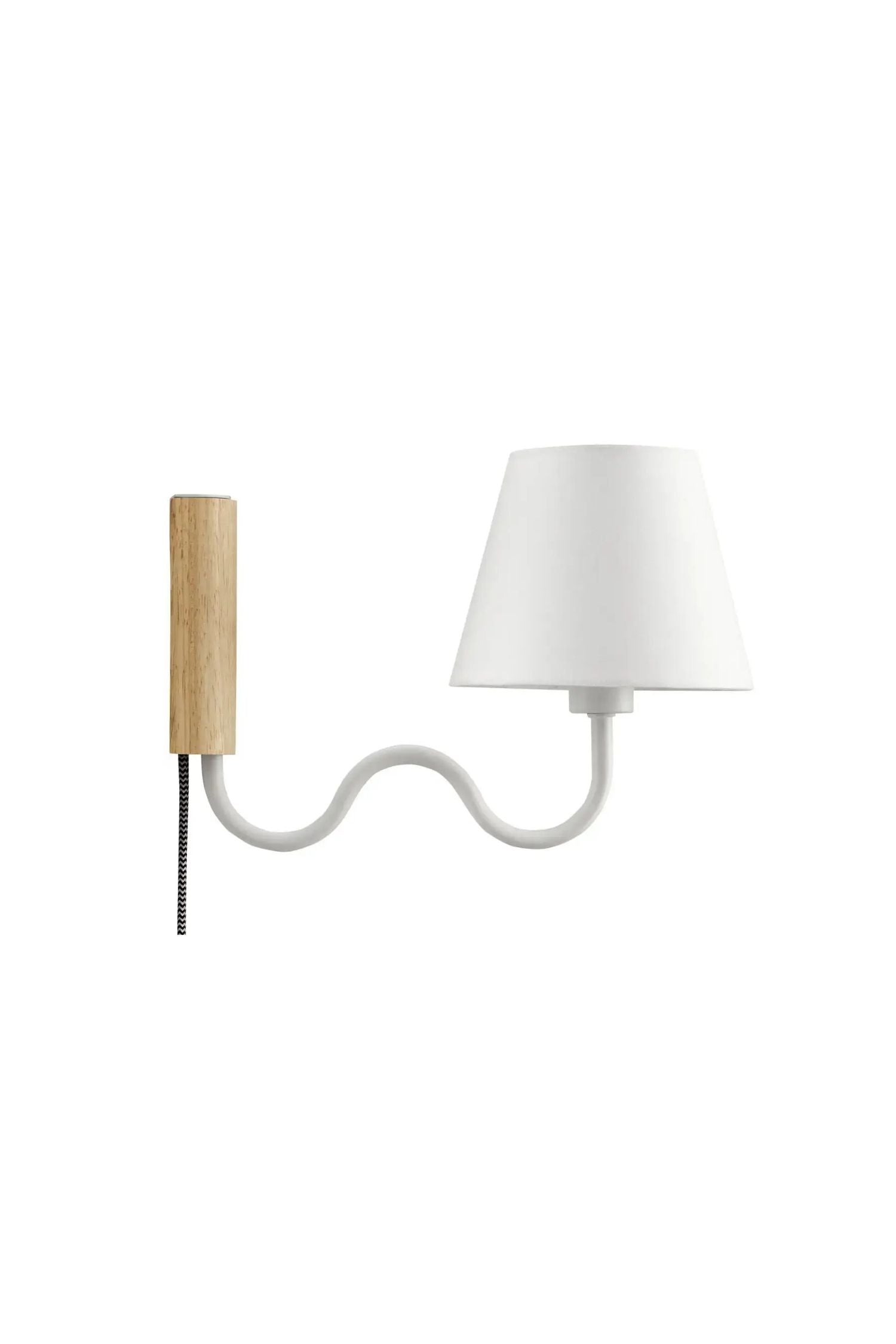 Meet the Sunlit Squiggle Arm Wall Sconce. Featuring a beautifully crafted wooden backplate, this wall sconce adds a touch of natural aesthetics to any room. The fabric shade diffuses light to create a warm, welcoming glow—perfect for bedrooms, living rooms, lounges, or hallways. With a 144º swivel, you can direct light where it's most needed. Designed for convenience, this plug-in wall lamp includes an on/off switch, eliminating the need for hardwiring. Bulb(s) not included. Assembly required.