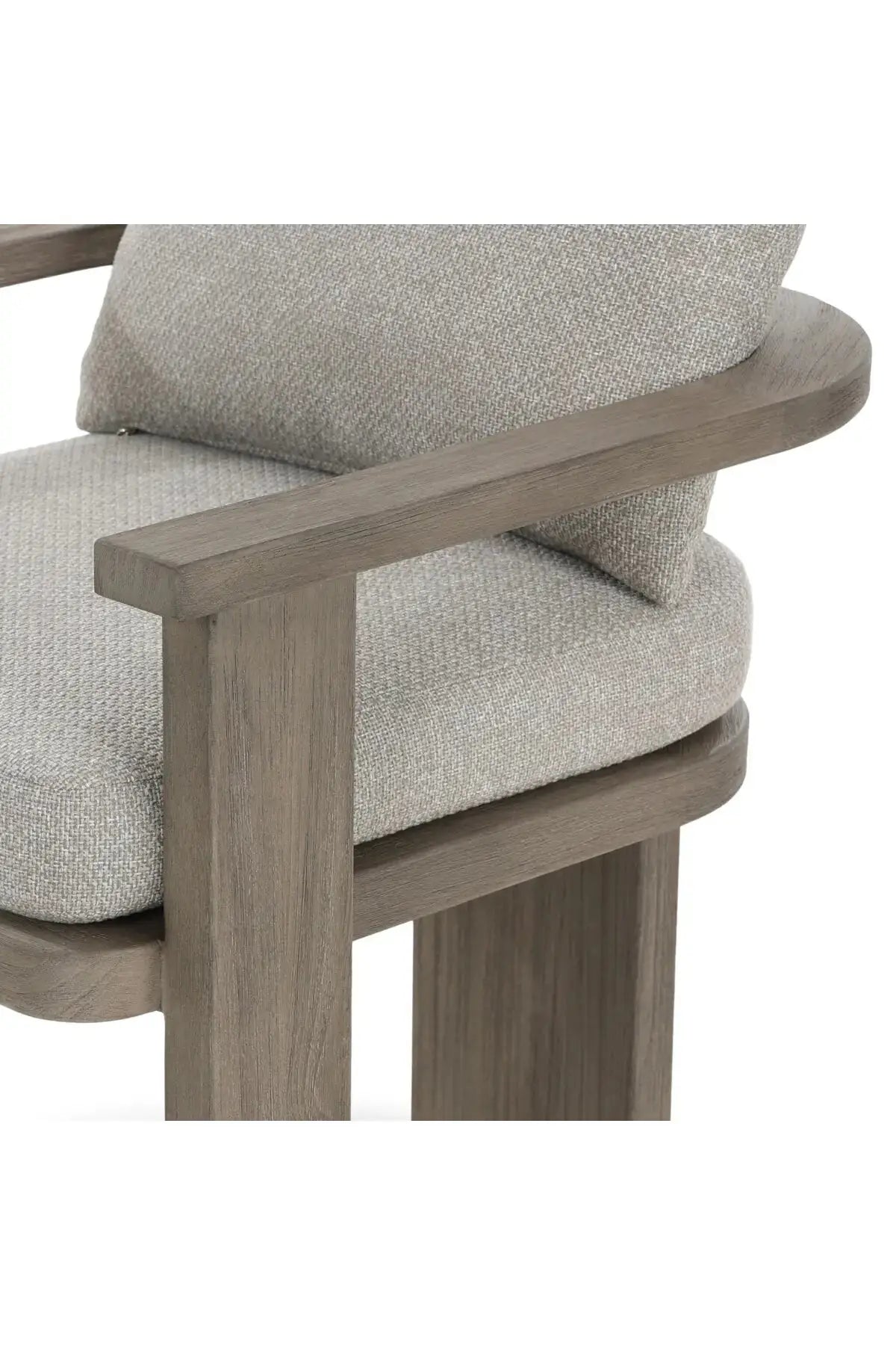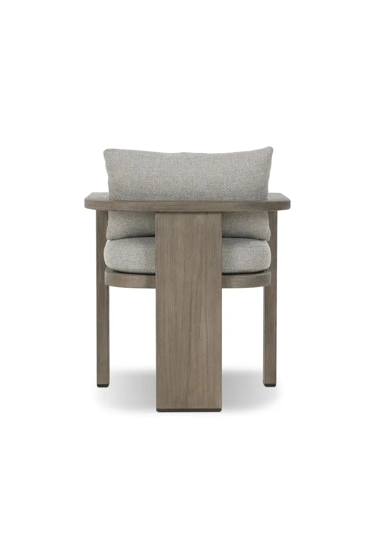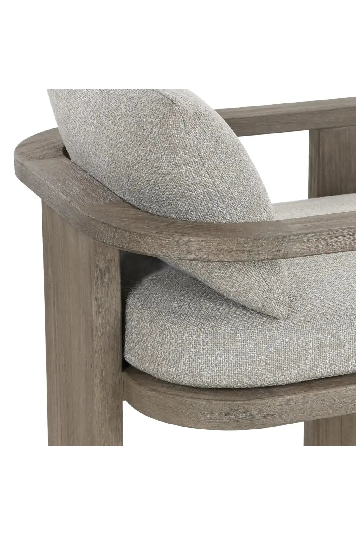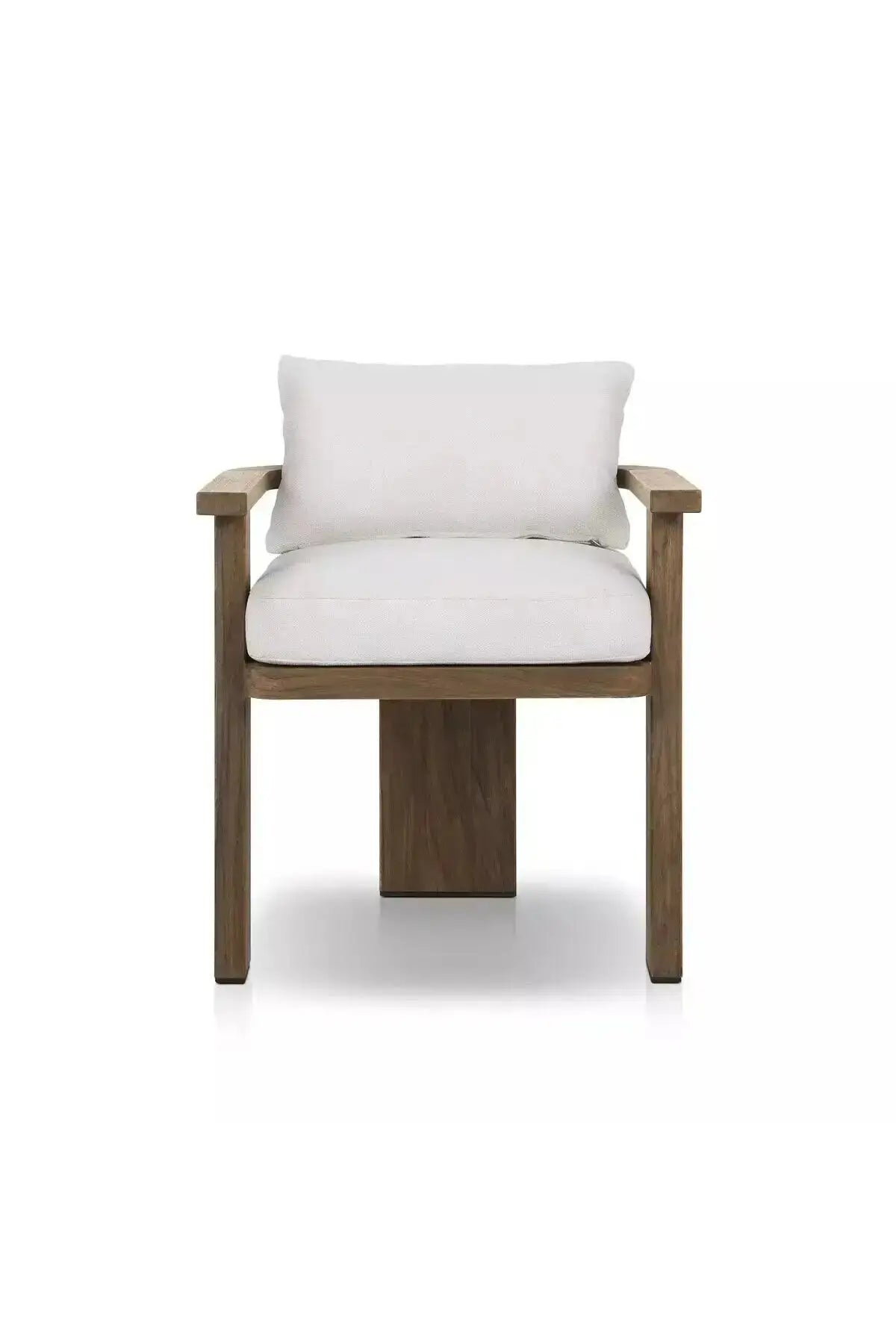 Meet the Tahana Outdoor Dining Armchair. This outdoor dining armchair combines a unique three-leg design with a comfortable curved back, made from sustainable FSC®-certified wood. Its thick cushions are upholstered with durable Italian fabric for lasting comfort. Protect it by covering or storing it indoors when not in use.