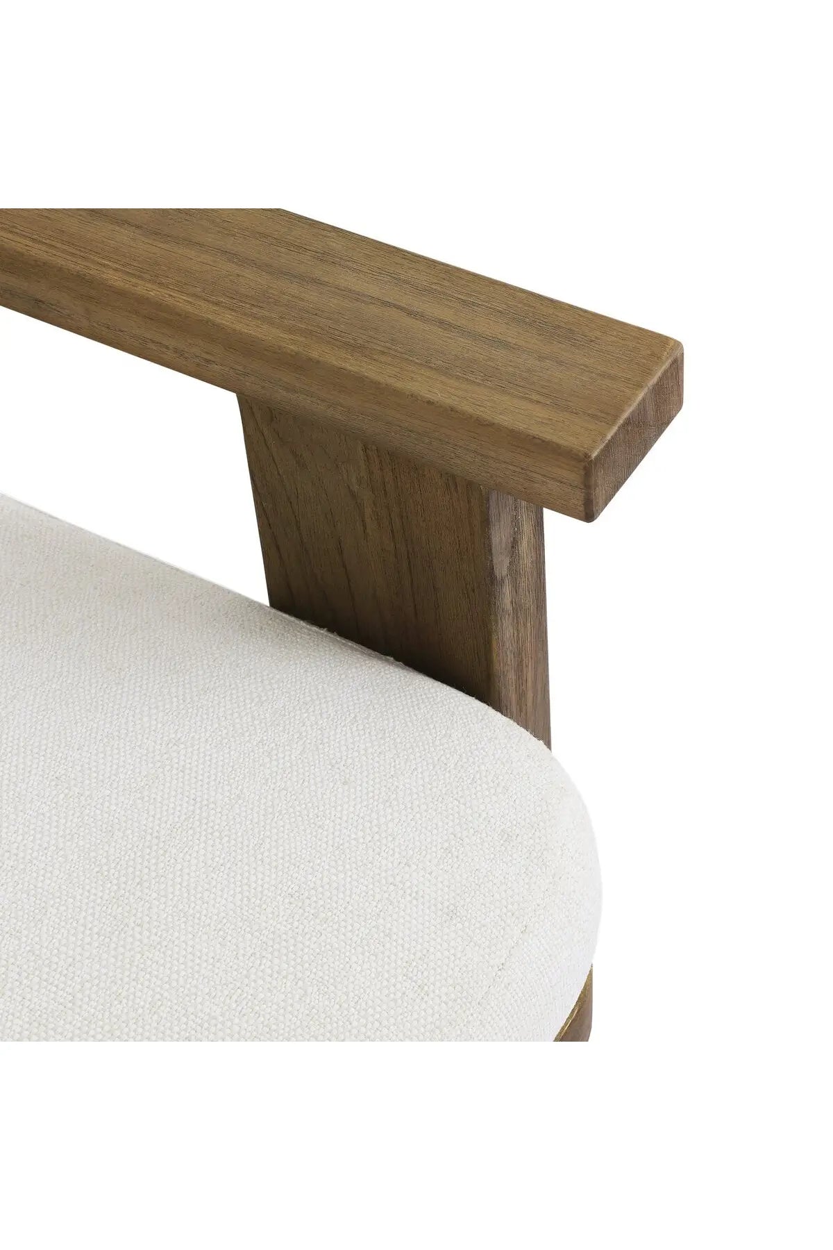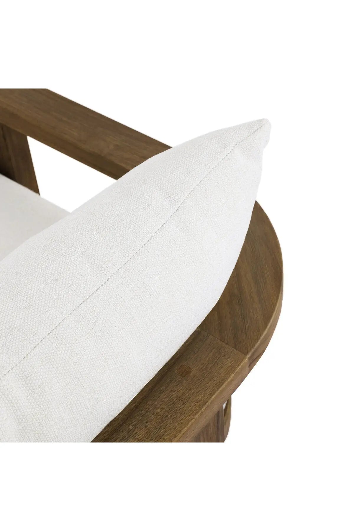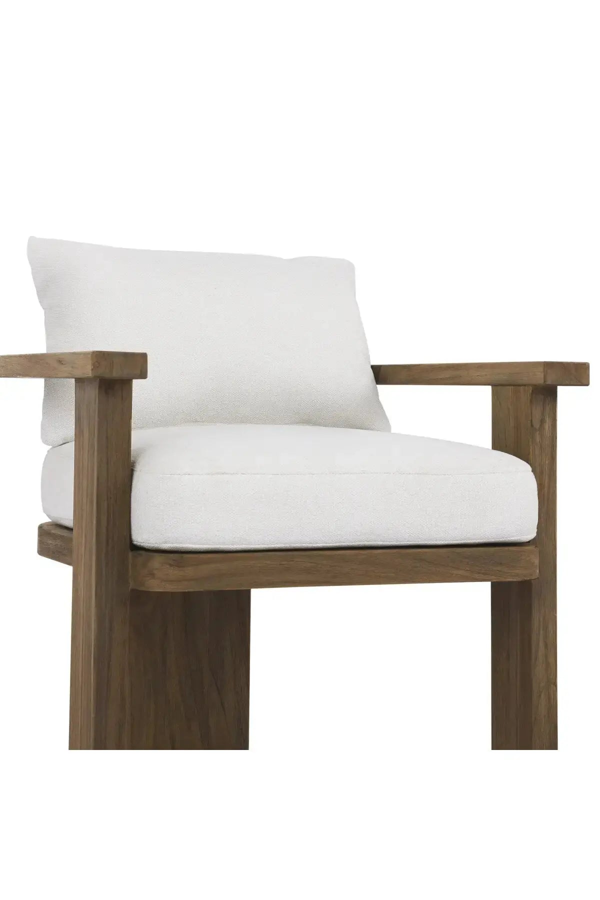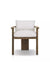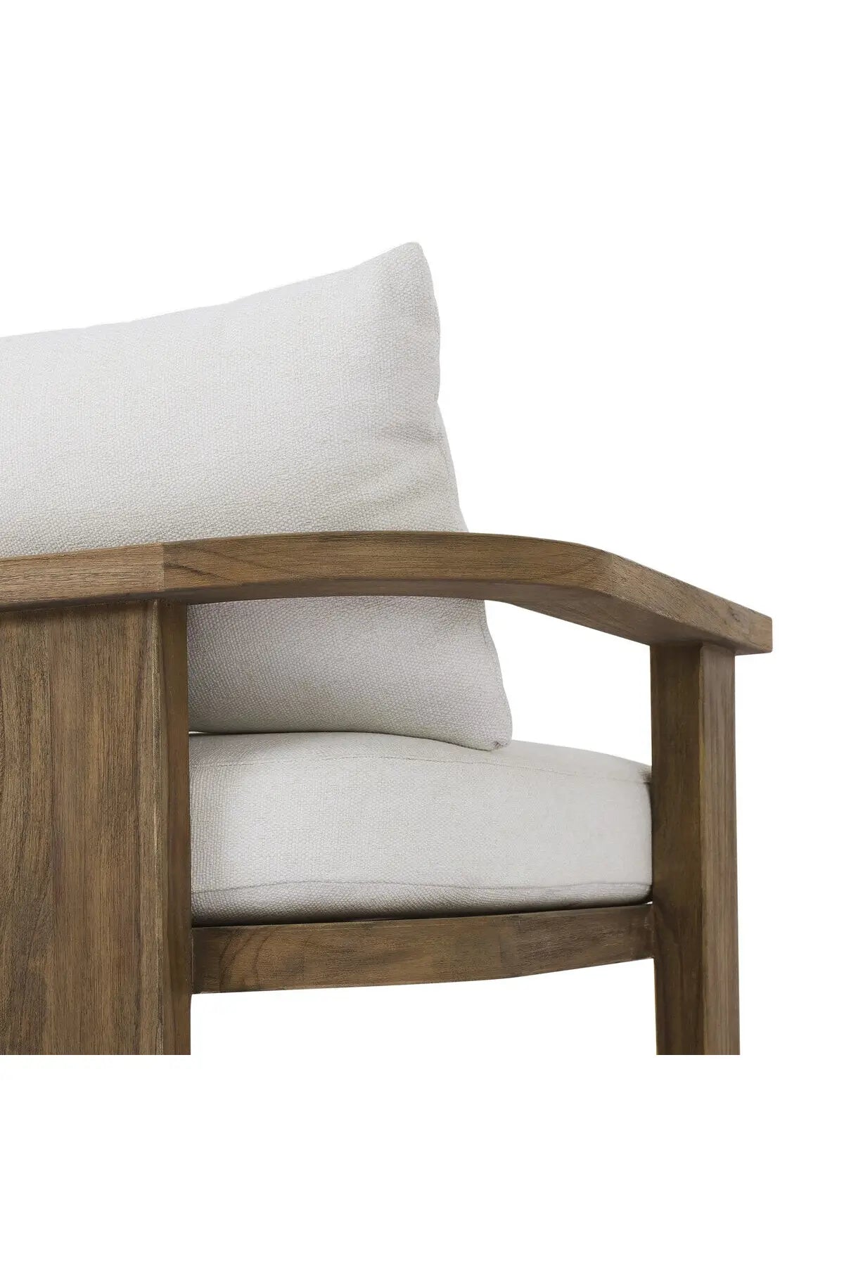 Meet the Tahana Outdoor Dining Armchair. This outdoor dining armchair combines a unique three-leg design with a comfortable curved back, made from sustainable FSC®-certified wood. Its thick cushions are upholstered with durable Italian fabric for lasting comfort. Protect it by covering or storing it indoors when not in use.