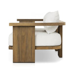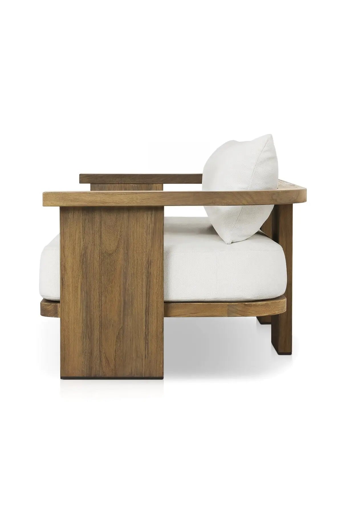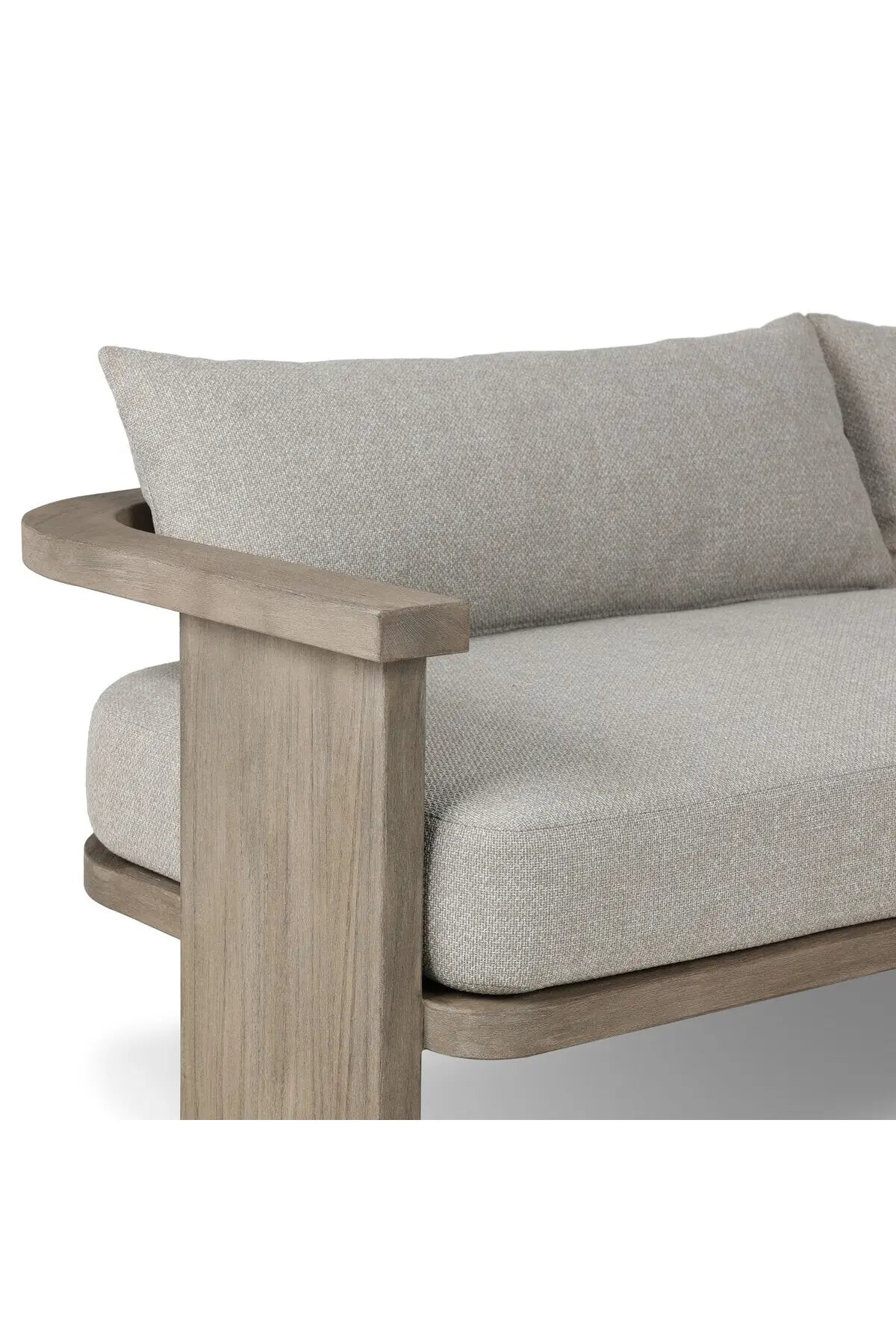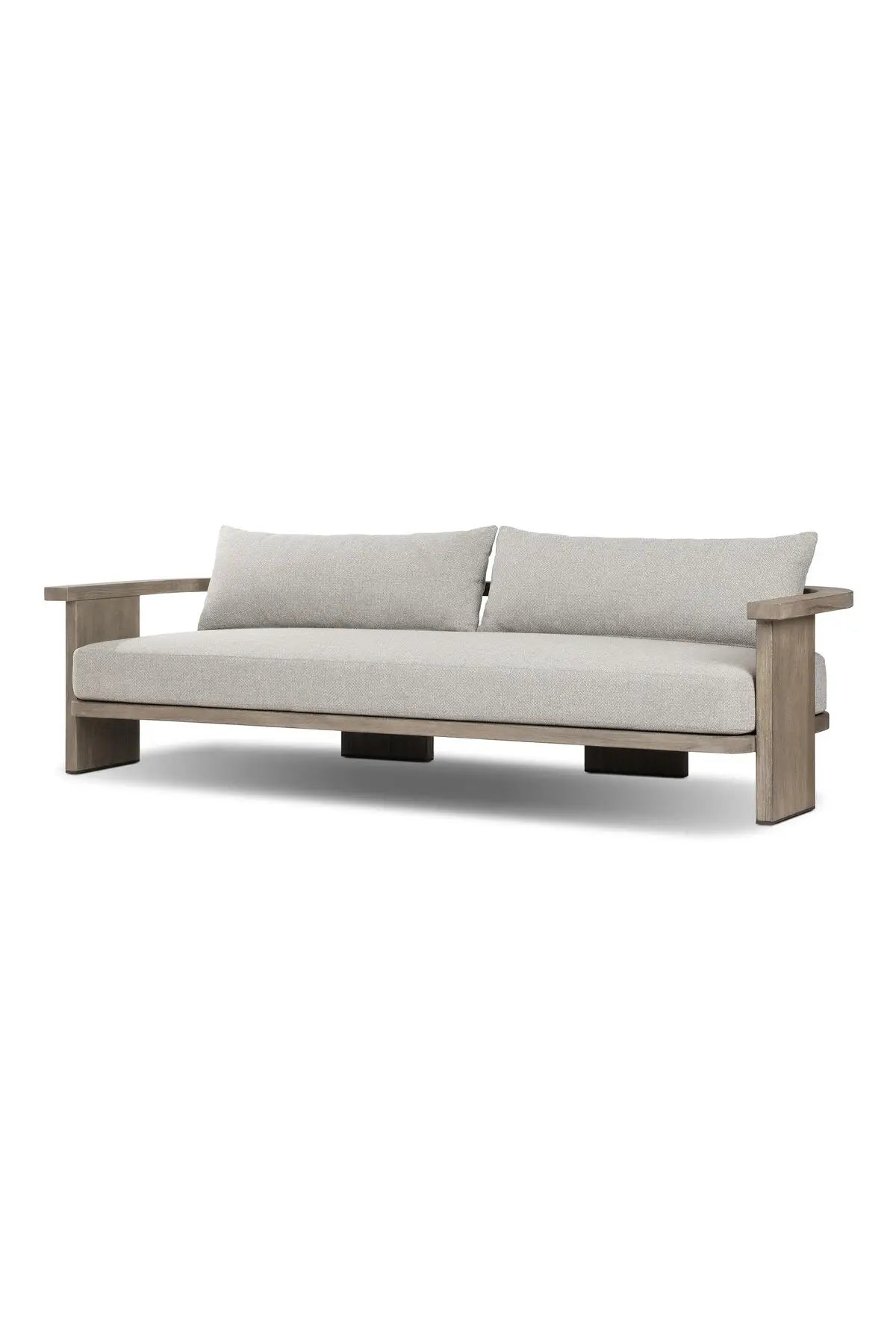 Meet the Tahana Outdoor Sofa. Clean and simple, this bold outdoor sofa features a distinctive design and curved seat back, crafted from FSC®-certified wood. The thick box cushion and knife-edge back cushion are finished in a high performance Italian upholstery. Cover or store indoors during inclement weather and when not in use.