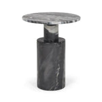 Meet the Taite Accent Table. This sleek and stylish table brings all the drama with its swirling marble top and chunky cylindrical base. Perfect for adding a touch of bold elegance, it's the ultimate sidekick for your coffee, cocktails, or compliments!