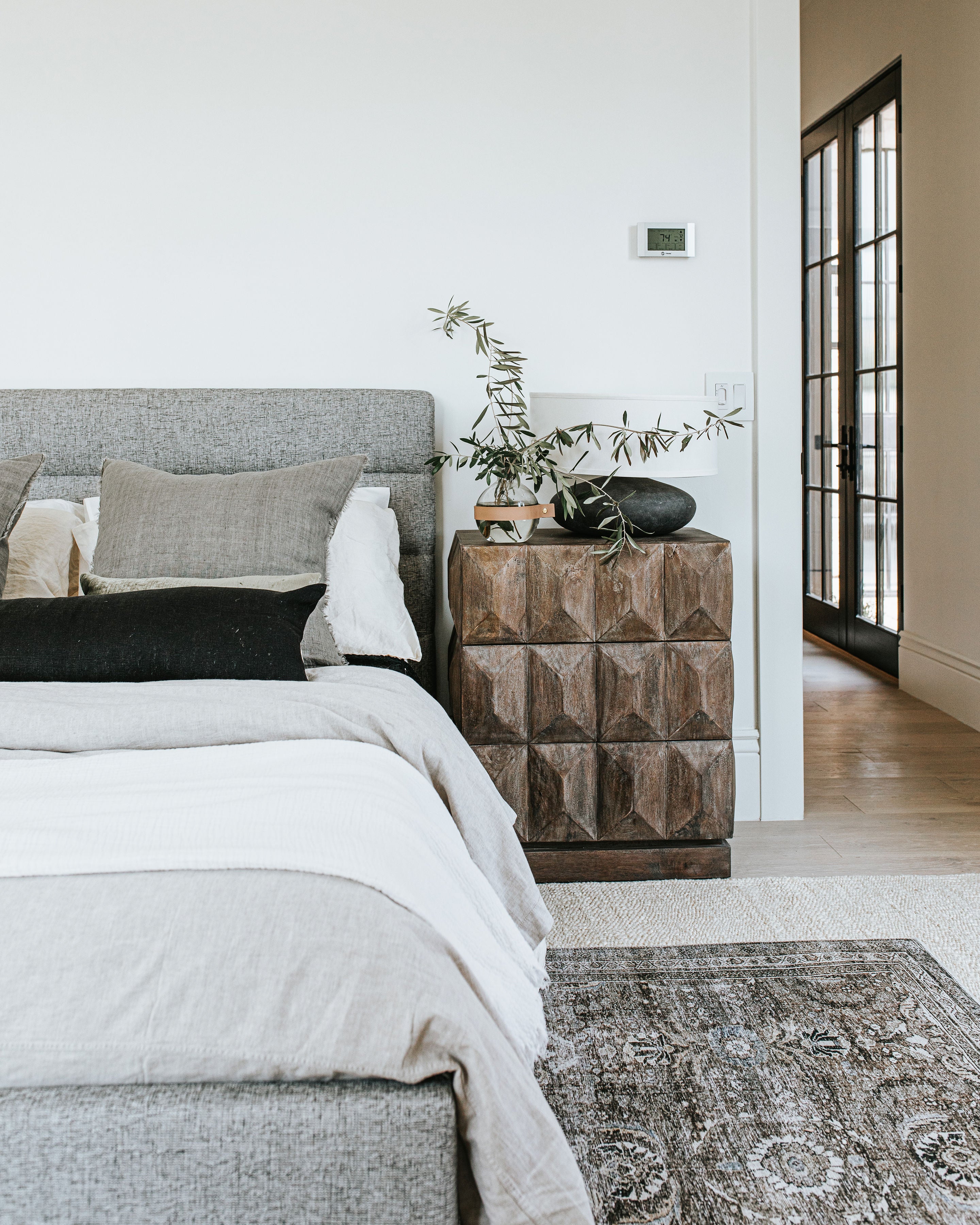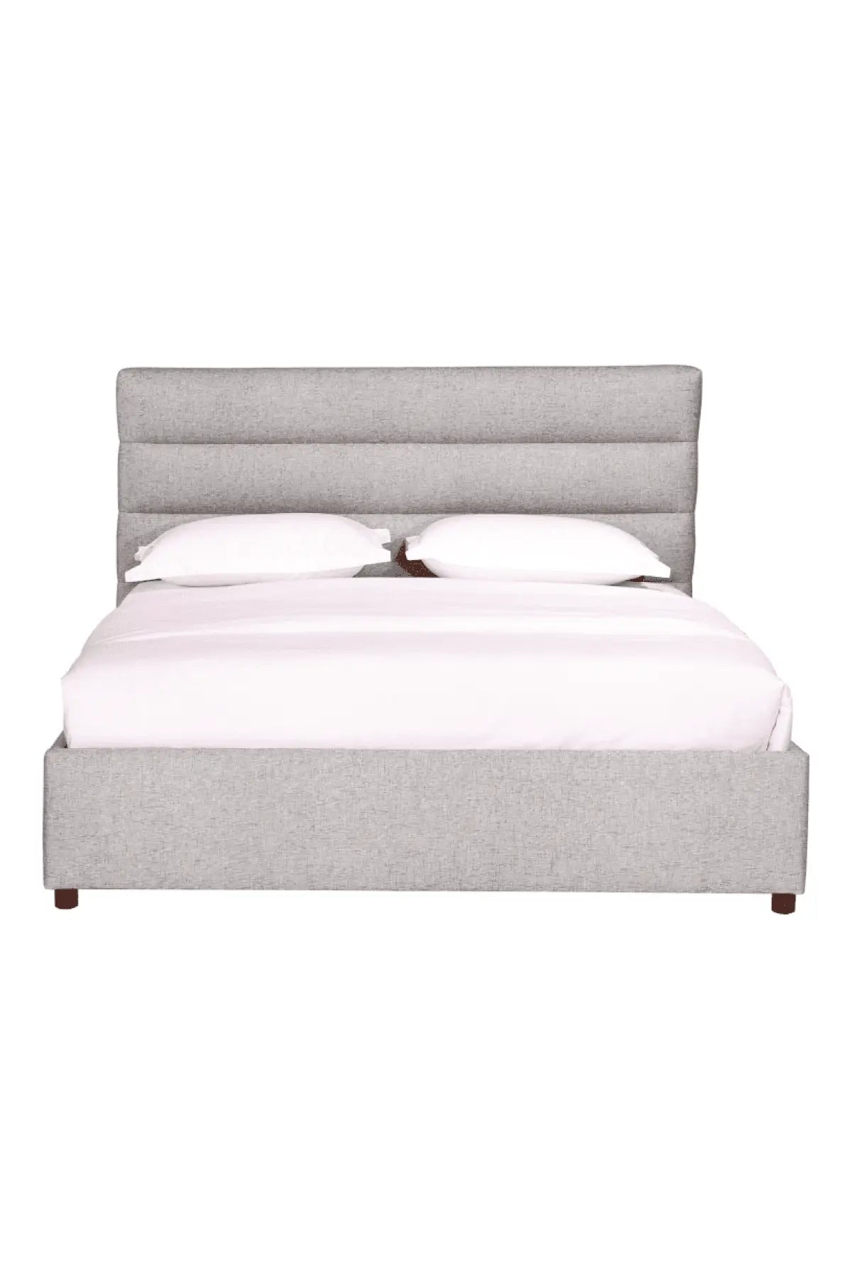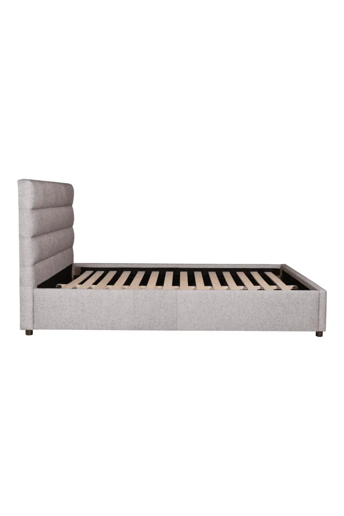 The Takio Bed is softly upholstered in light grey velvet fabric for a soothing feel before you drift off to dreamland. Lightly stuffed and tufted on top of a solid wood construction for ultimate comfort.