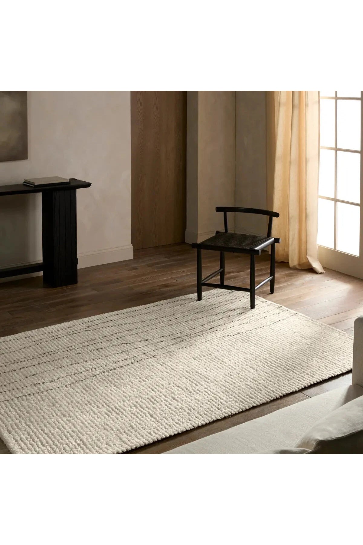 Meet the Tamry Rug. Traditional Moroccan motifs, but make them modern. Power loomed, with a hand knotted look, this exquisite rug showcases a bold design on an ivory base complete with a lustrous sheen. Striking yet simple, this medium-traffic rug is indulgent on the eyes and underfoot. Samples are modeled at our North Scottsdale/Phoenix location.