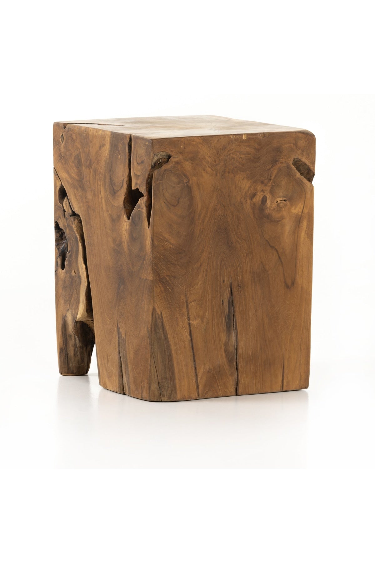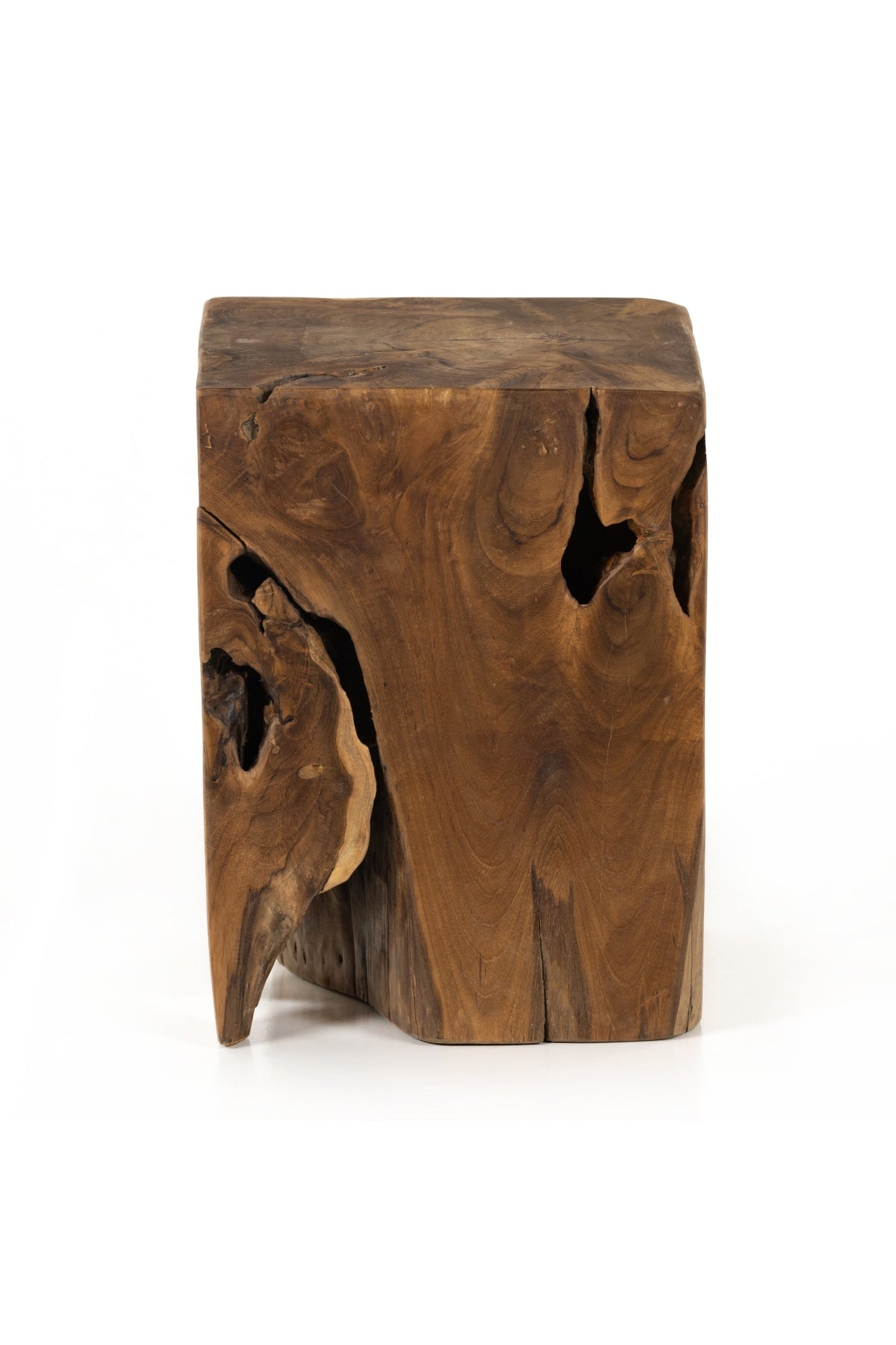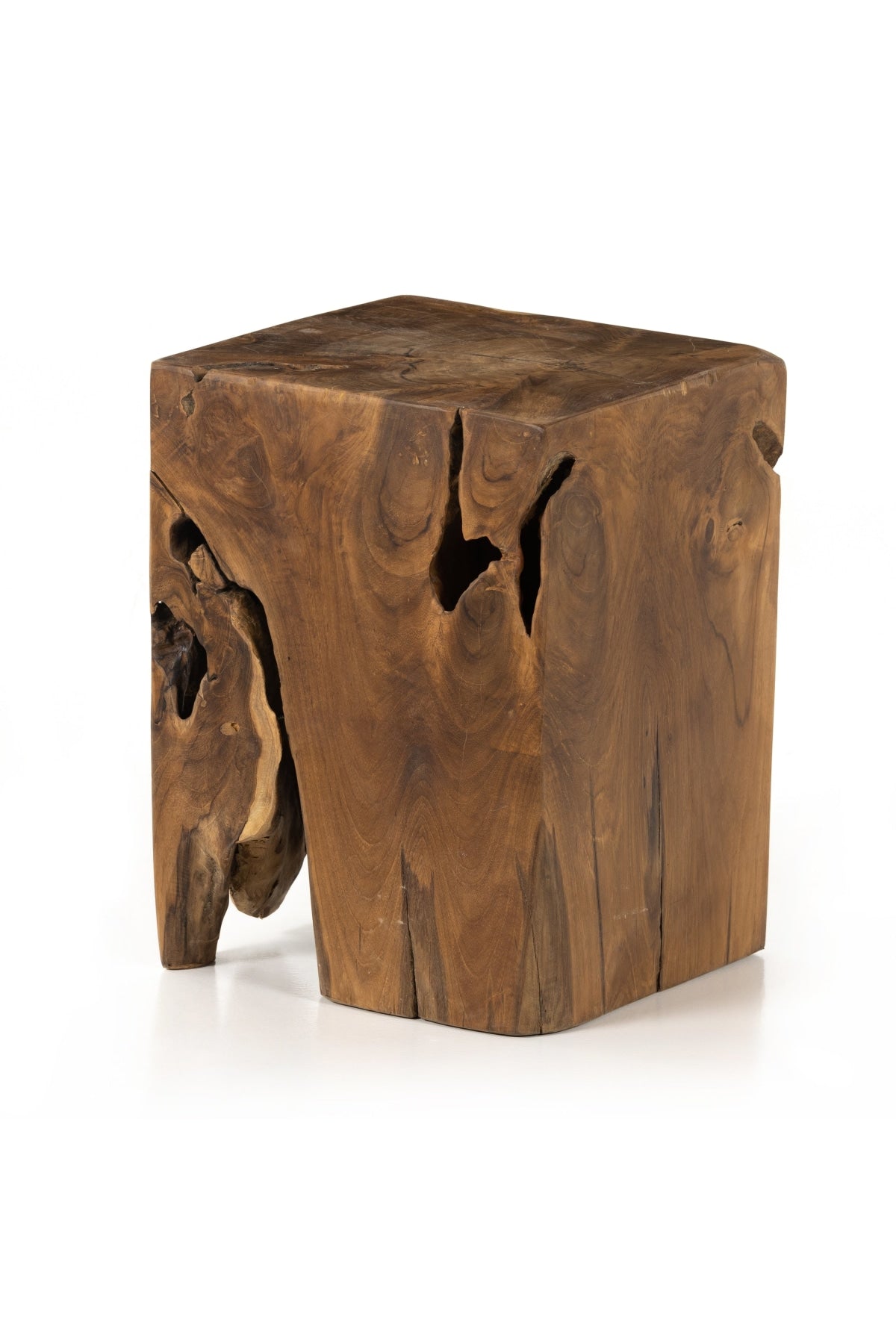 Meet the Teak Square Stool. The Teak Square Stool adds a touch of organic texture to spaces indoors or out. Each has unique character, with natural variation in knots, holes and grain character, and dramatic highs and lows in the finish. Over time, teak weathers and greys in the sun for a found feel.
