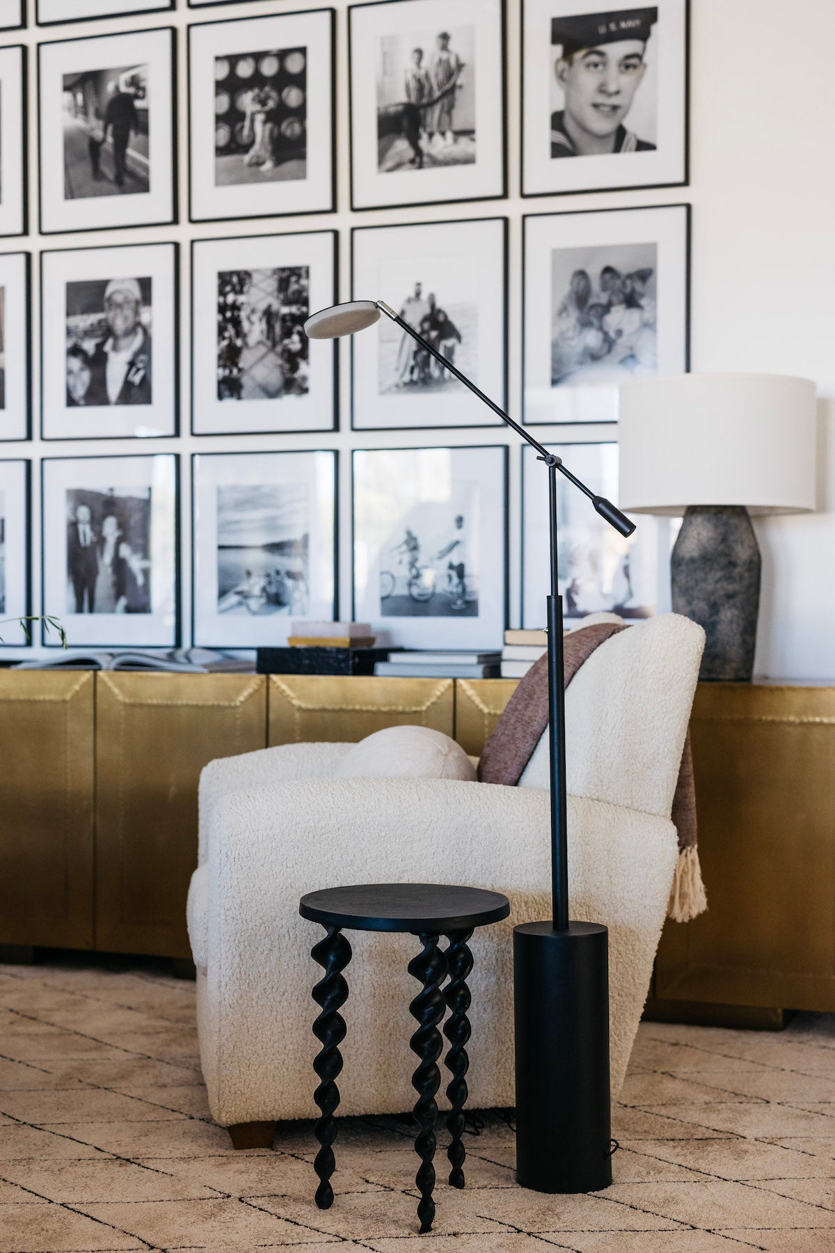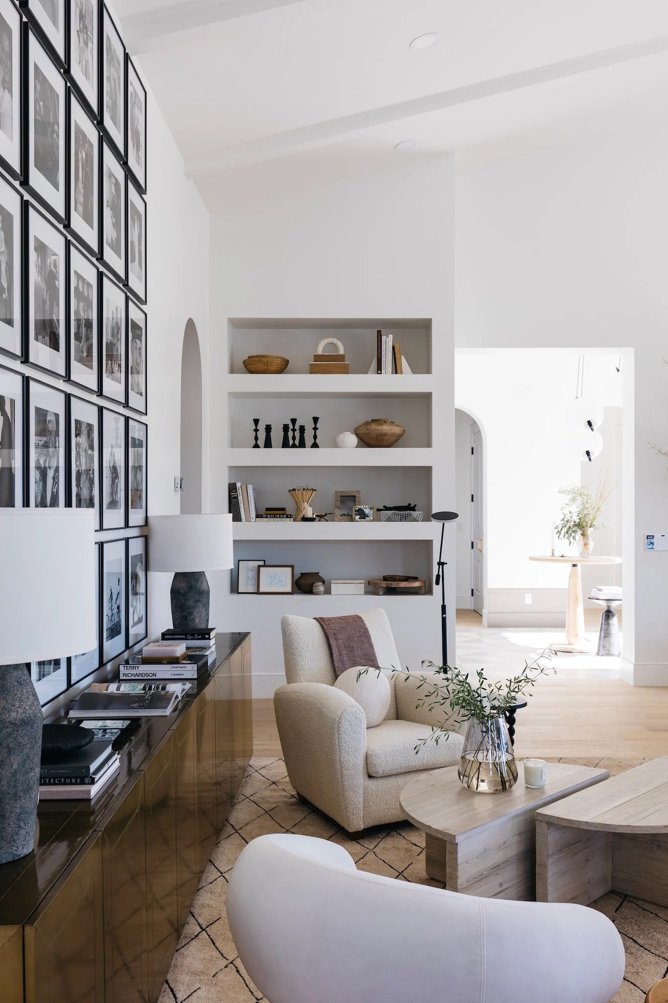 Meet the Teddy Accent Chair. With its curved track arms and supportive back, this cozy accent chair is the perfect balance of comfort and style. Fully upholstered in a soft off-white faux shearling and accented by walnut stained wooden feet.