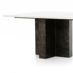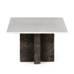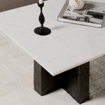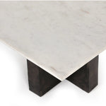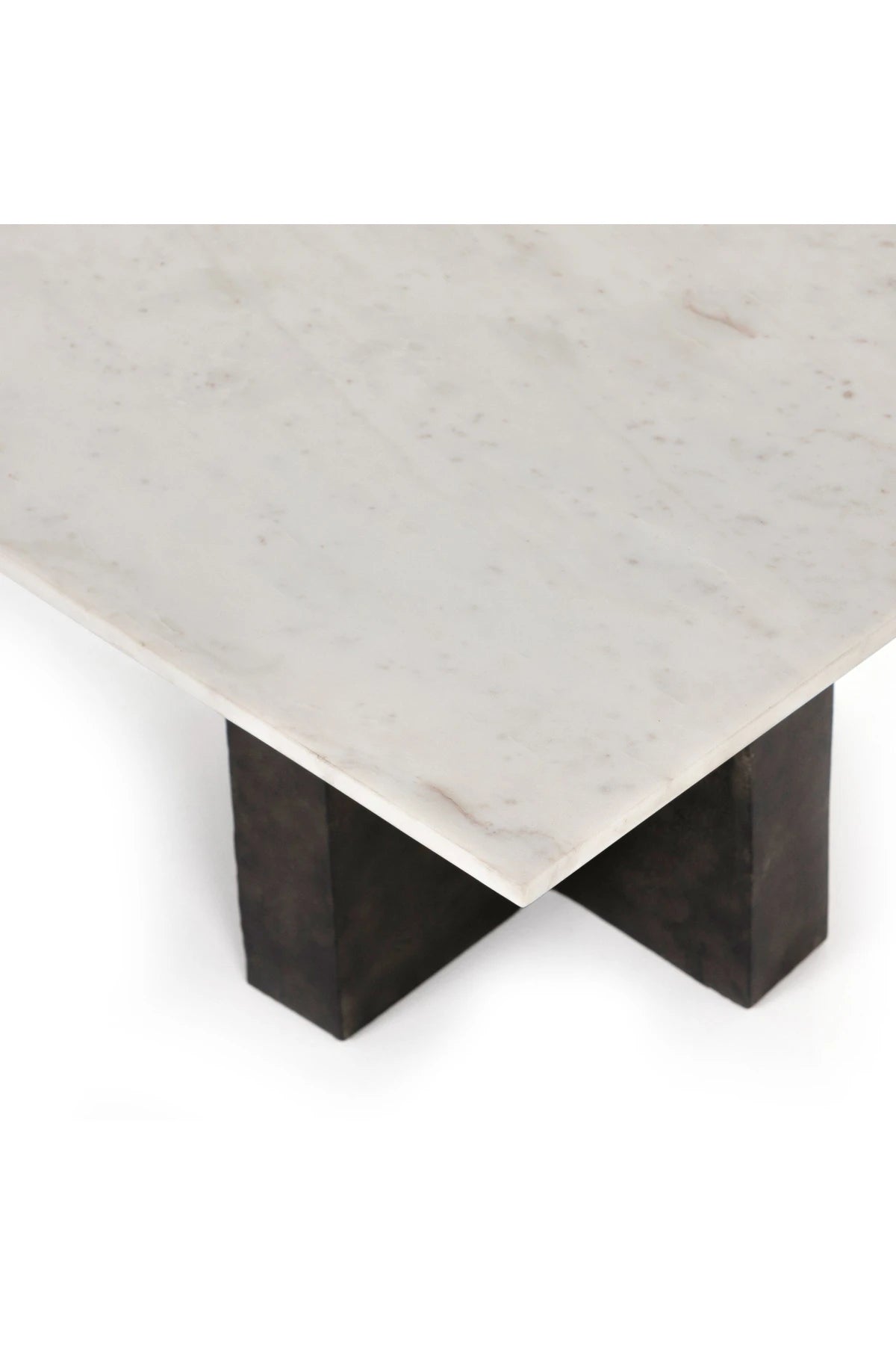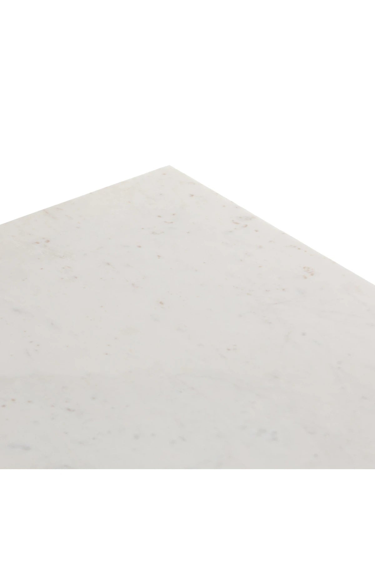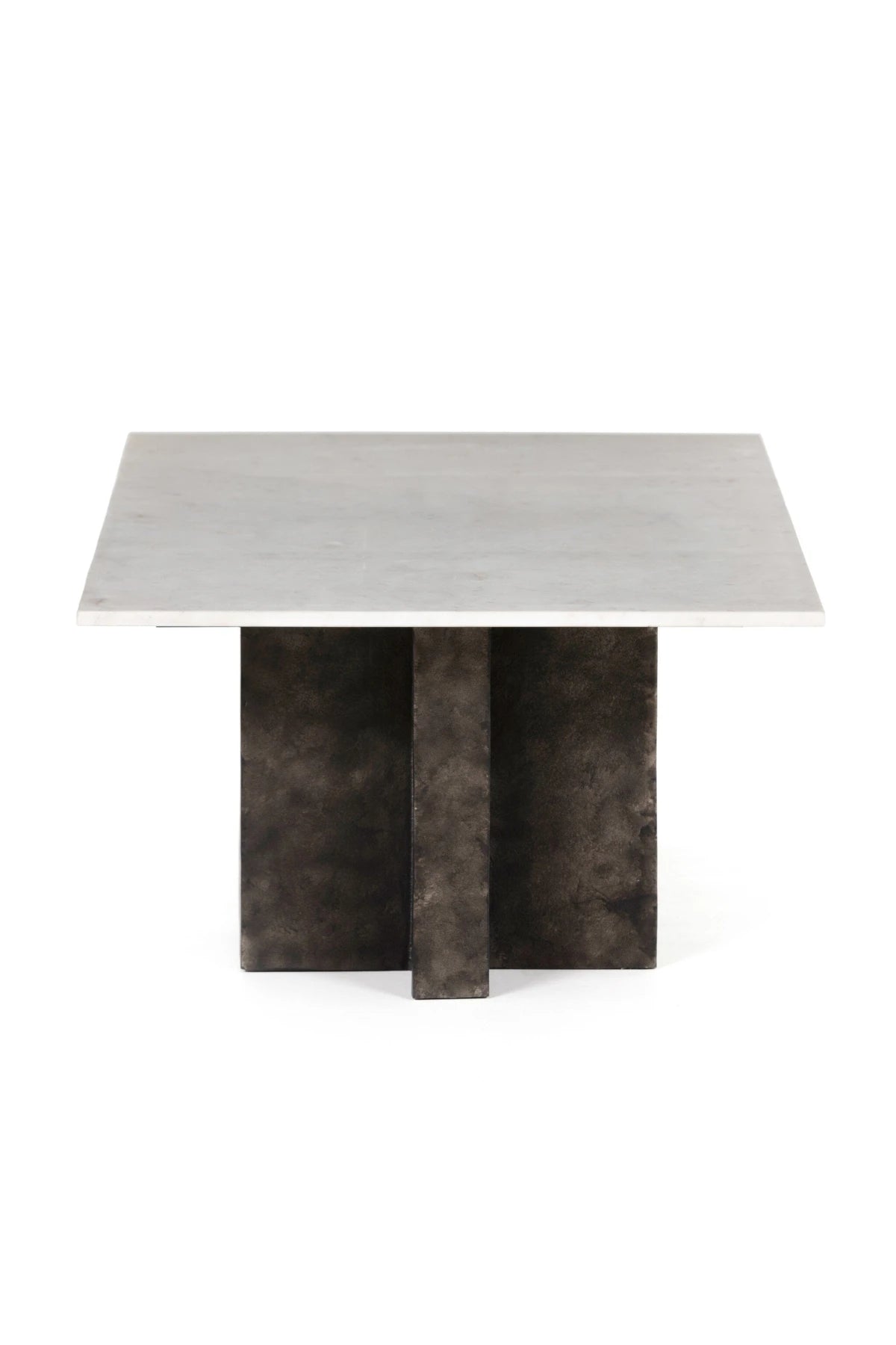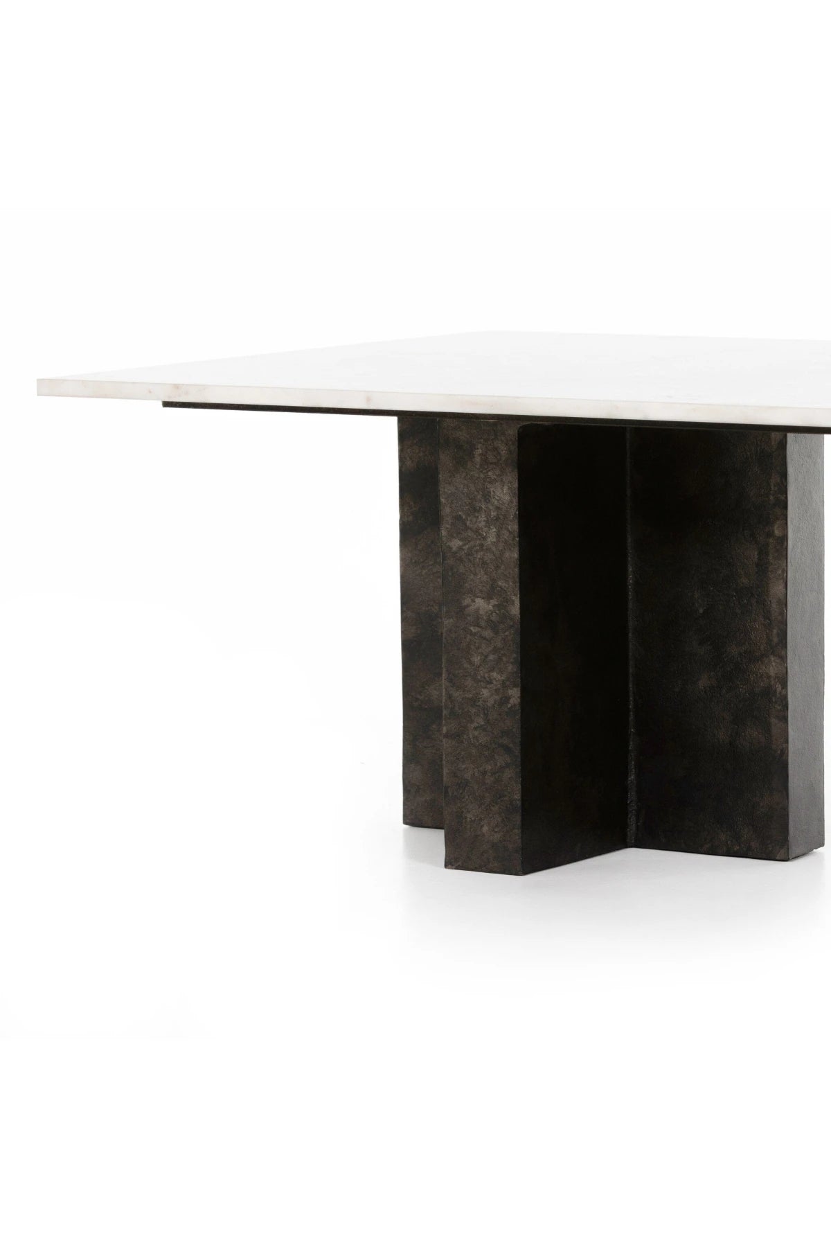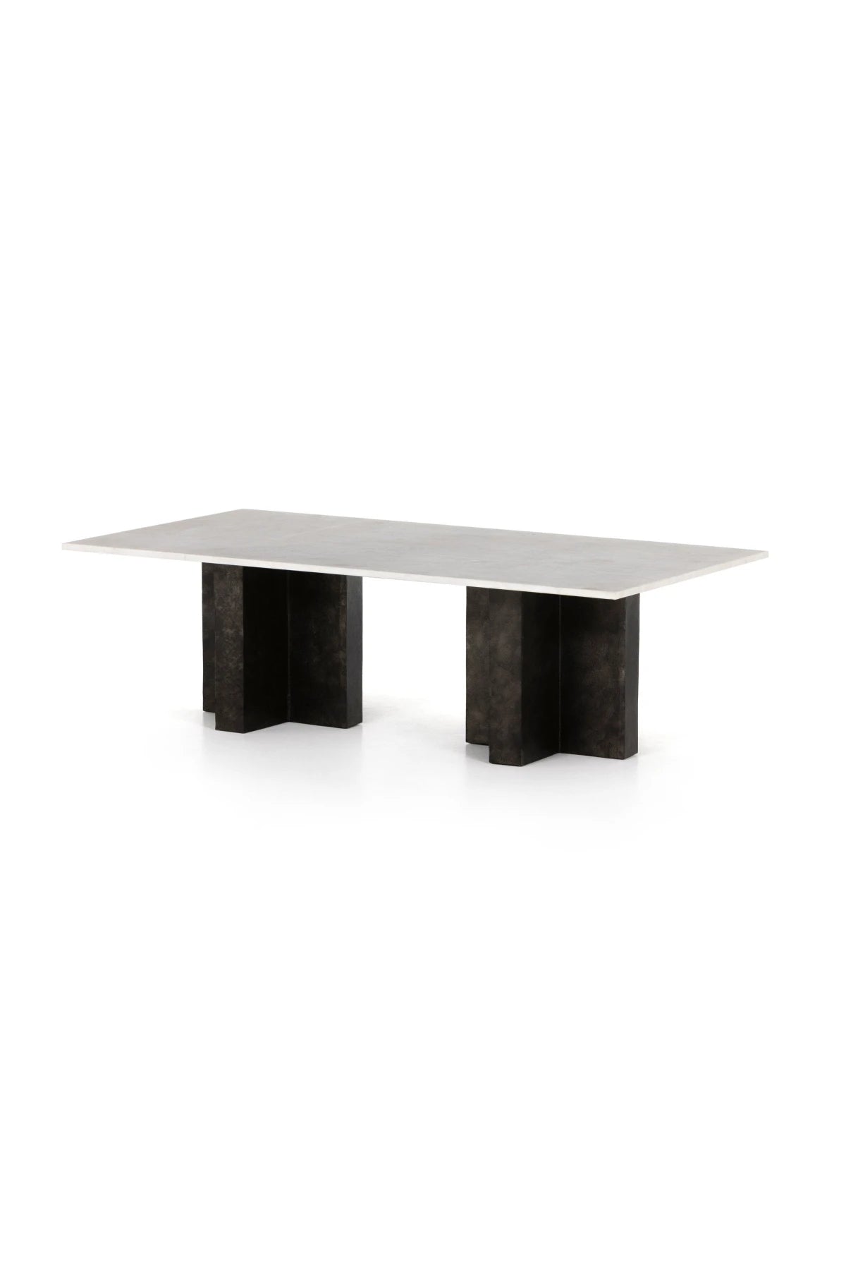 Meet the Terrell Coffee Table. Classic with contrast. Finished in a raw black, uniquely angular cast aluminum legs support a rectangular tabletop of solid marble in a clean, polished white.