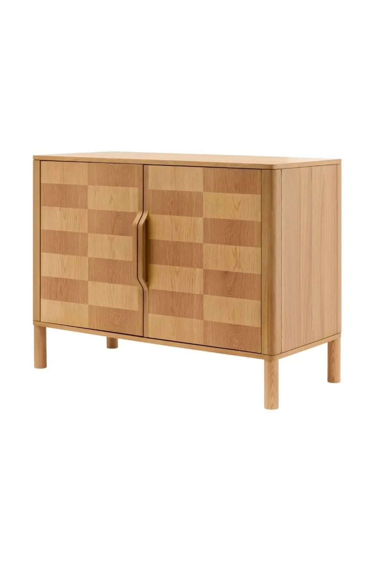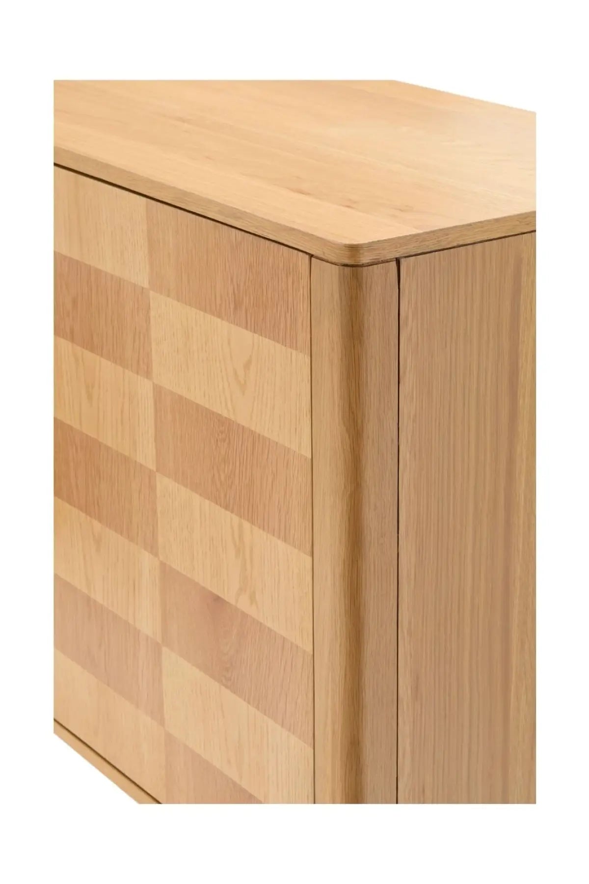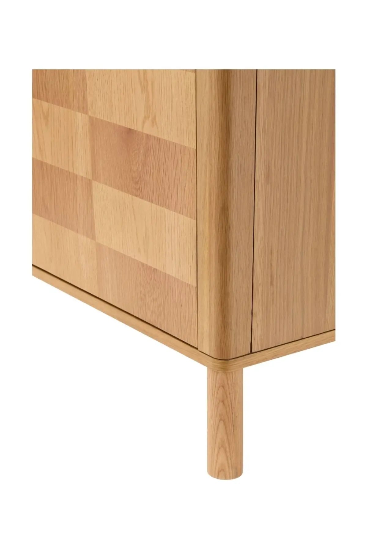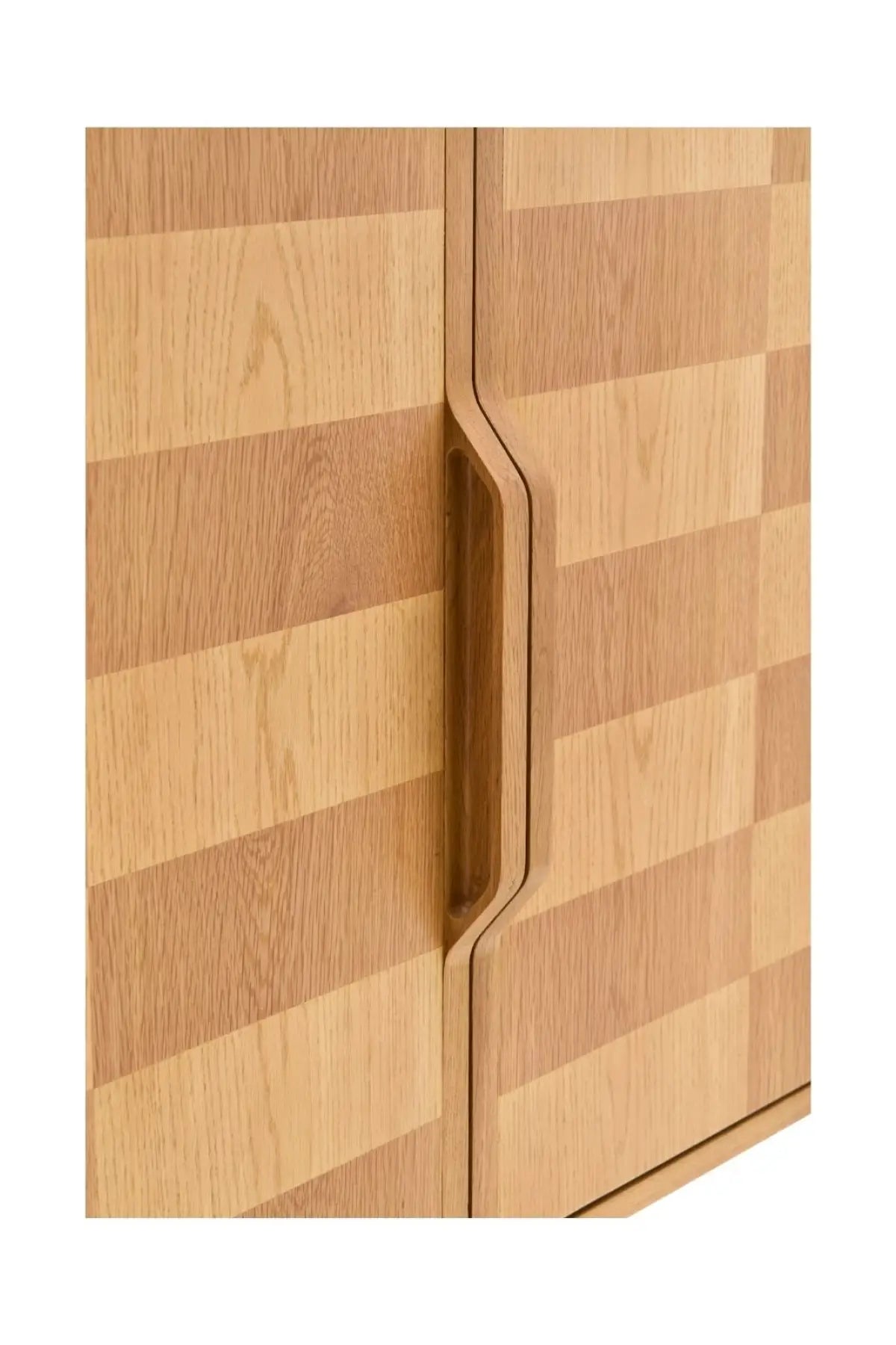 Meet the Tessell Cabinet. This piece showcases the rich beauty of stained, two-toned white oak veneer paired with dark brown natural wood, creating a striking contrast. Its earthy brown tones bring warmth and sophistication, perfect for adding character to any room. A seamless blend of natural materials and contemporary design, it enhances any space with timeless elegance.