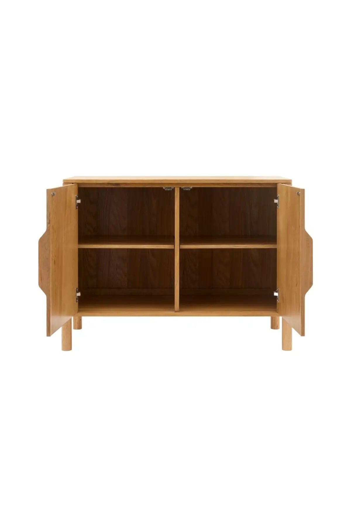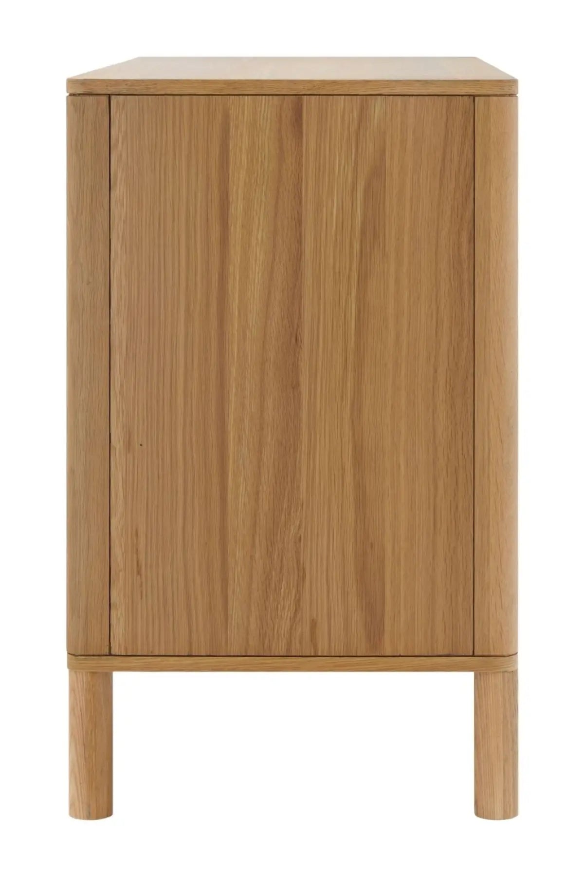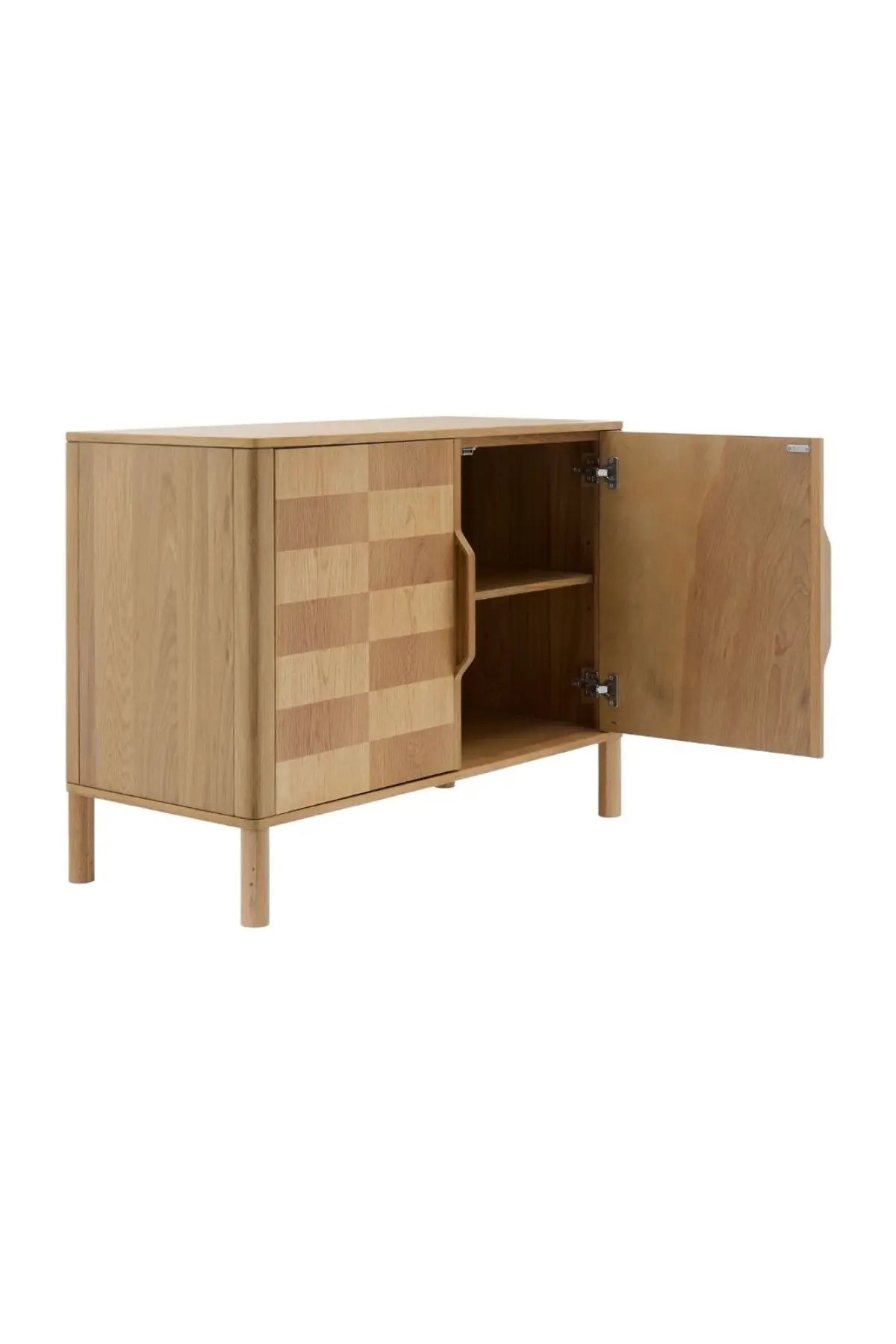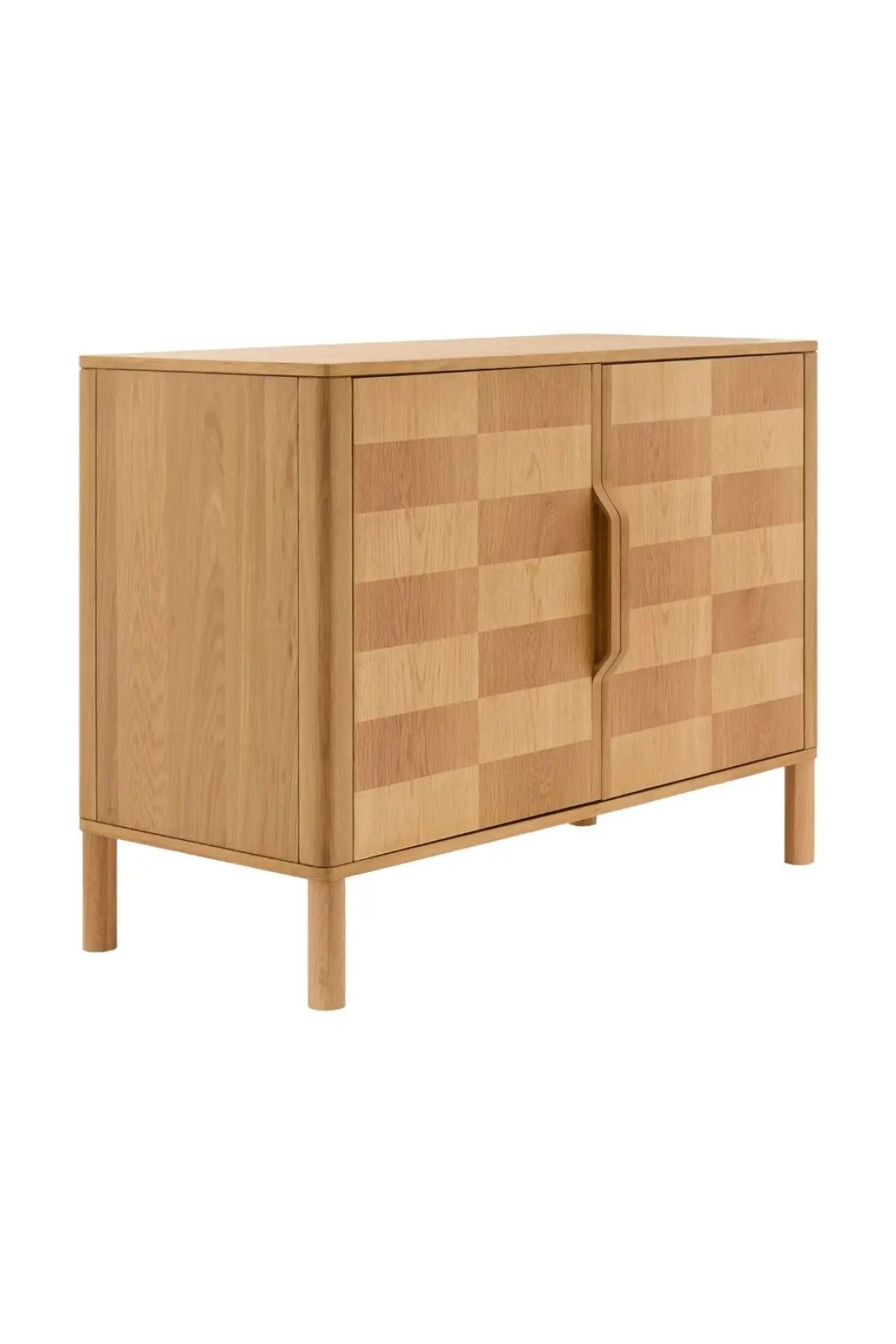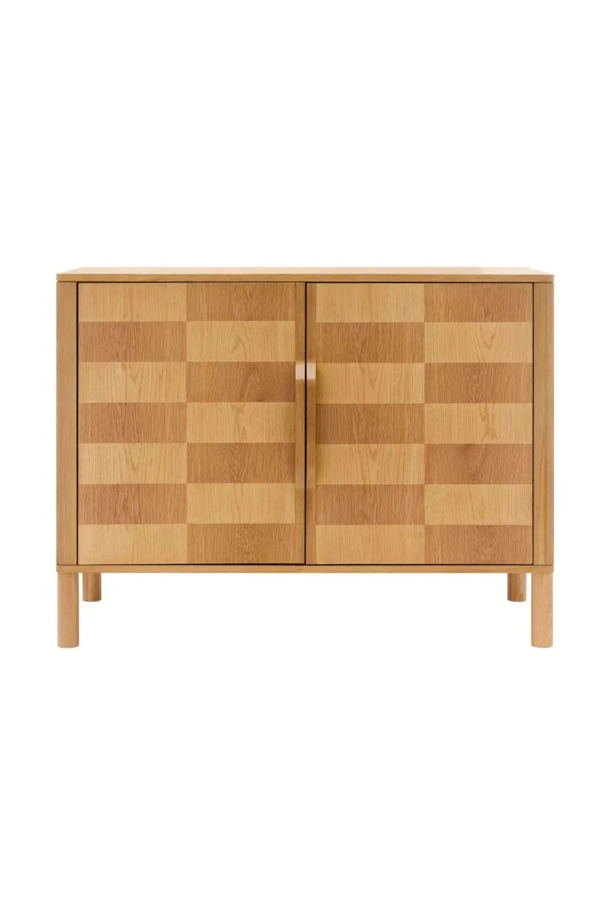 Meet the Tessell Cabinet. This piece showcases the rich beauty of stained, two-toned white oak veneer paired with dark brown natural wood, creating a striking contrast. Its earthy brown tones bring warmth and sophistication, perfect for adding character to any room. A seamless blend of natural materials and contemporary design, it enhances any space with timeless elegance.