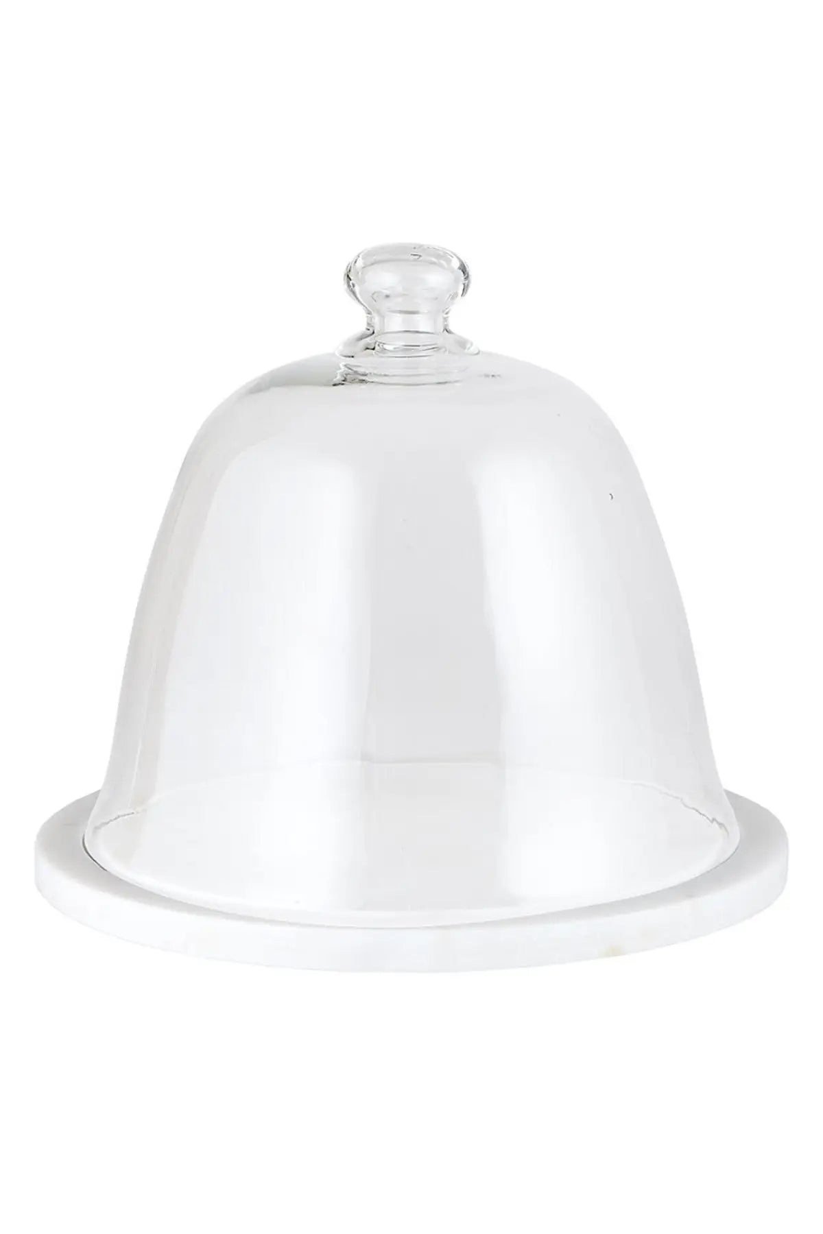 Store any baked goods in this stylish Thelma Marble and Glass Dome Cake Plate. This stand is perfect to display fresh cookies or your favorite charcuterie. Style it alone or paired next to your favorite vessel. This marble one-of-a-kind piece is sure to stand out!
