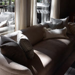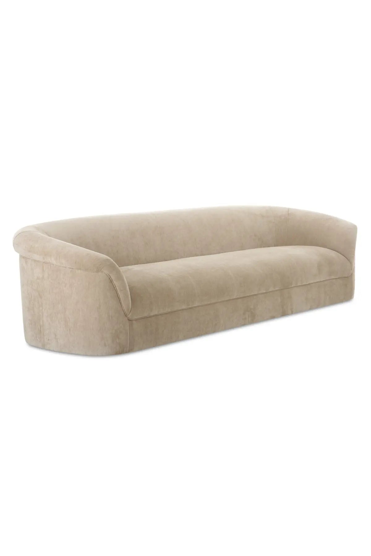 The perfect blend of vintage and contemporary. The Thora Sofa features a soft rolled arm silhouette, its timeless charm elevated by soft, textured velvet fabric upholstery. This piece is an appealing fusion of old-world charm and modern sophistication.