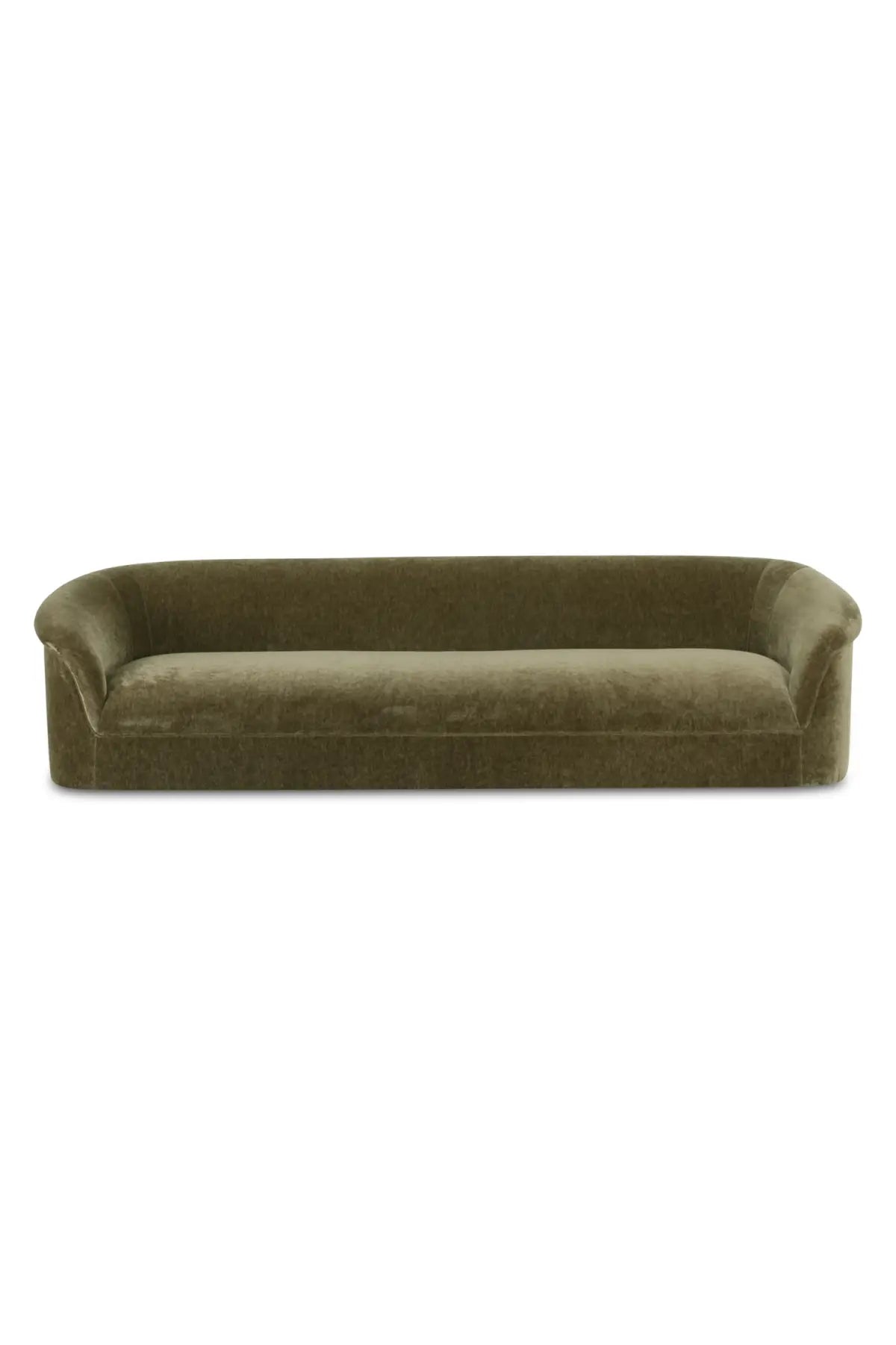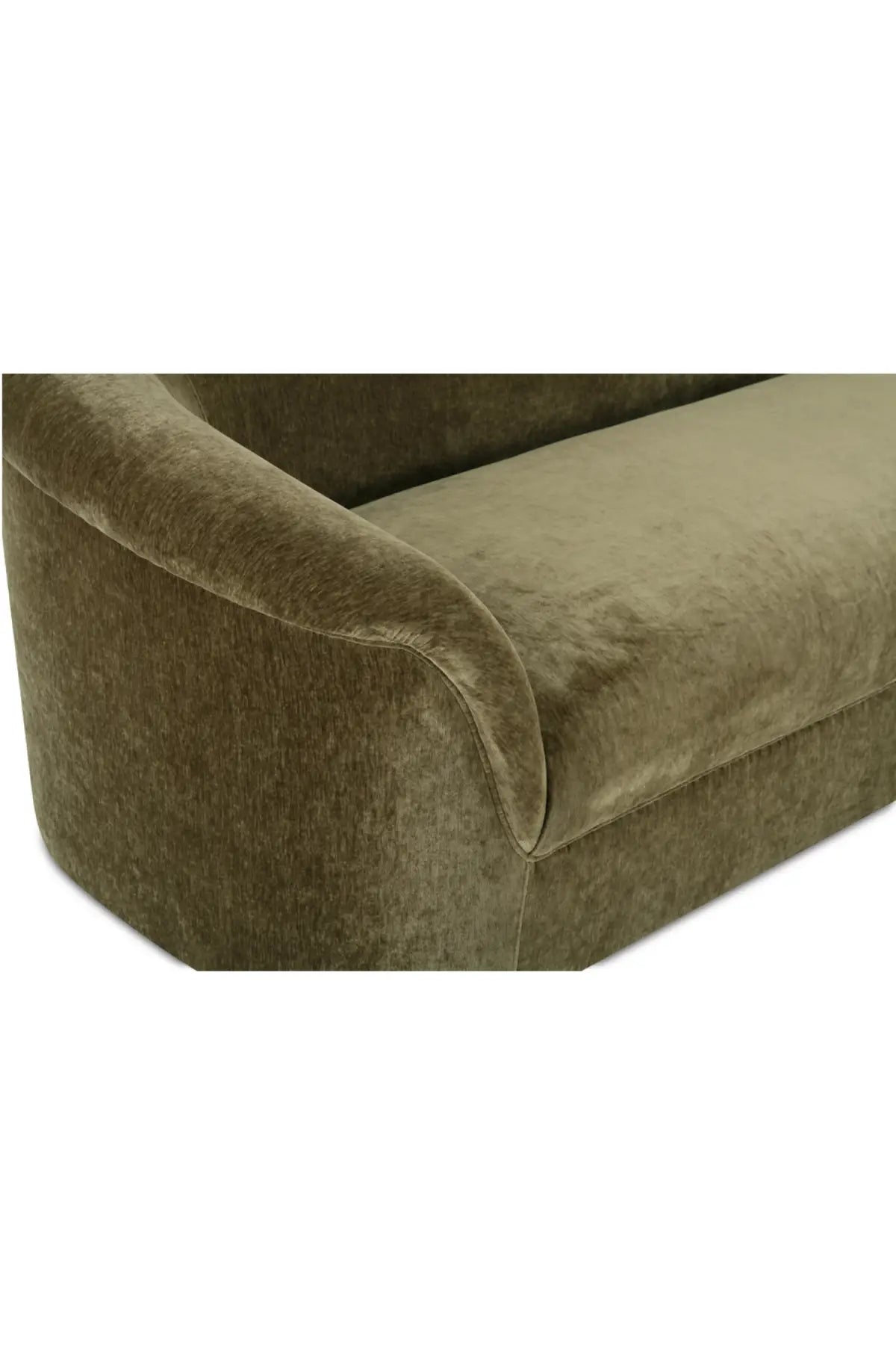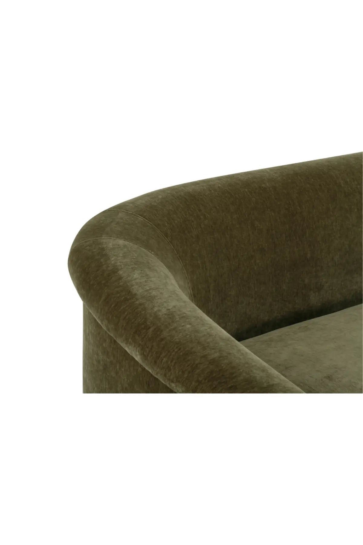 The perfect blend of vintage and contemporary, the Thora Sofa features a soft rolled arm silhouette, its timeless charm elevated by soft, textured velvet fabric upholstery. This piece is an appealing fusion of old-world charm and modern sophistication.