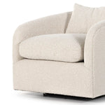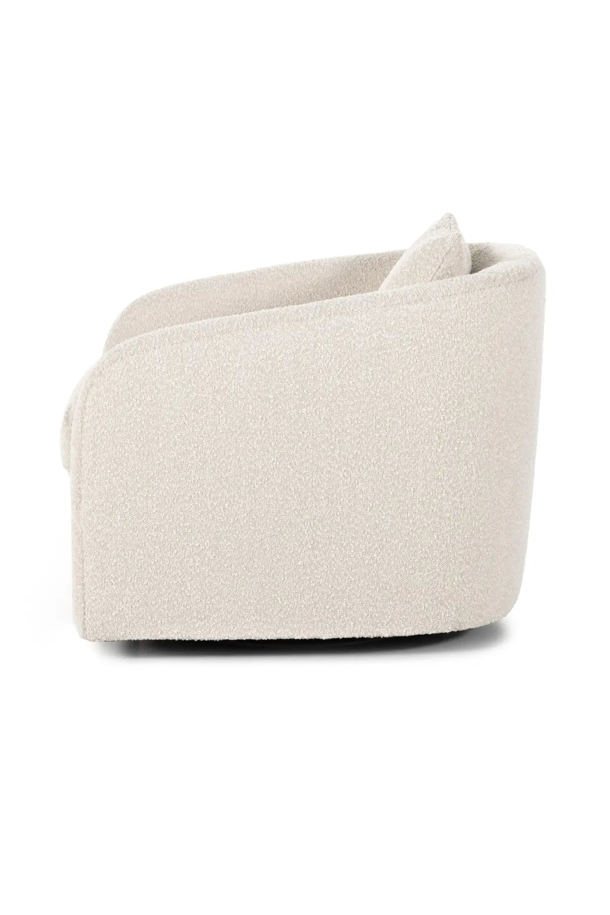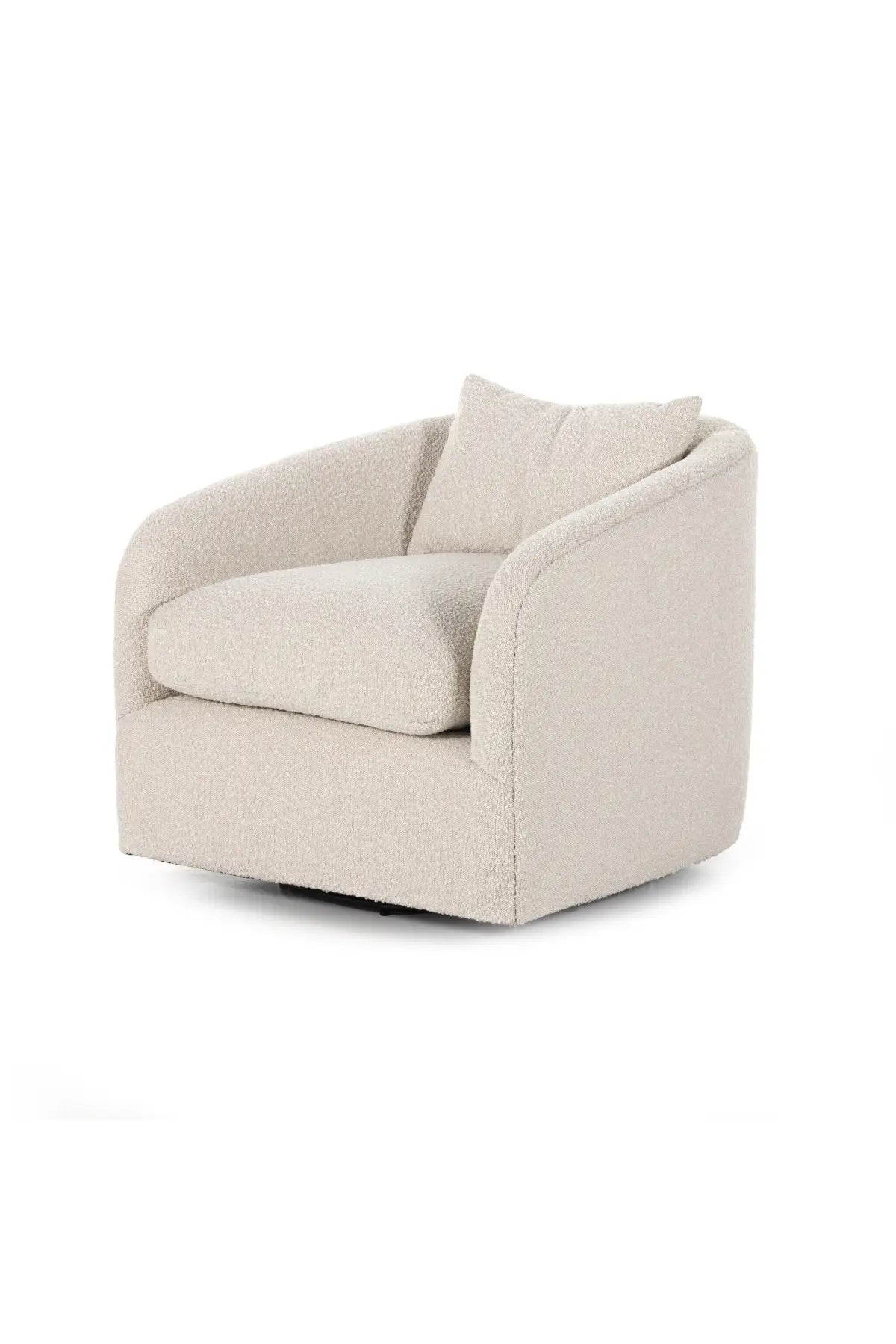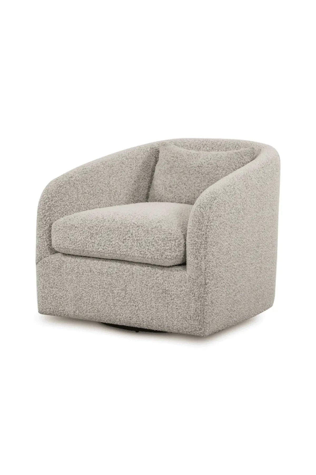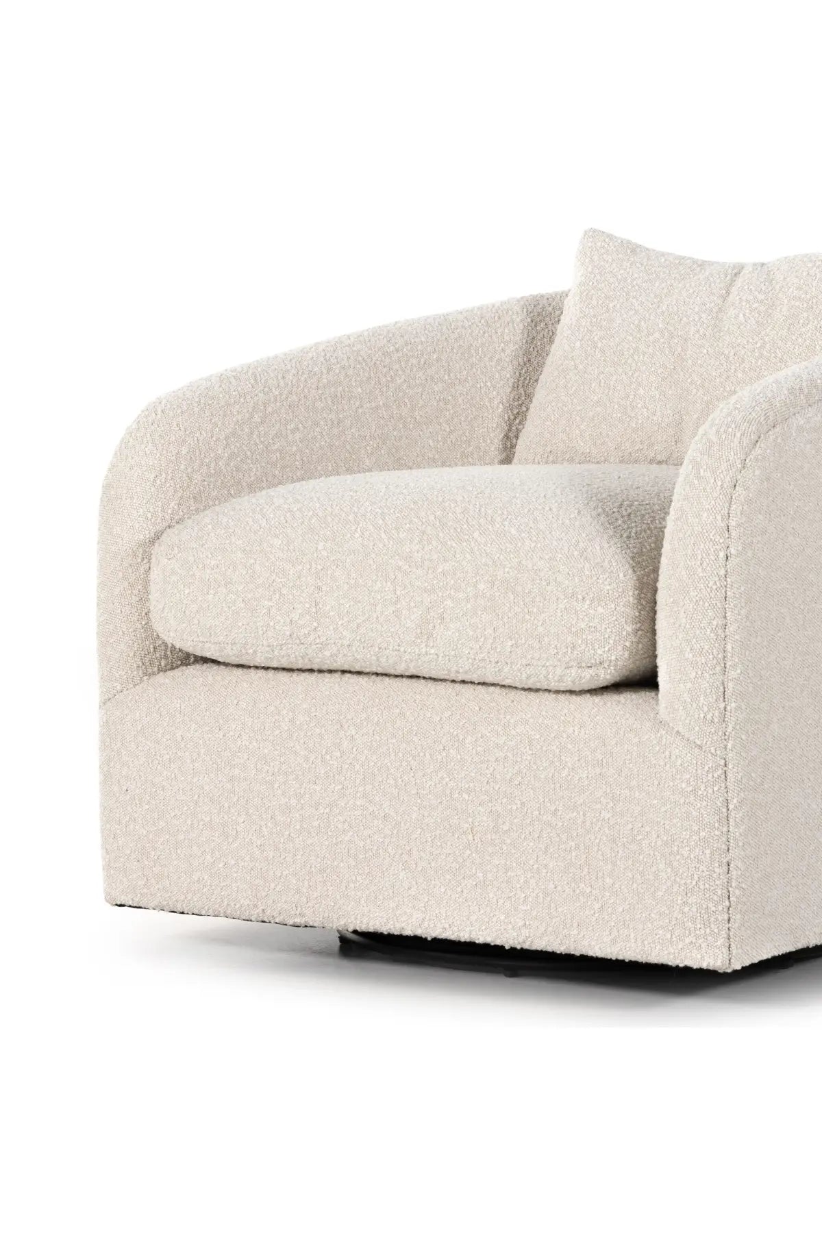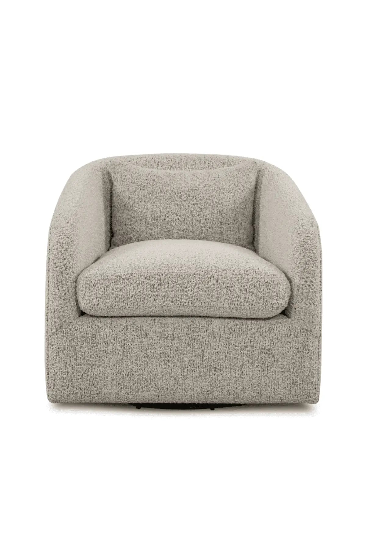 Meet the Topanga Swivel Chair. This swivel chair is understated luxury, soft to the touch. Performance Boucle, curved arms, plush seating and single pillow create a laid-back look, while a hidden swivel turns a traditional form into something novel.