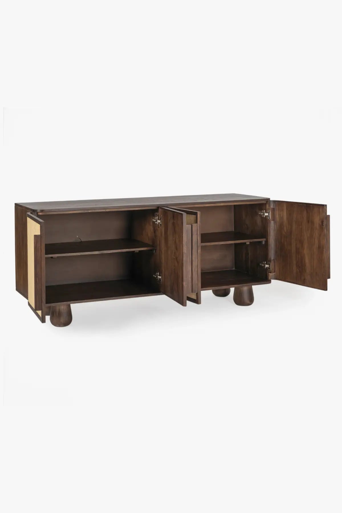 The Torben Buffet is an epitome of organic elegance. This buffet features a meticulously crafted cabinet with a rich grass cloth finish, complemented by solid acacia wood. The unique combination of textures and materials creates a stunning visual contrast, making the Torben Buffet a statement piece for your dining area.
