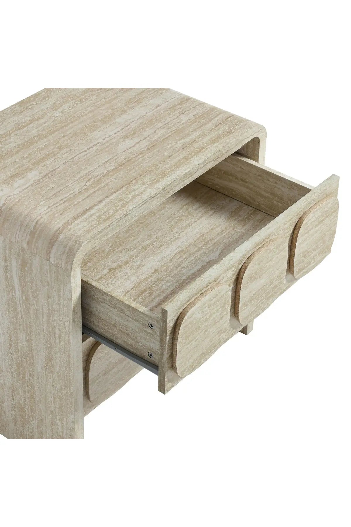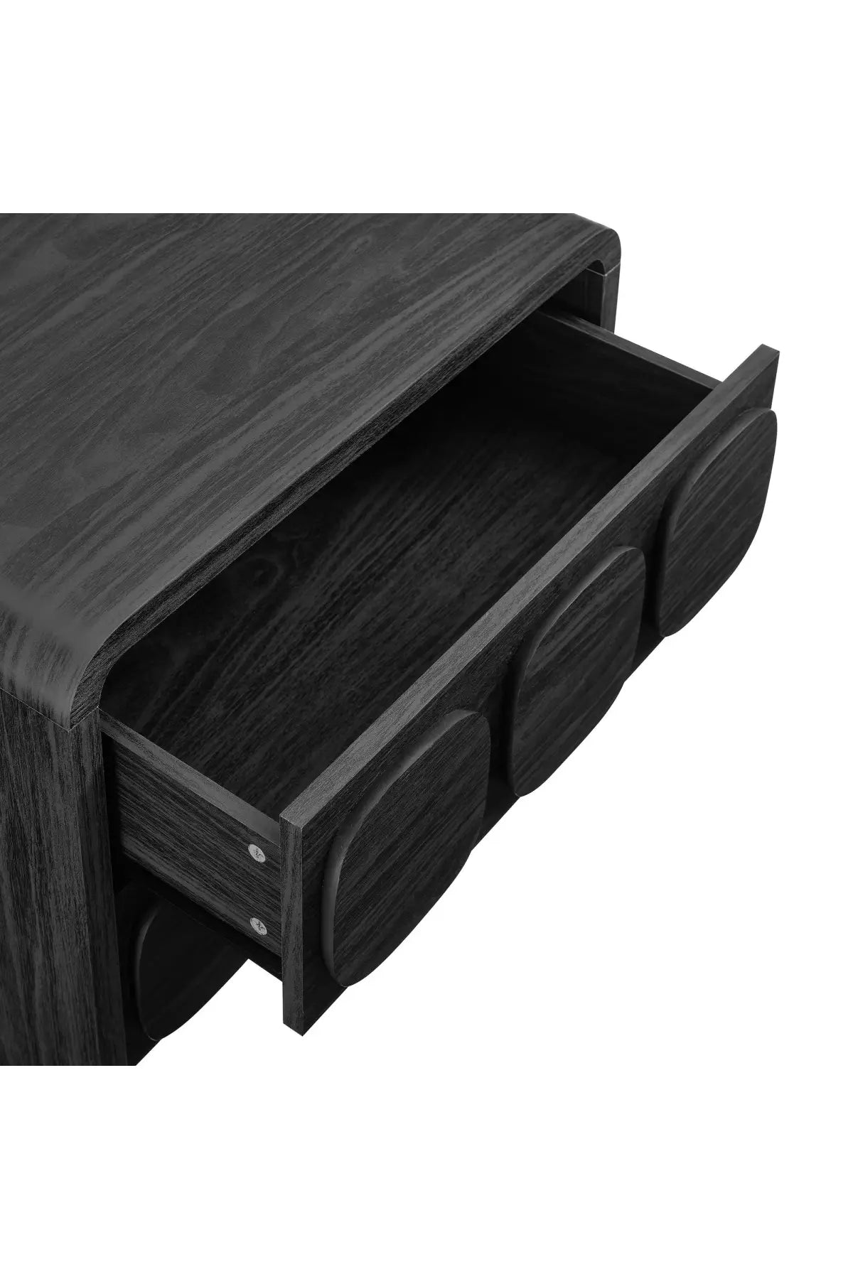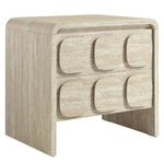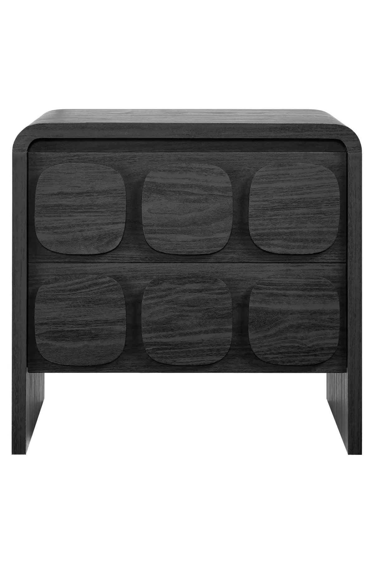 Meet the Toscana 2-Drawer Nightstand. Elevate your space with this elegant nightstand, featuring rounded corners and a circular pattern motif across the drawer fronts. Crafted with durable paper laminate, it offers a sleek, contemporary look. Ideal for the bedroom, living room, or office, this modern nightstand seamlessly blends style and functionality. Assembly required.