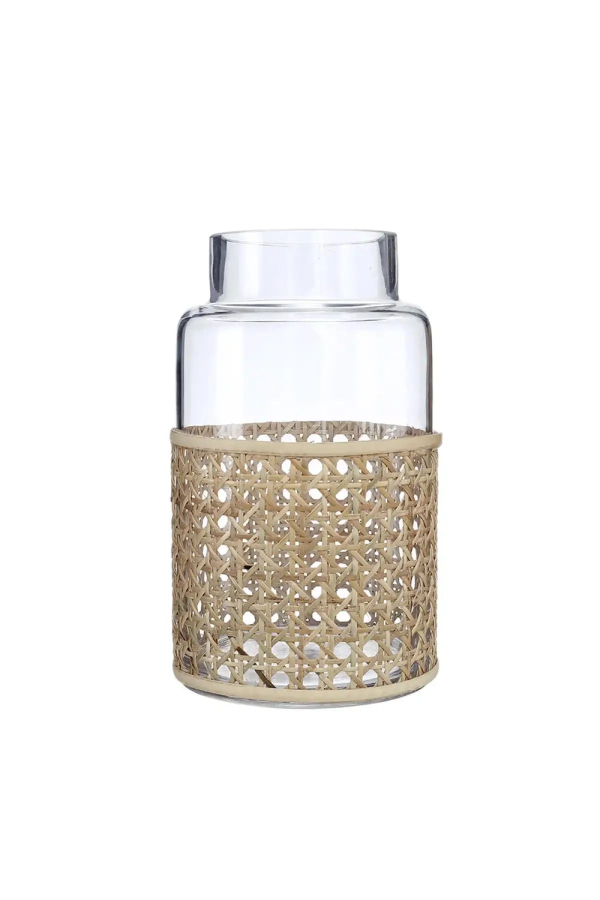 The Travis Tall Vase features an apothecary-inspired design with a removable rattan band for added versatility. This vase adds a touch of fun to any room with its unique design. Its sleek and slender shape is great for displaying your favorite flowers or an eclectic assortment of items. Take your decor to new heights.