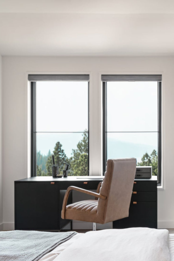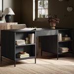 Meet the Trey Executive Desk. Inspired by clean mid-century design, black-washed poplar offers plenty of desk storage by way of spacious drawers including one perfectly sized for file storage of legal and letter sized documents. Metal-secured leather pulls add a textural element of surprise. Cutouts for cord management.