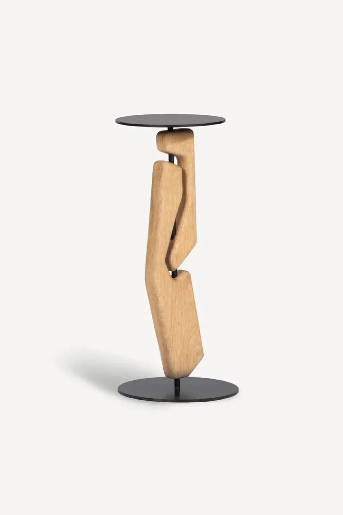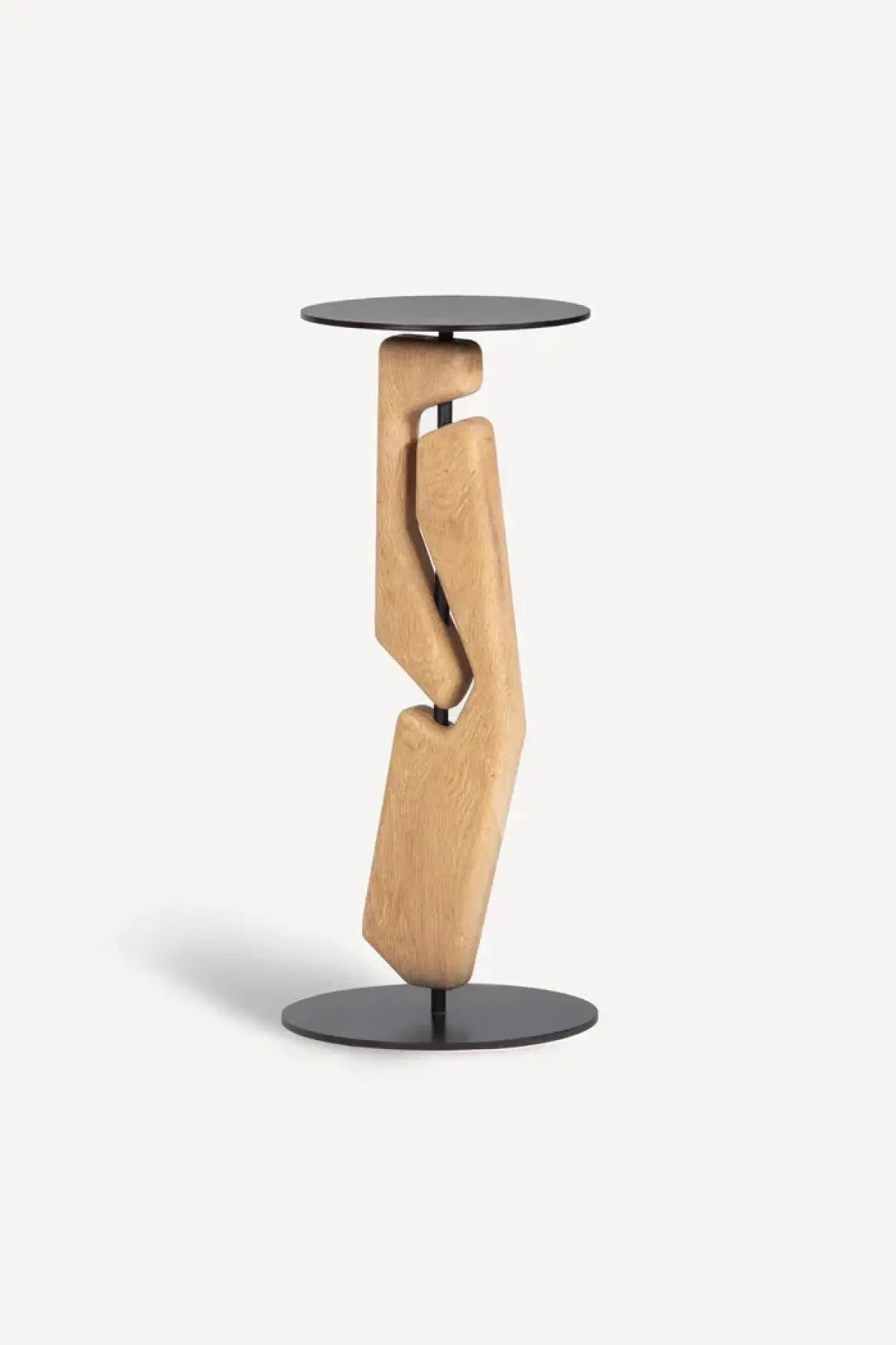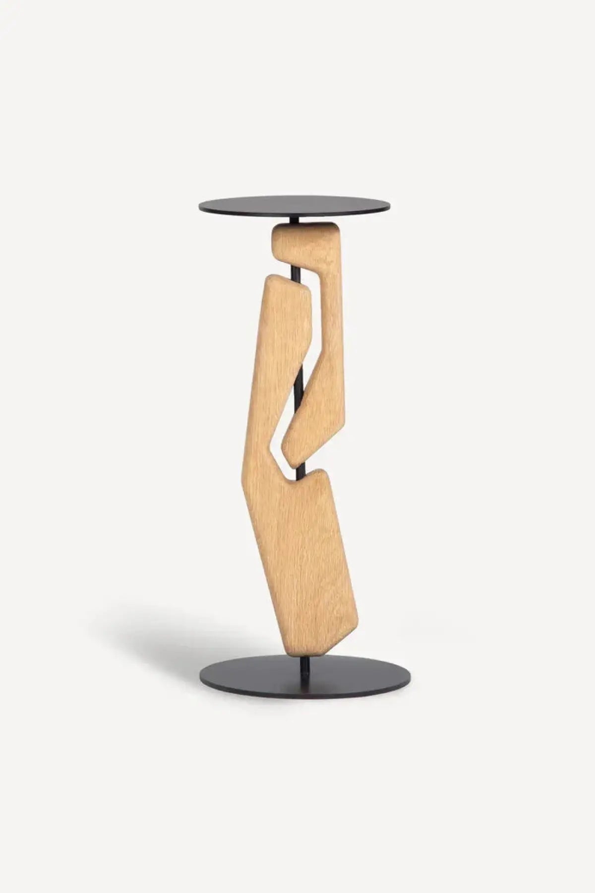 A functional piece of sculpture for your living room. The Tribe Drink Table features 2 solid Oak geometric forms, intersected by a steel upright assembly, finished in a matte black powder coat.