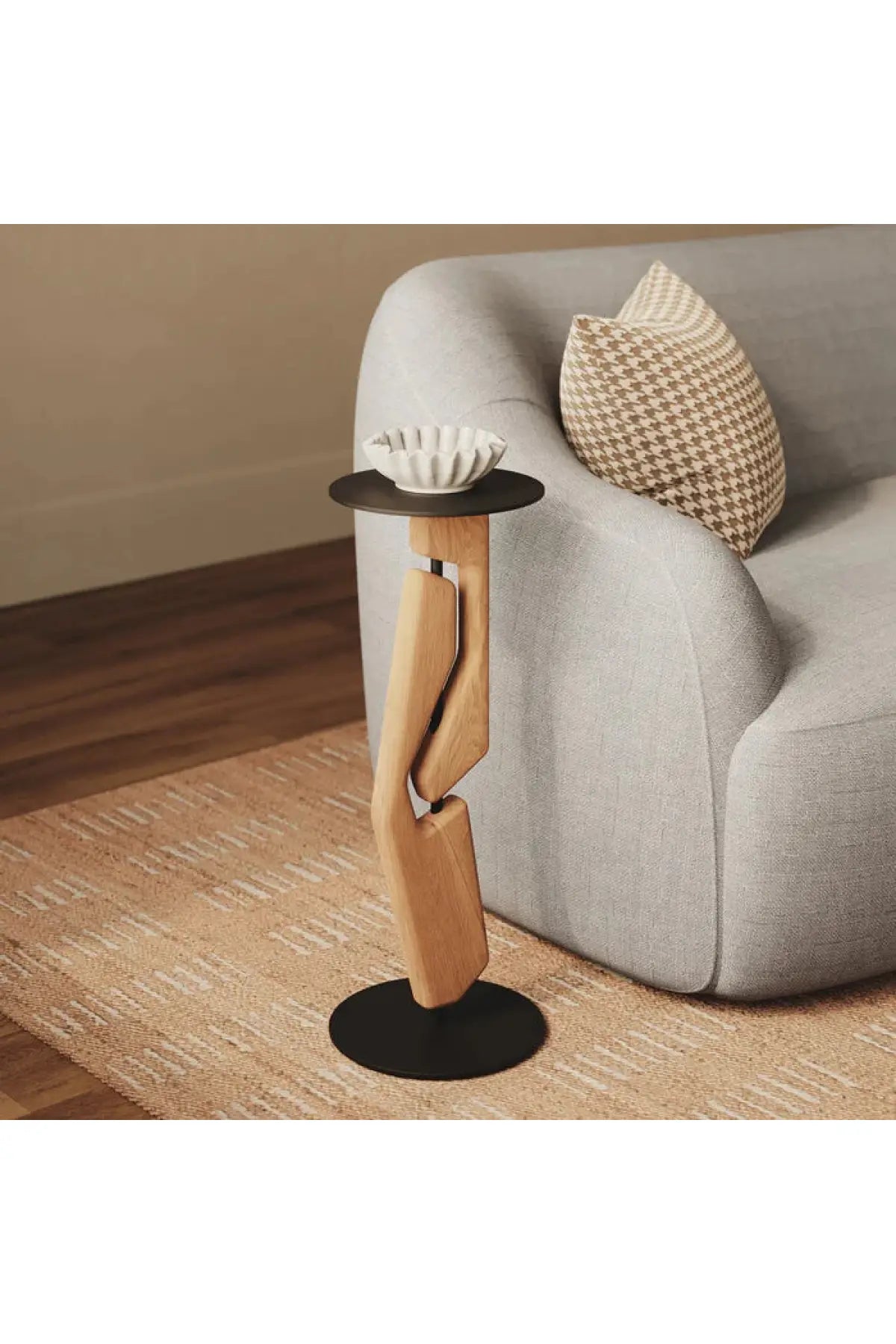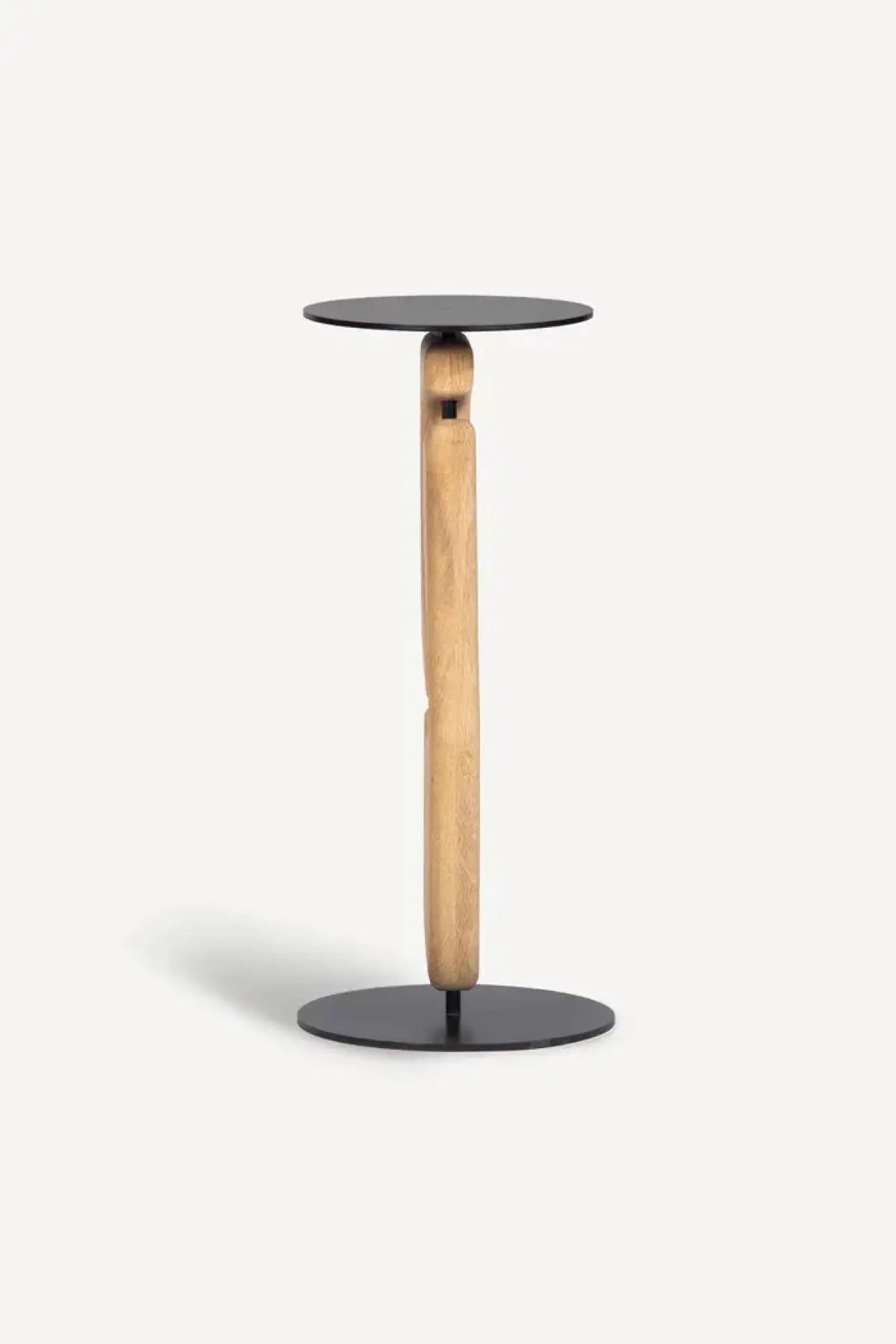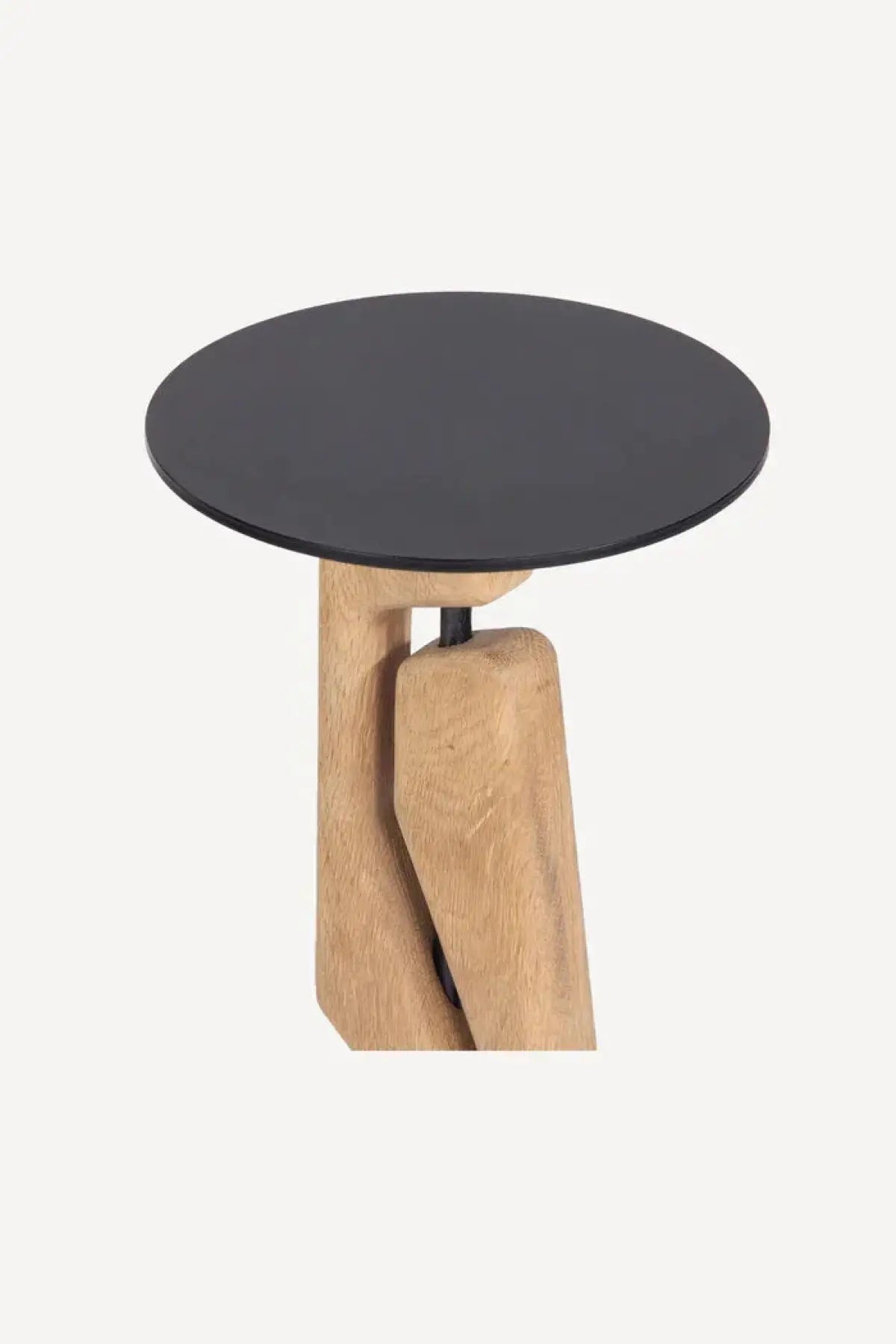 A functional piece of sculpture for your living room. The Tribe Drink Table features 2 solid Oak geometric forms, intersected by a steel upright assembly, finished in a matte black powder coat.