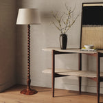 The Twist Floor Lamp is expertly crafted from solid plantation-grown Acacia wood with a striking Porto Dark finish. The lamp’s base is beautifully turned to highlight the natural grain and texture of the wood. Complemented by a shade made from 100% premium linen. Bulb(s) not included.